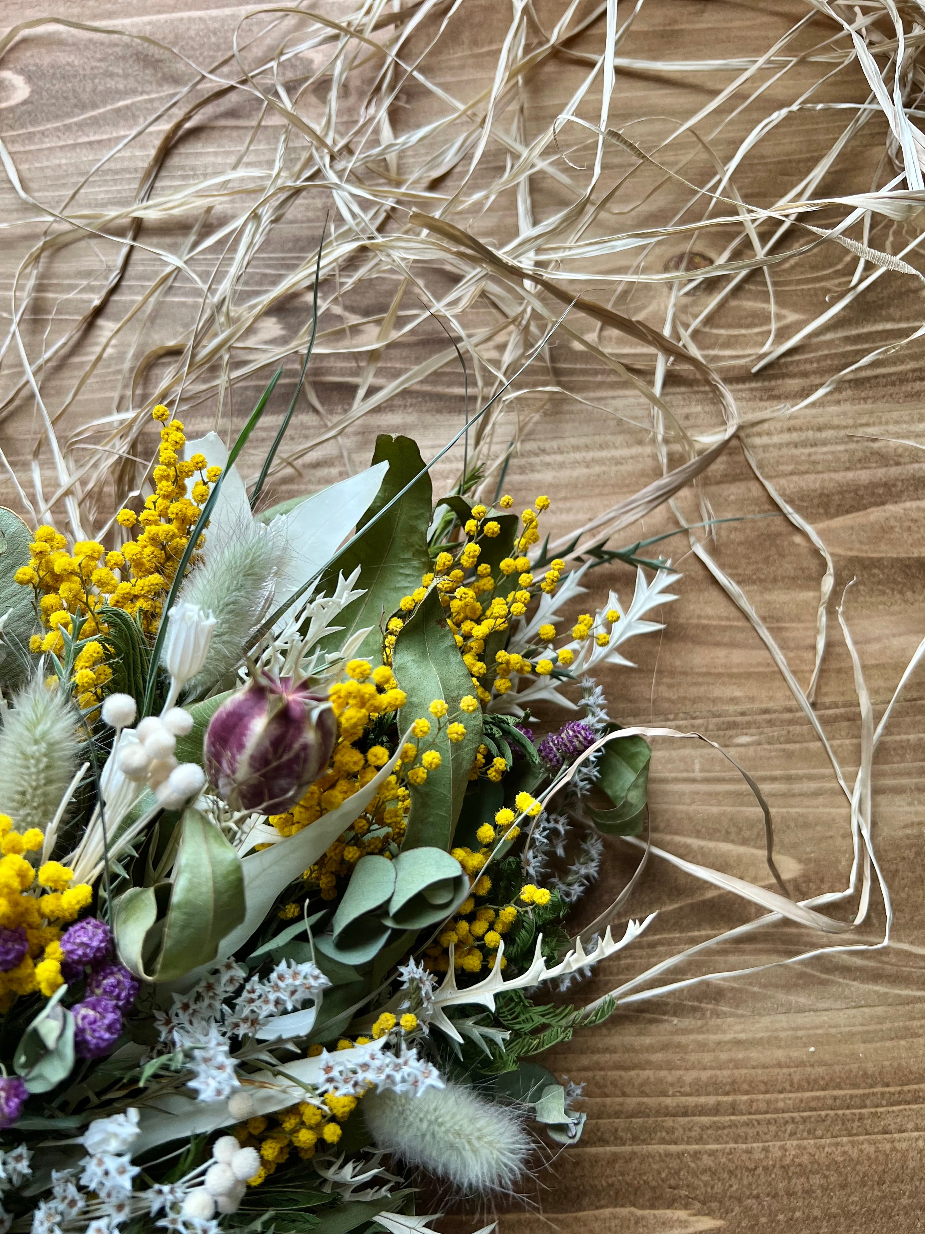 ⚪︎ドライフラワーはとてと繊細な素材のため、梱包、発送の際に花や葉、木の実などの破損、落下などが生じる場合がございます。