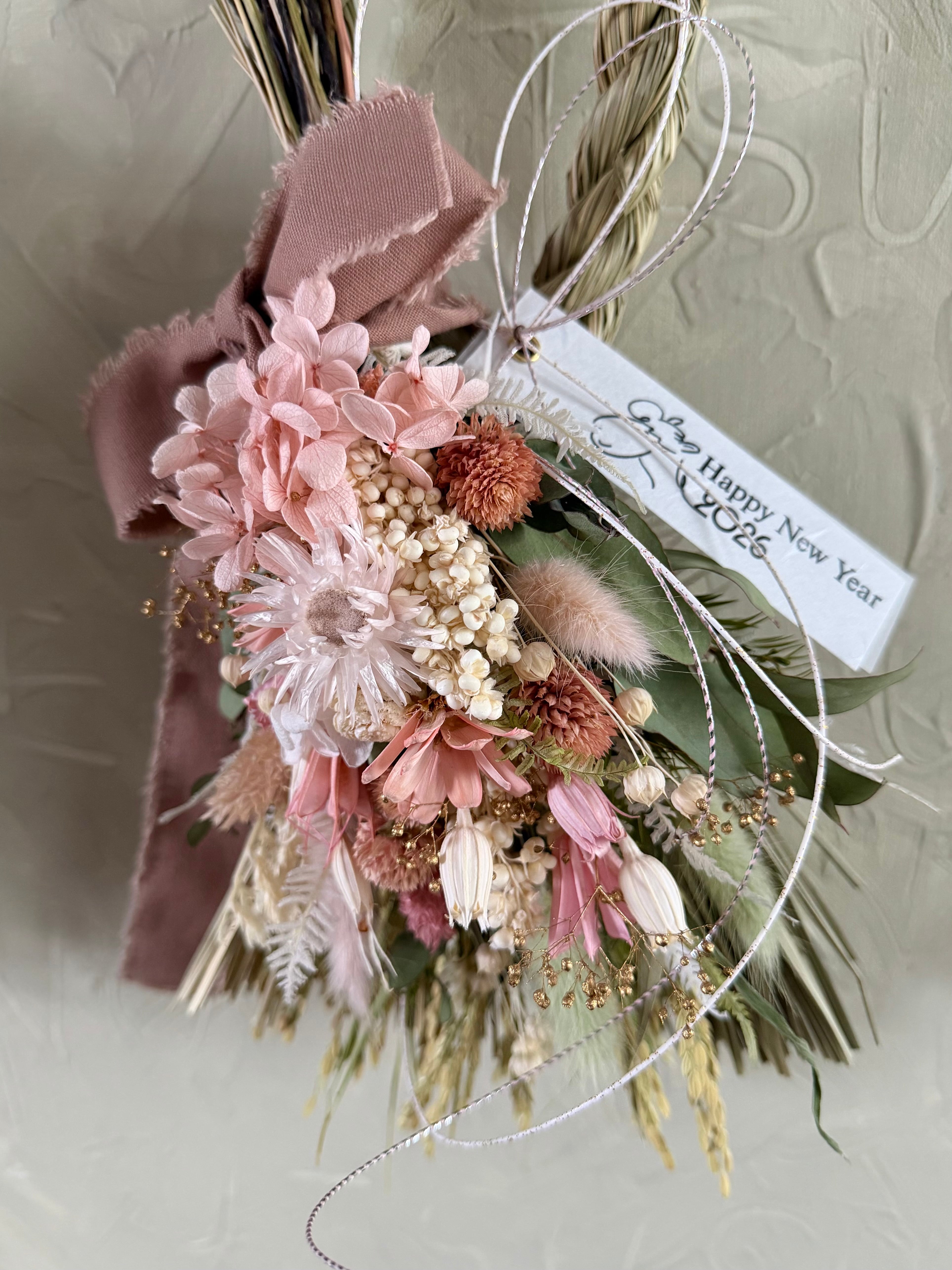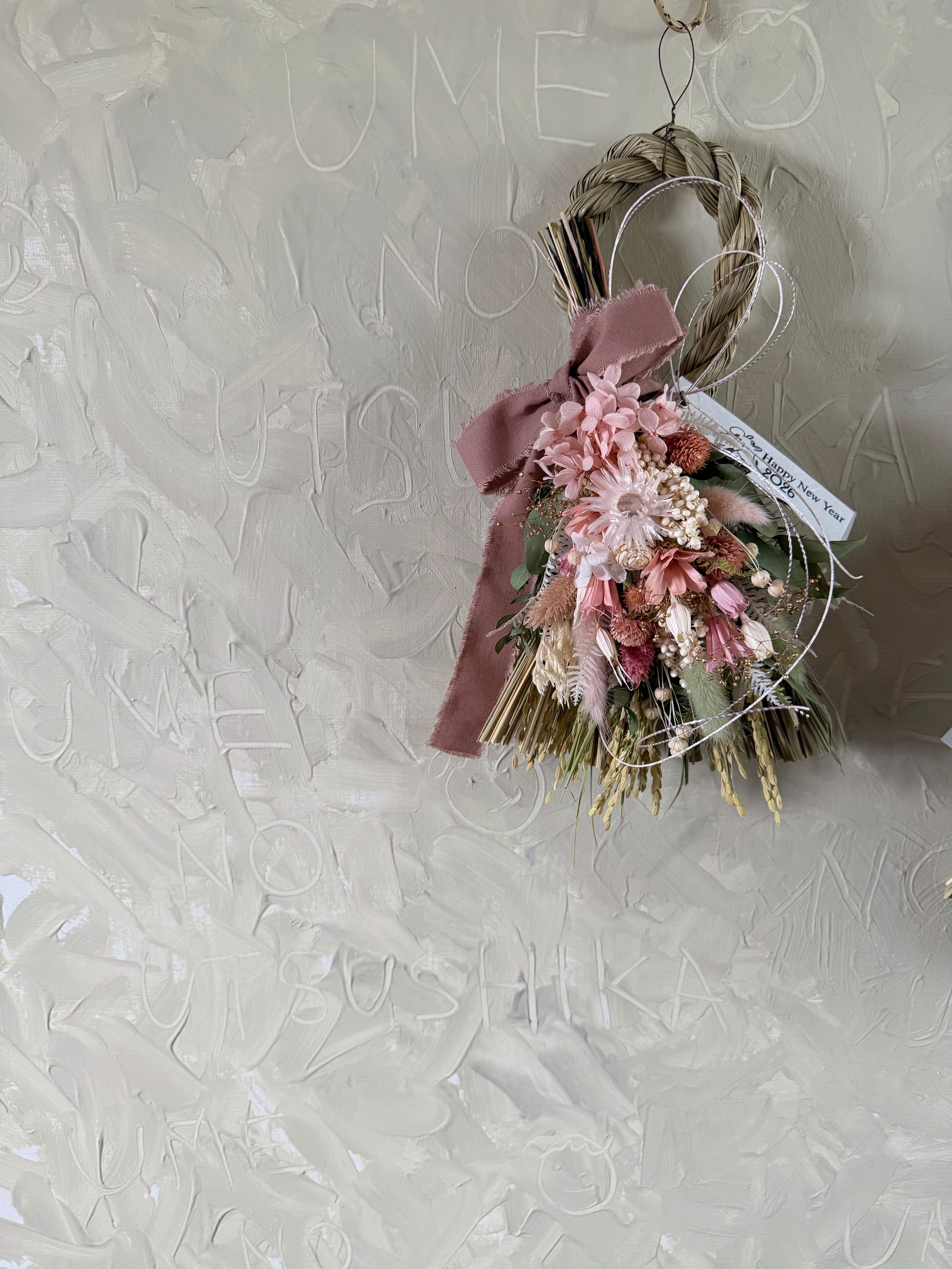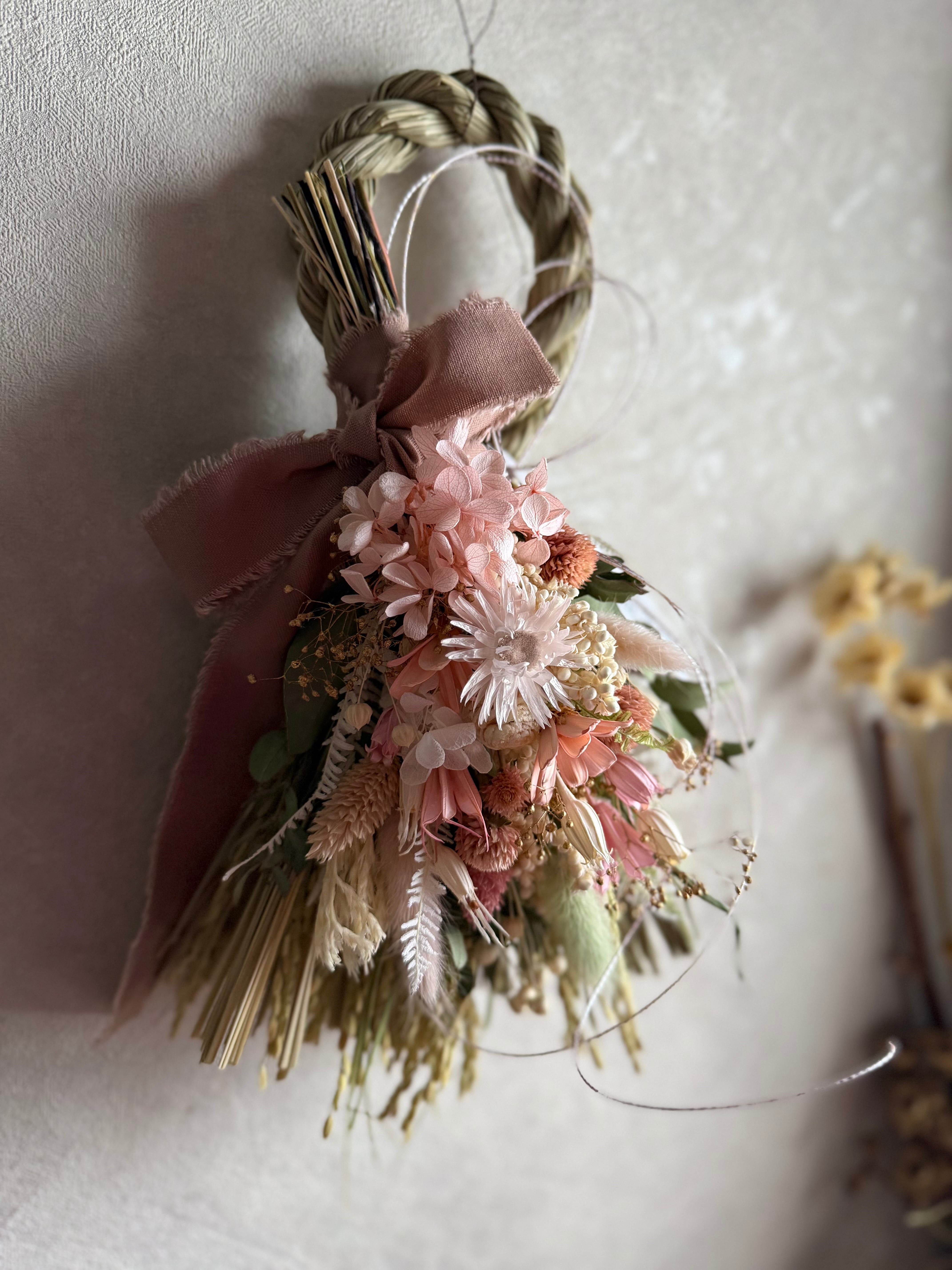 2way華やかピンク紫陽花のしめ縄スワッグ中No.3