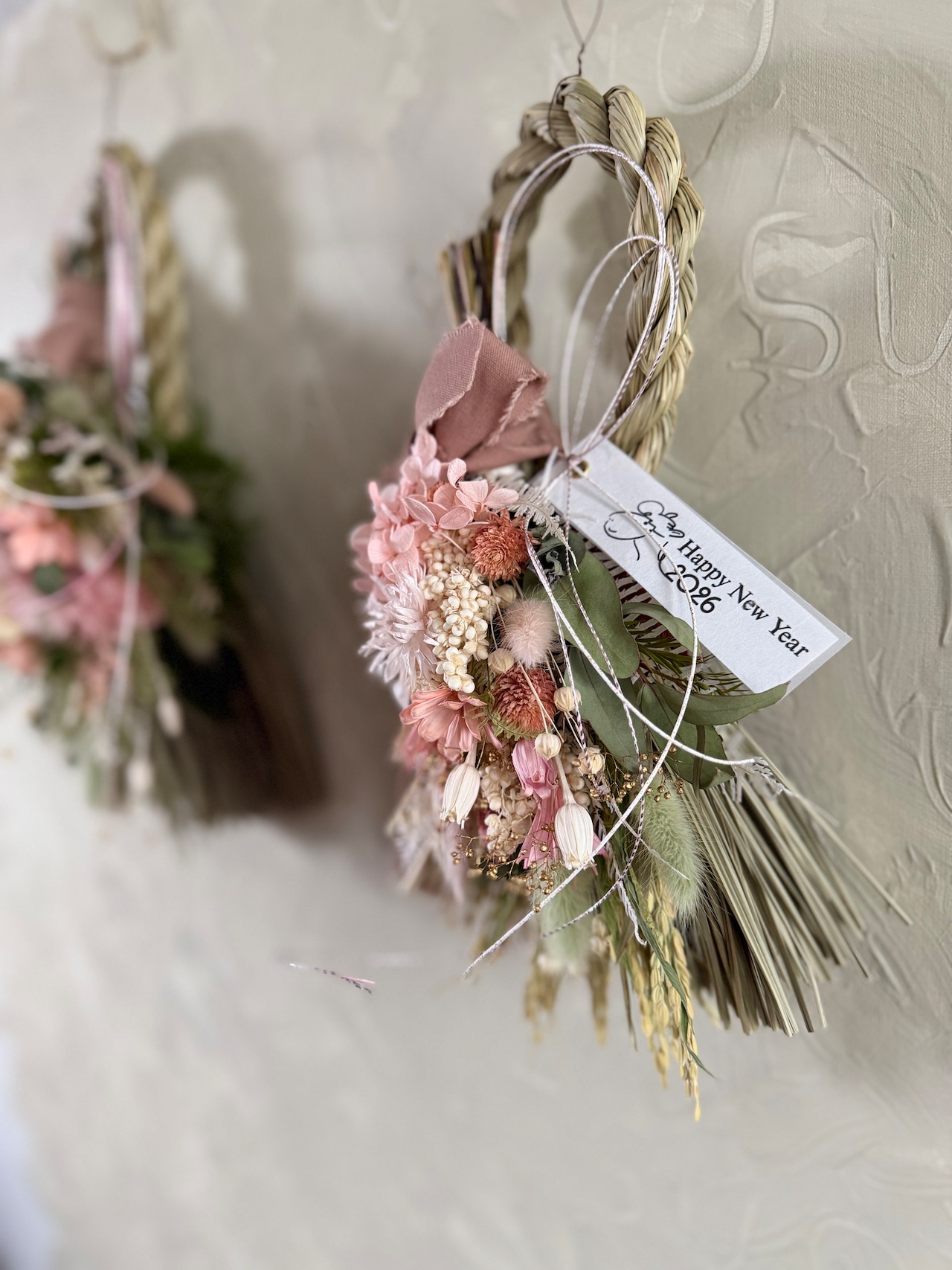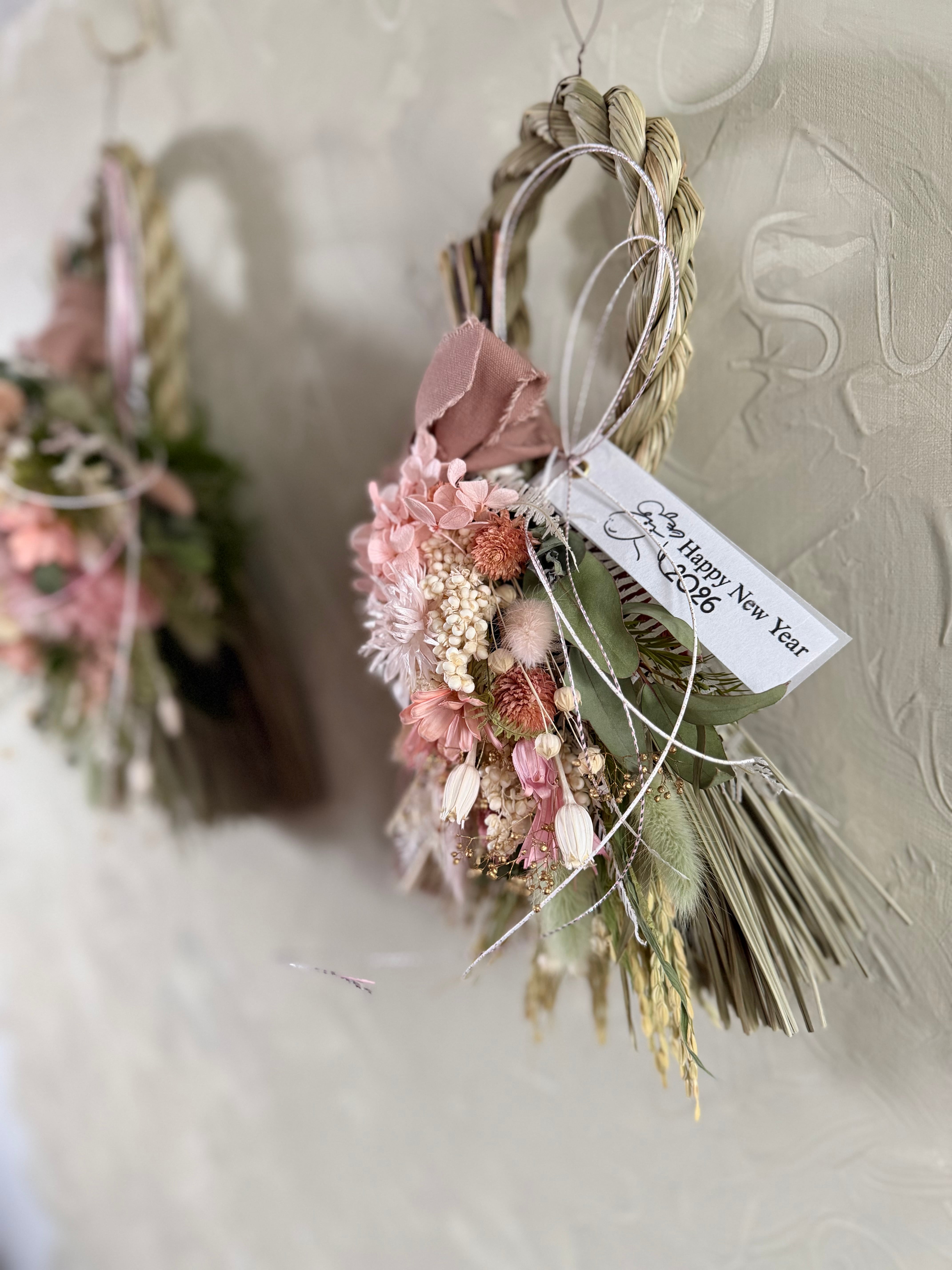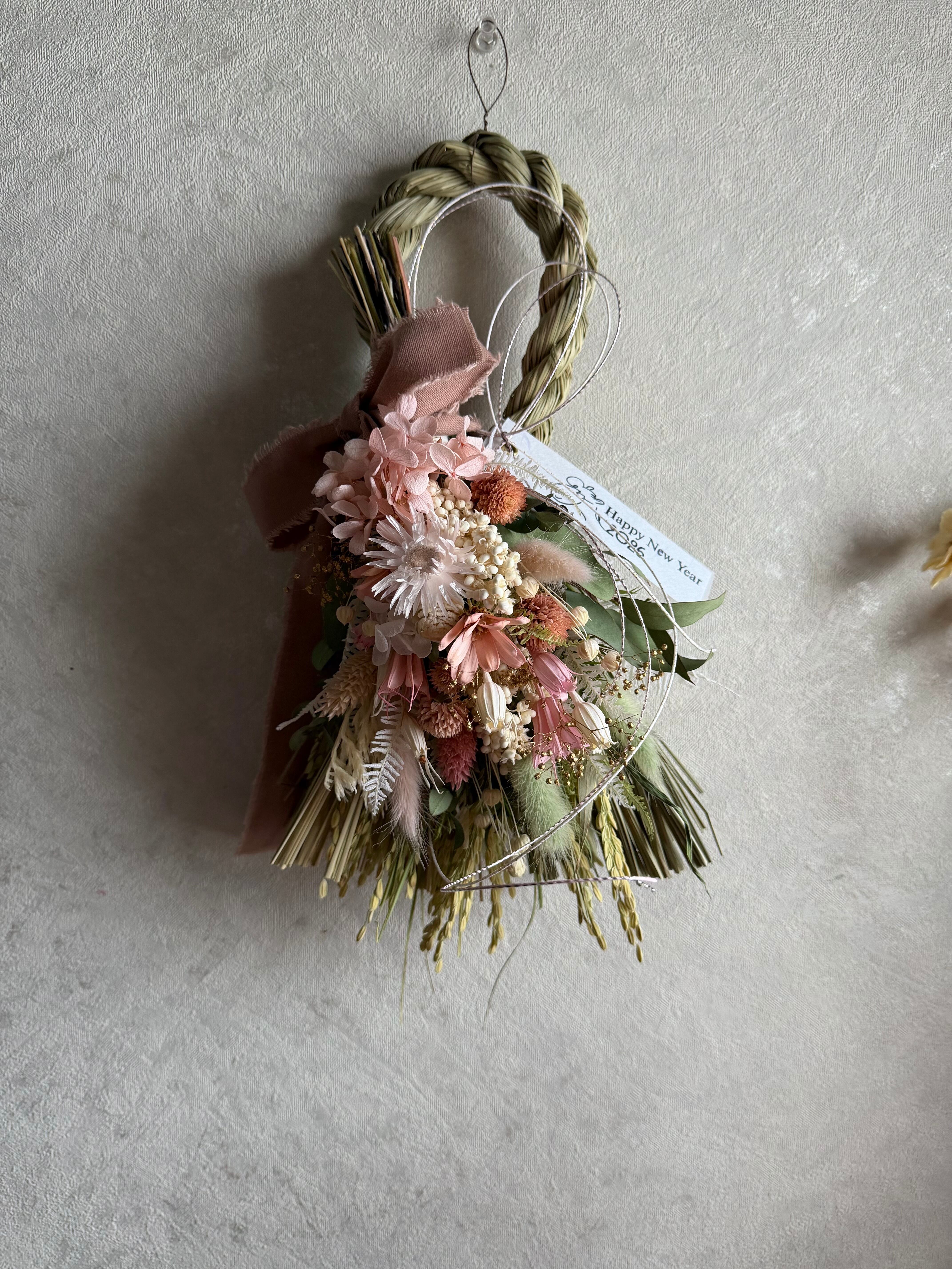 2way華やかピンク紫陽花のしめ縄スワッグ中No.3