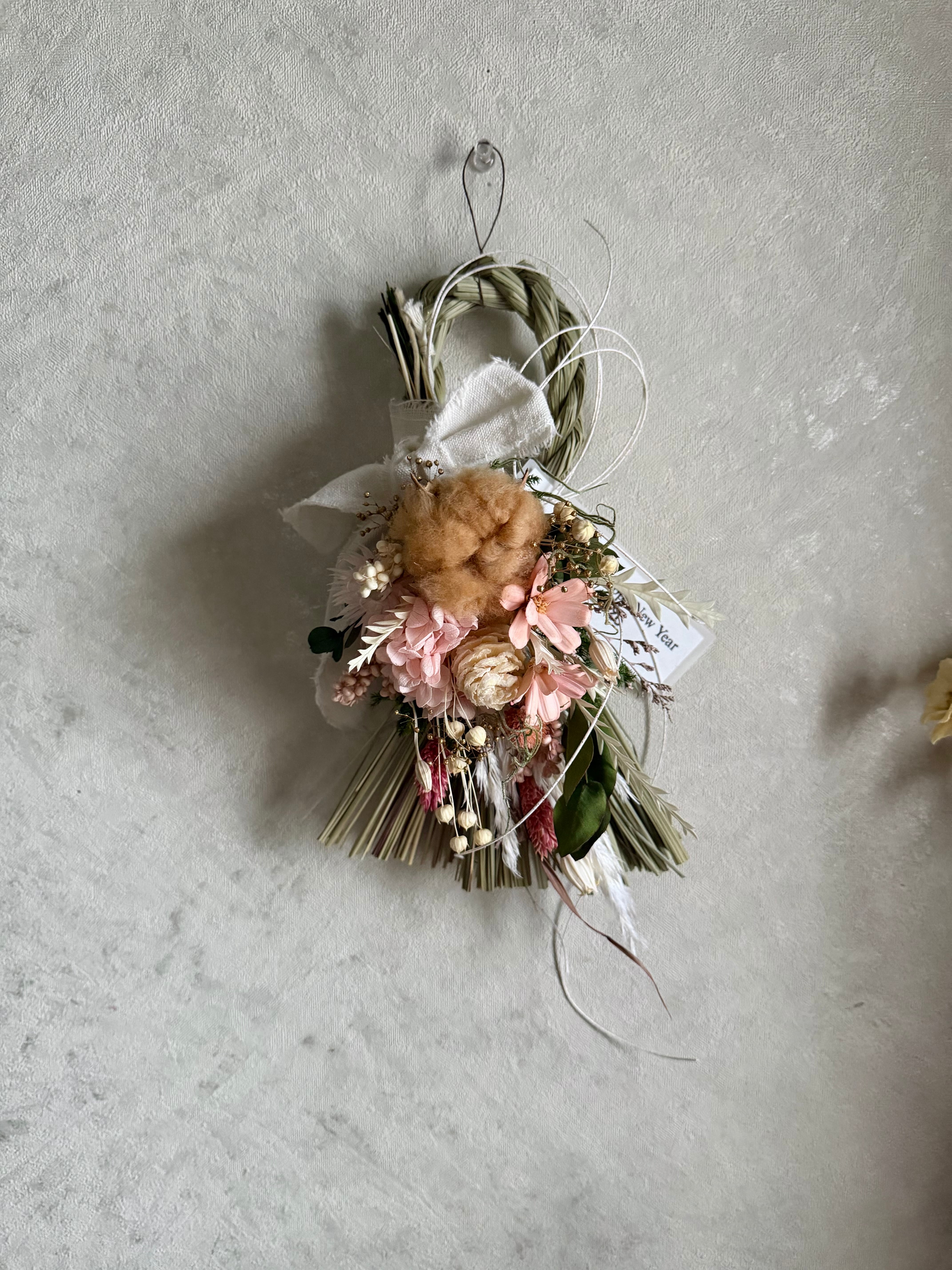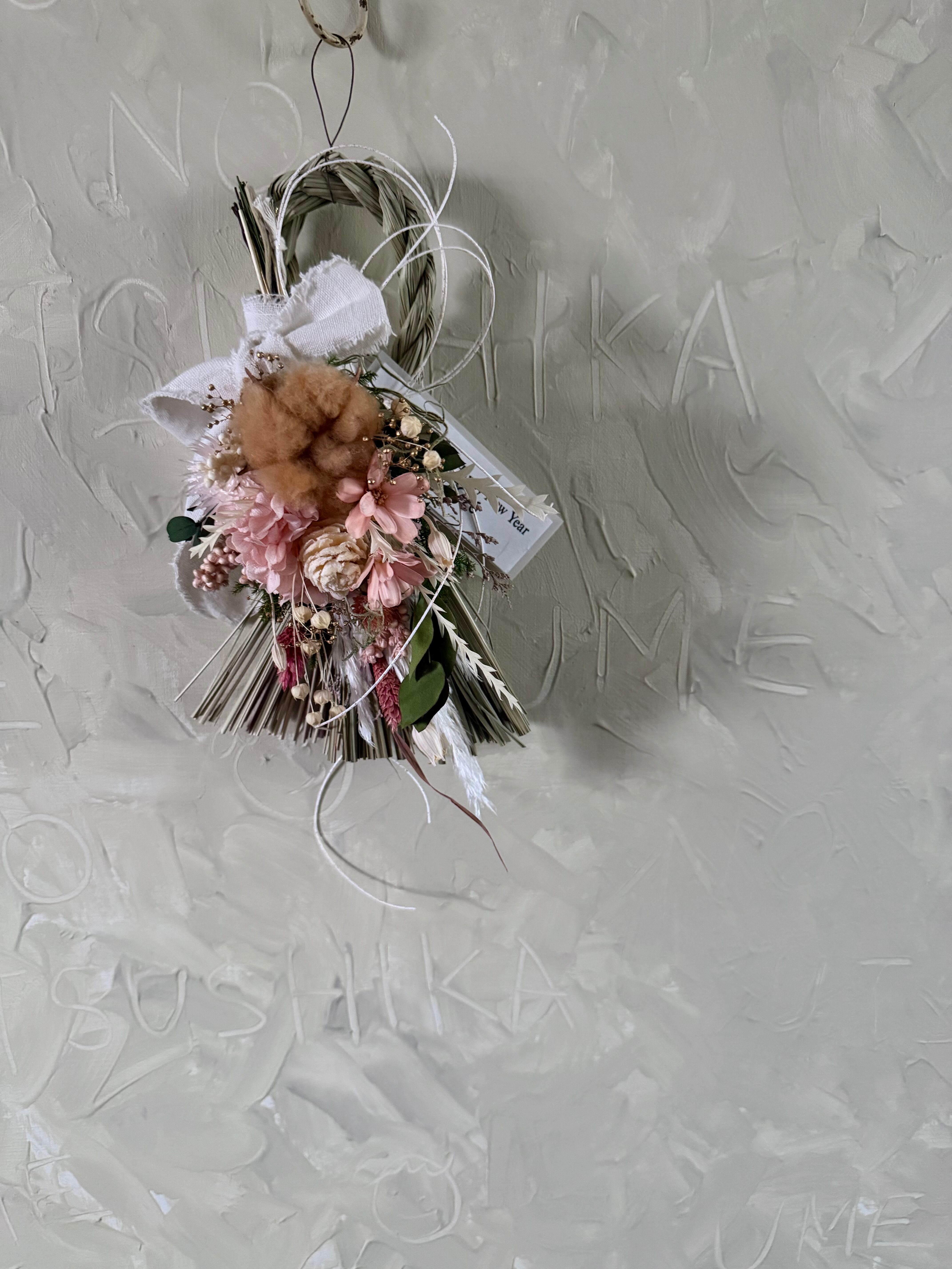 2wayコットンフラワーとピンク紫陽花のしめ縄スワッグ小No.4