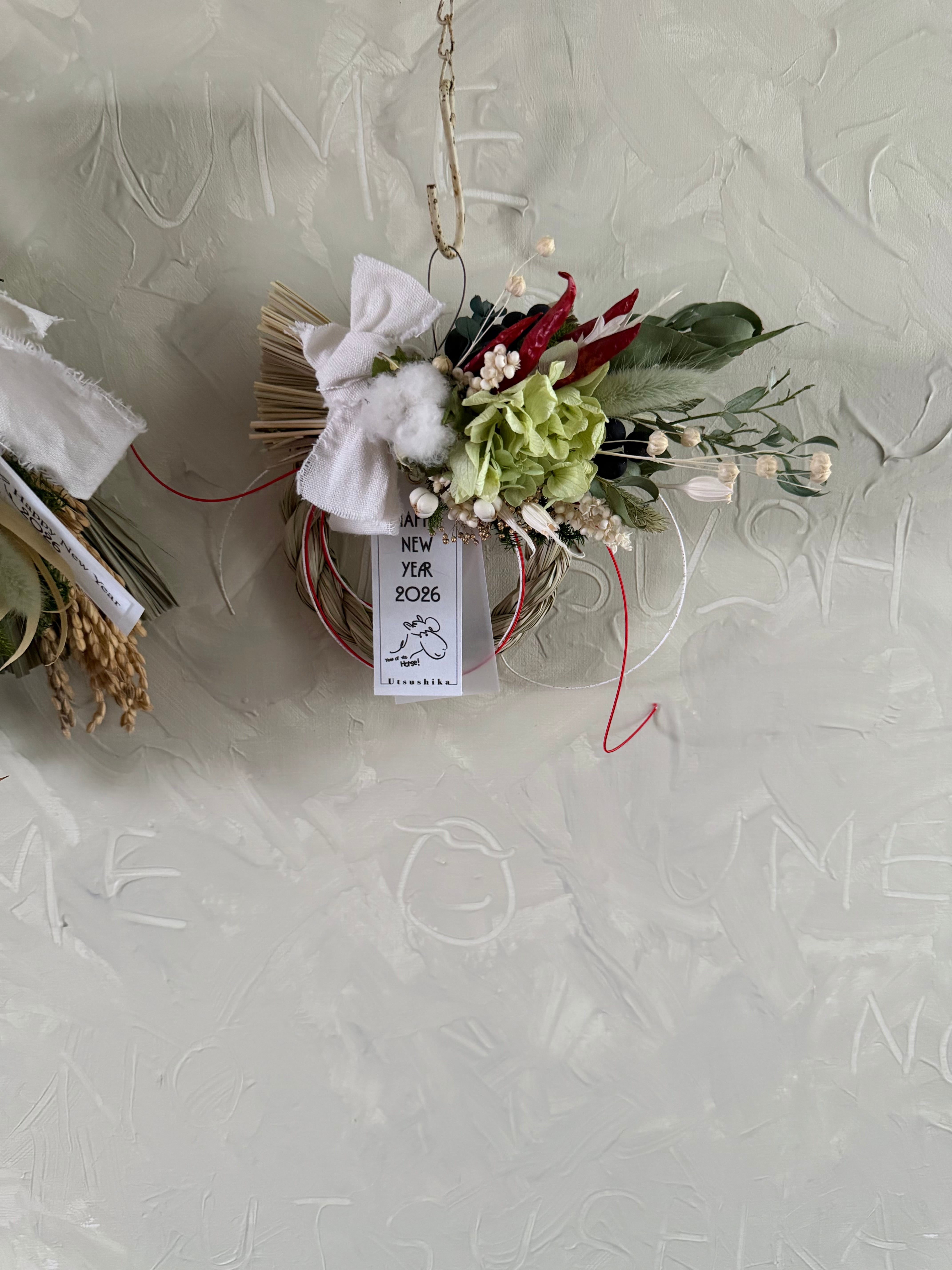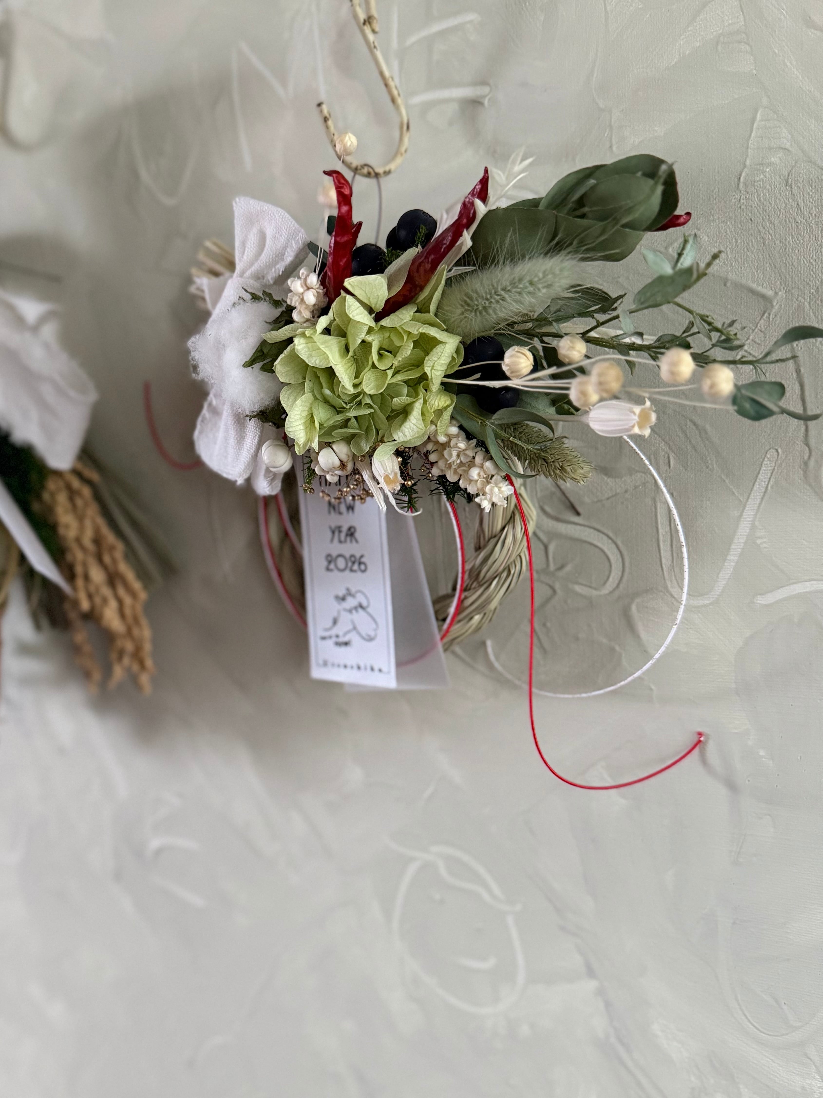 2way鷹の爪とグリーン紫陽花のしめ縄スワッグミニNo.8