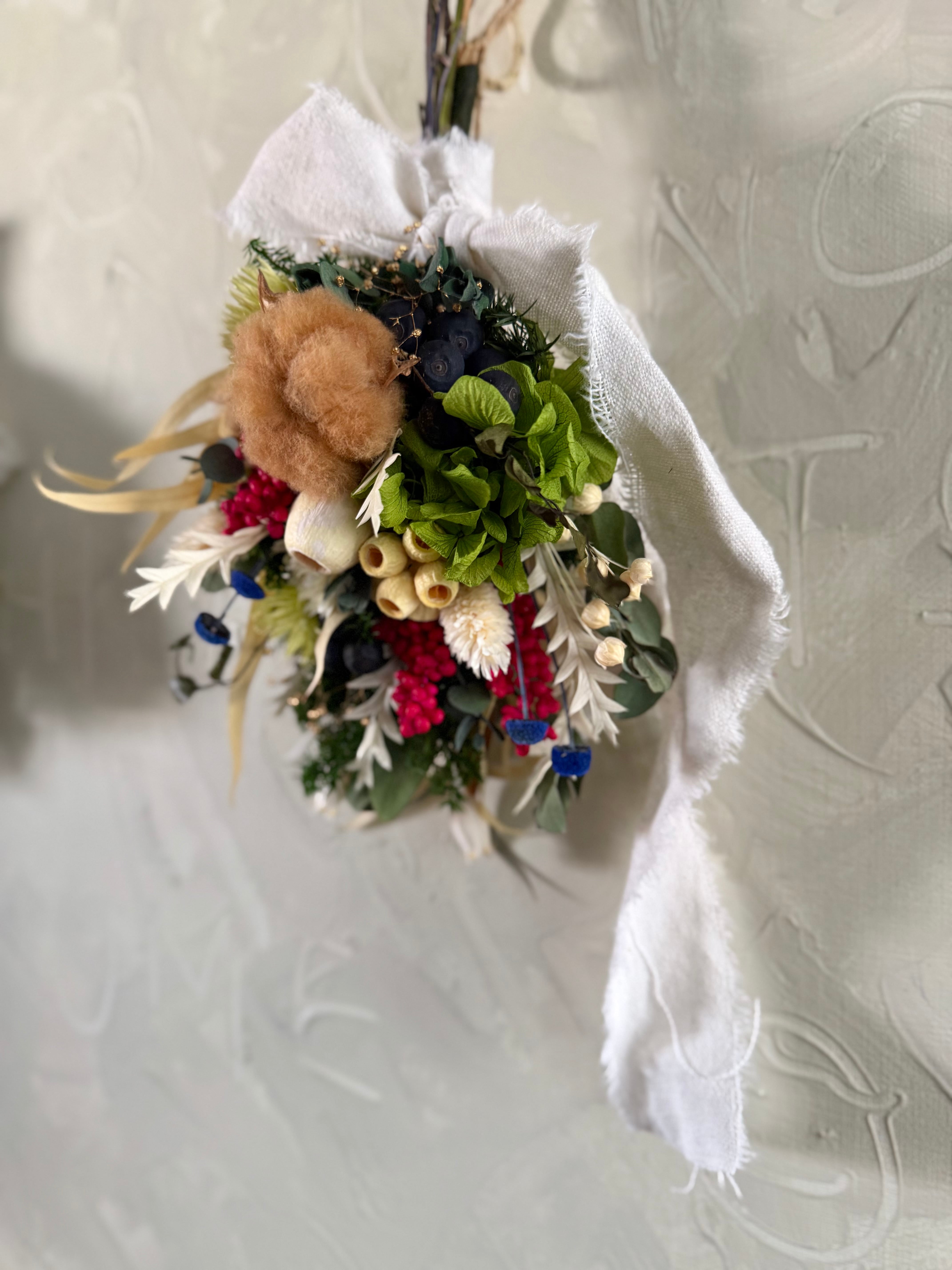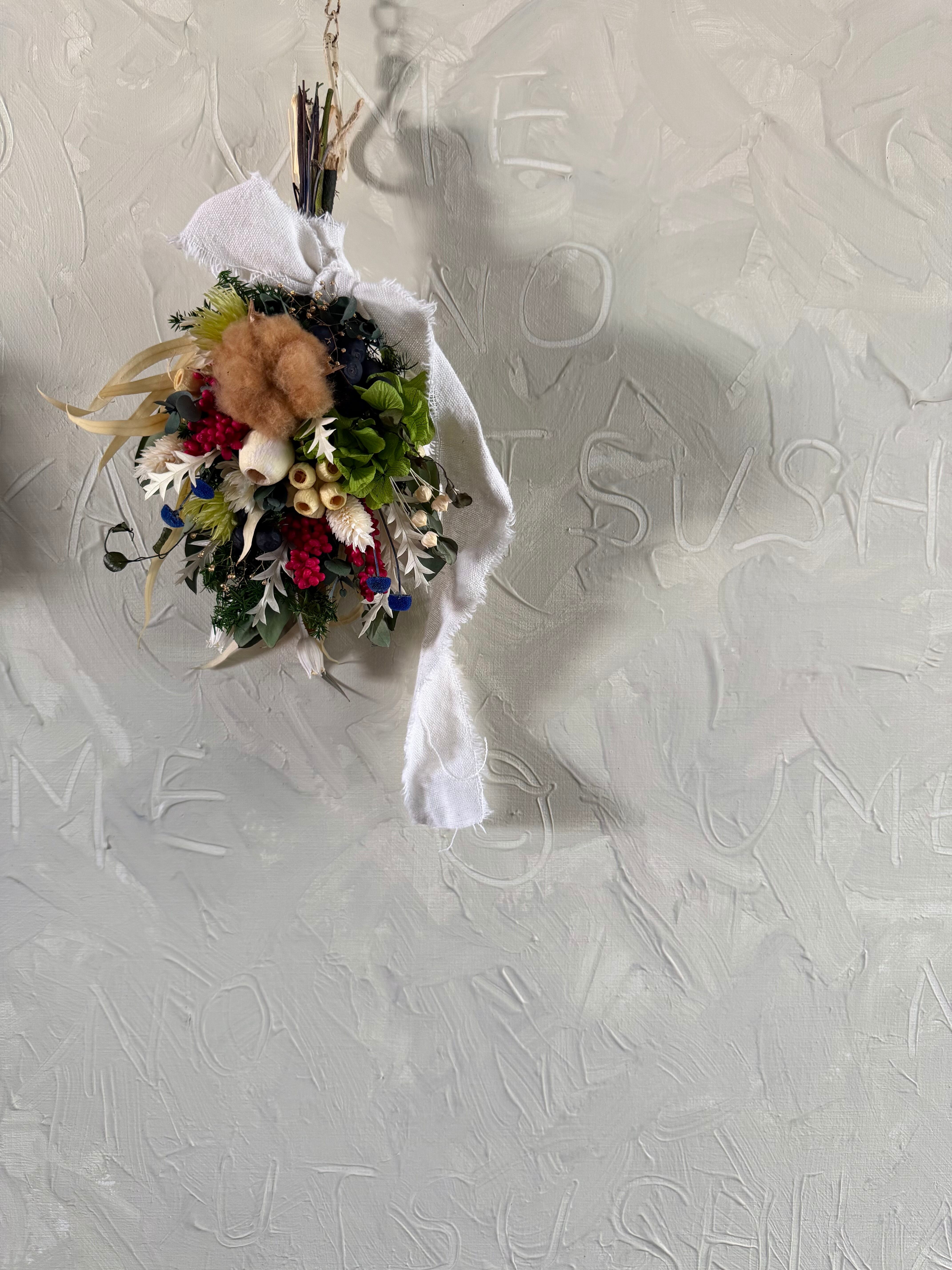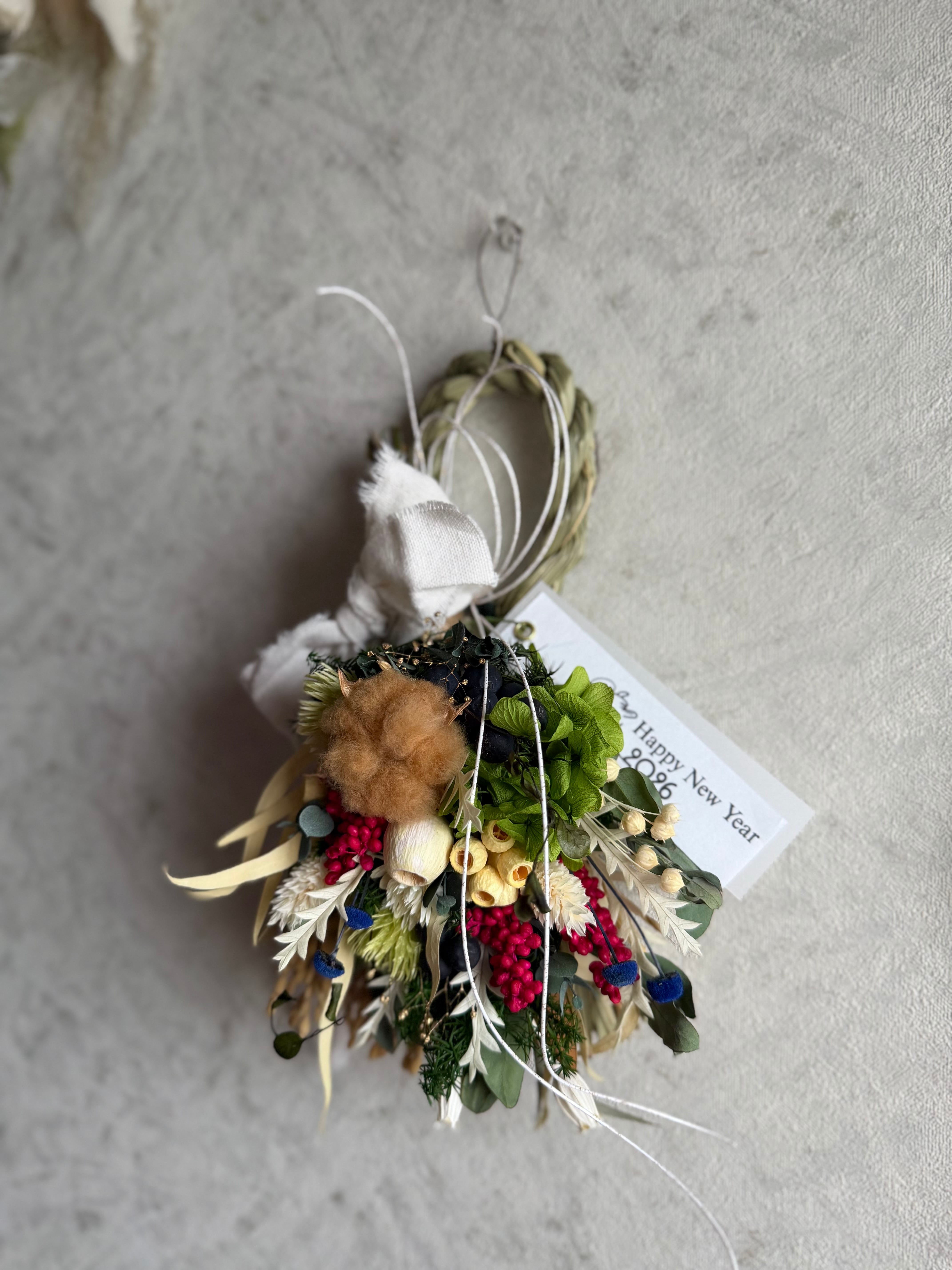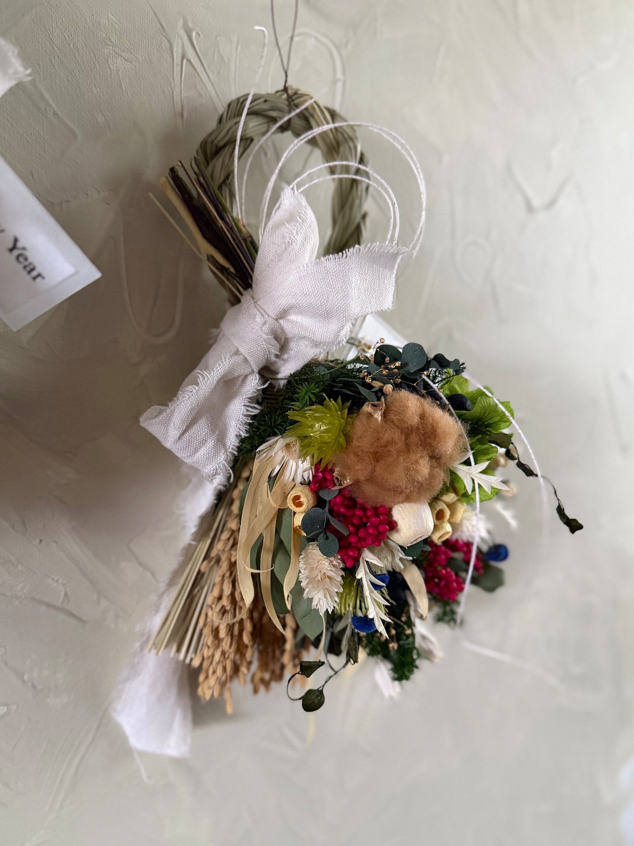 まるで大正ロマンのお着物のような色合いのしめ縄スワッグ。