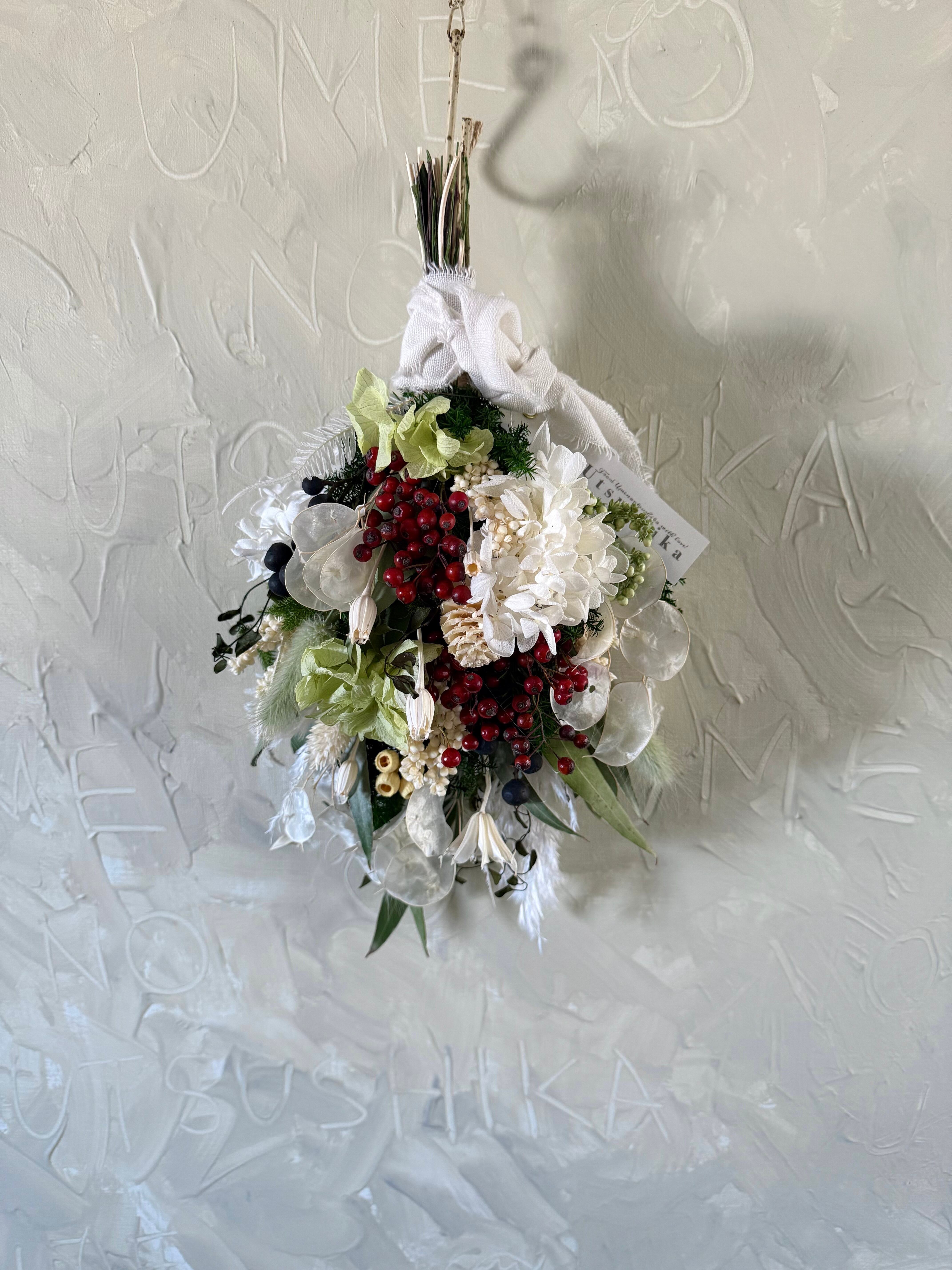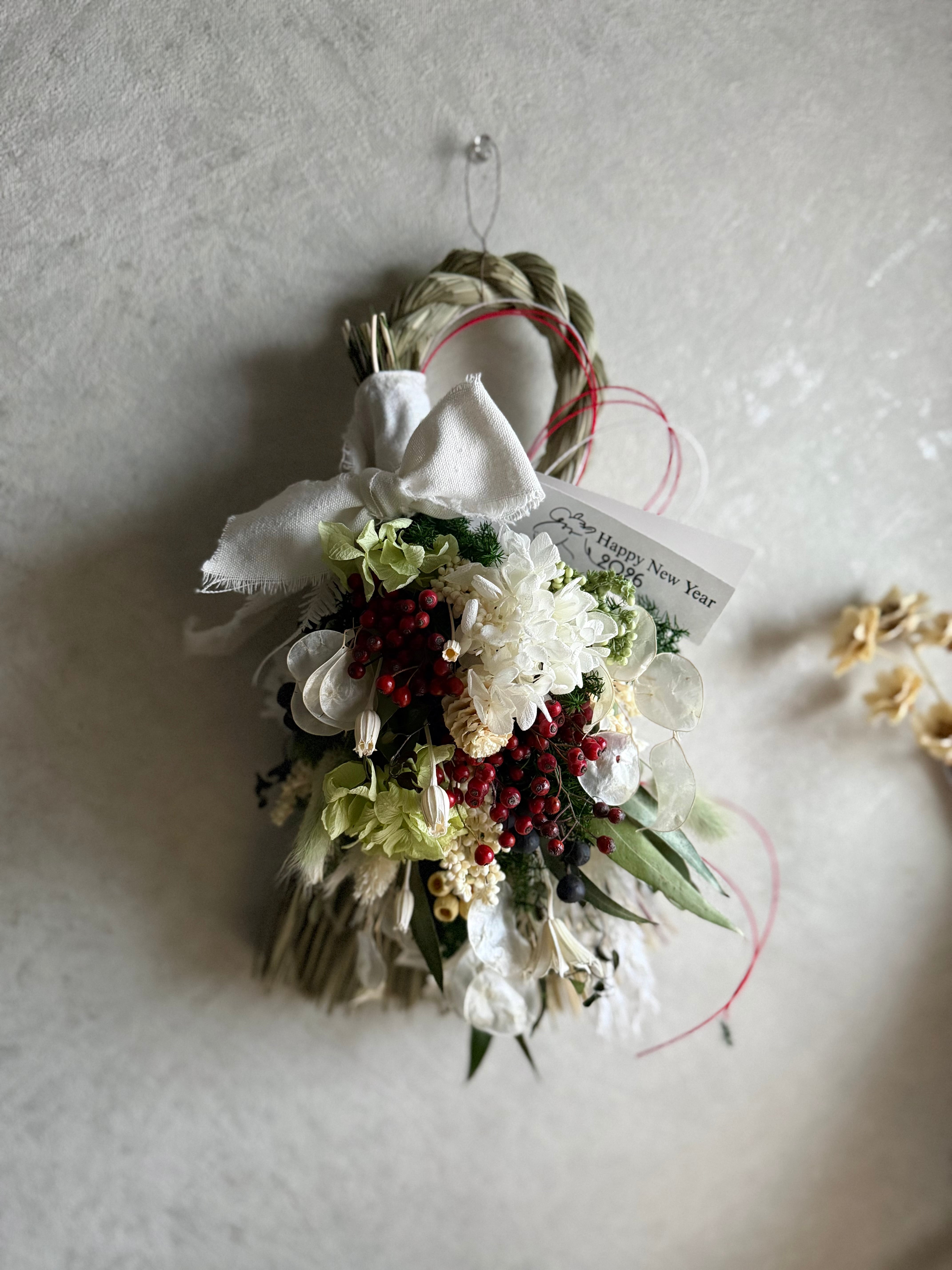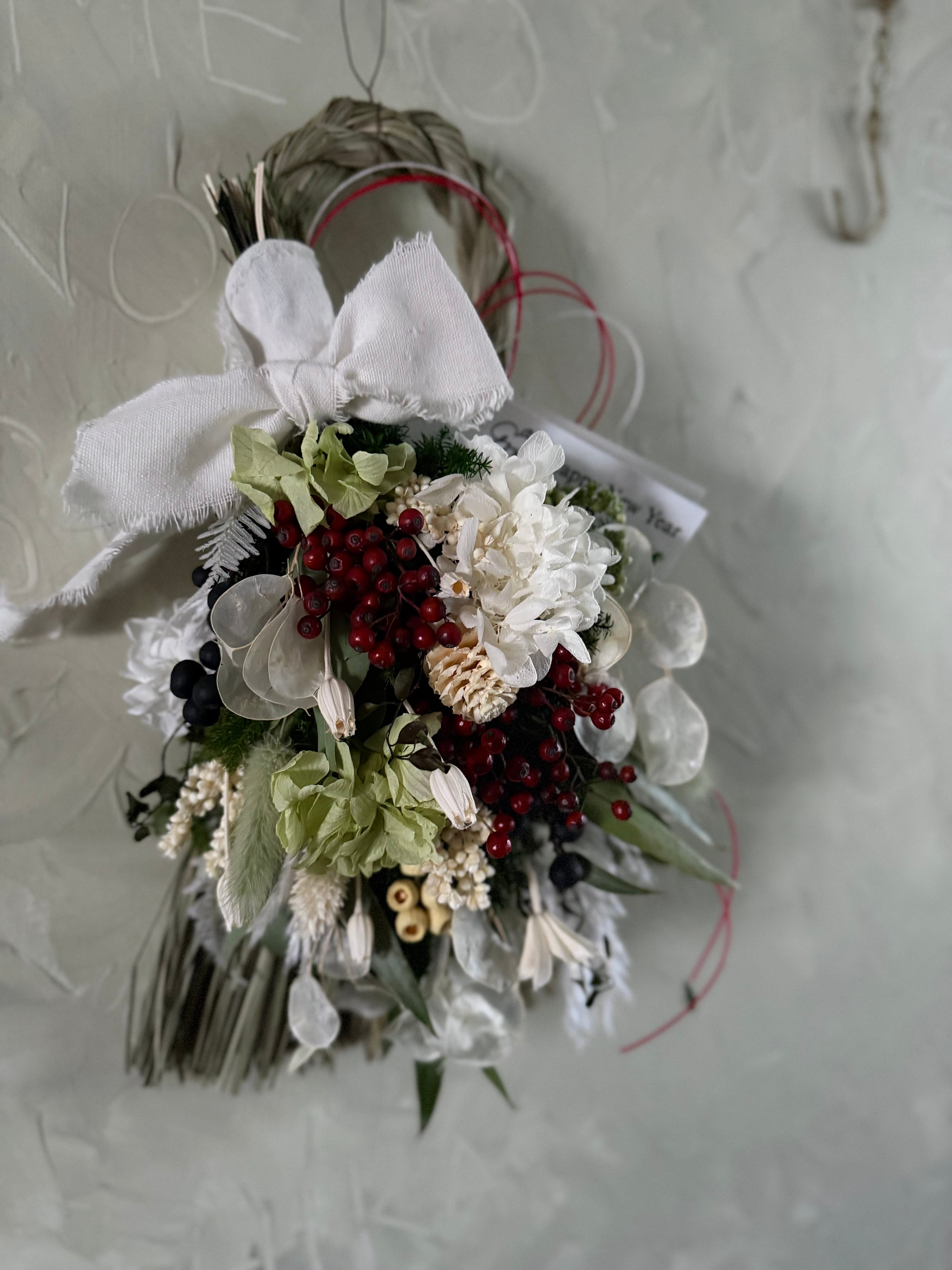 ルナリアを散りばめた贅沢なスワッグをしめ縄としてお楽しみください。