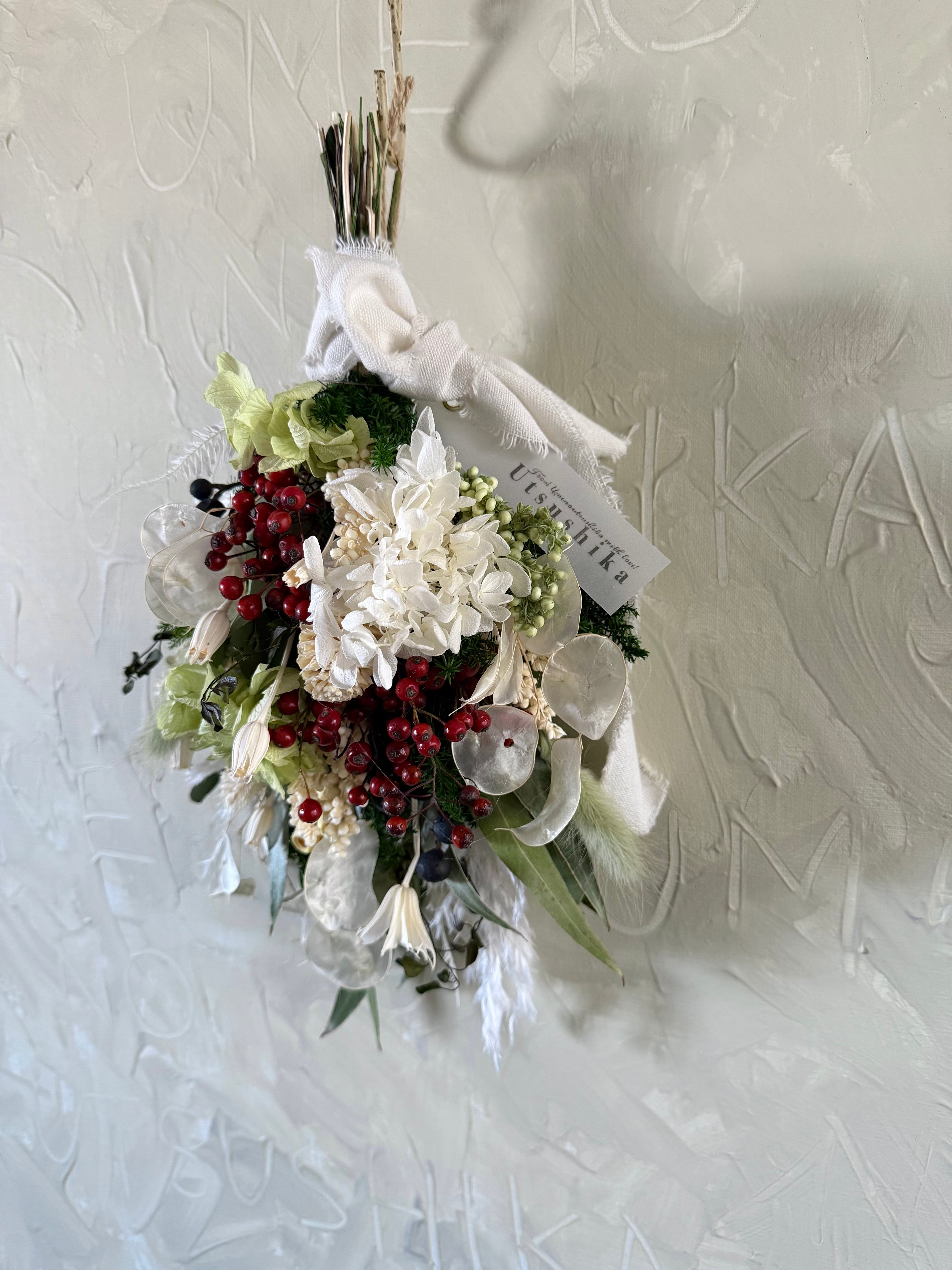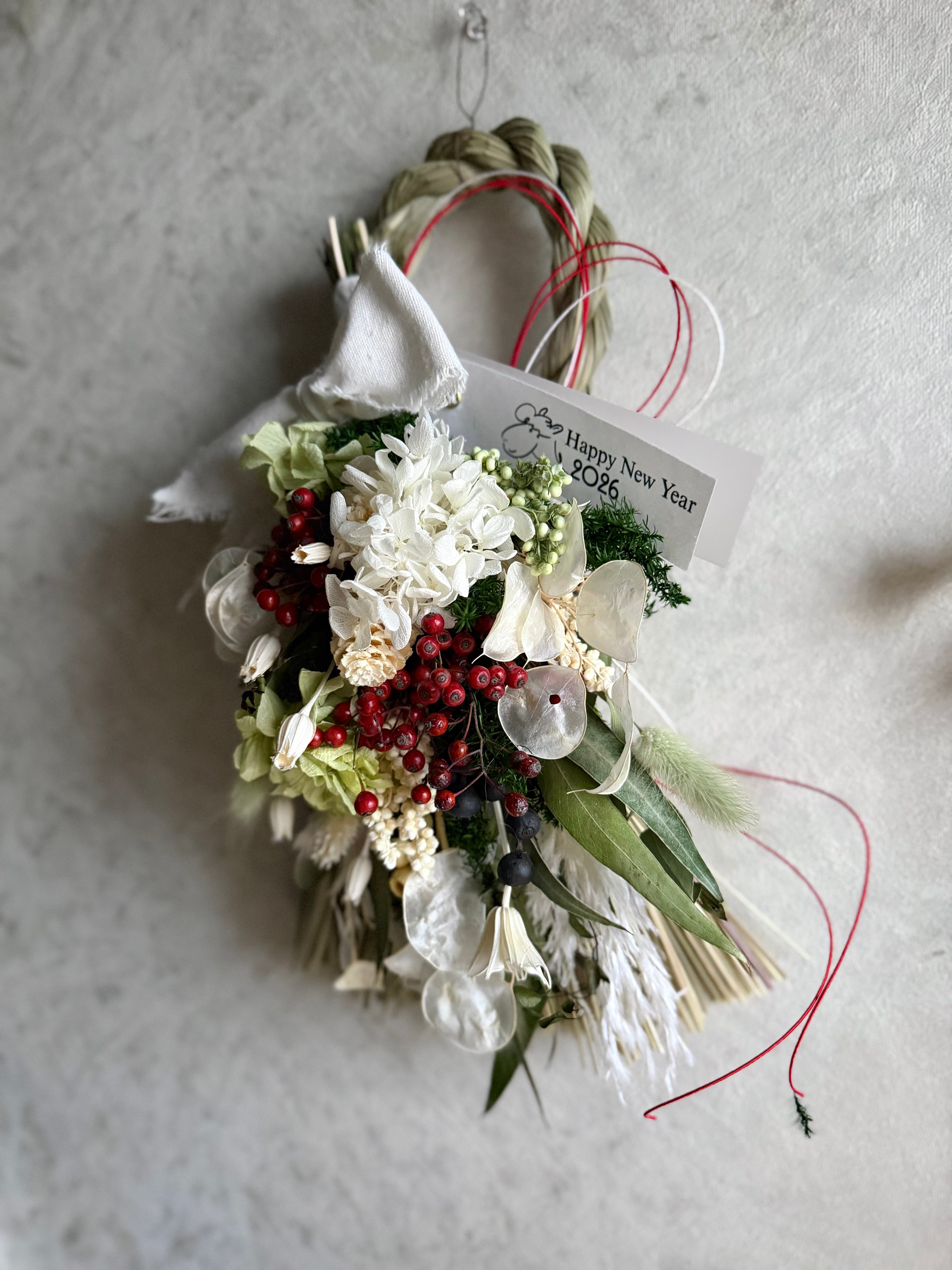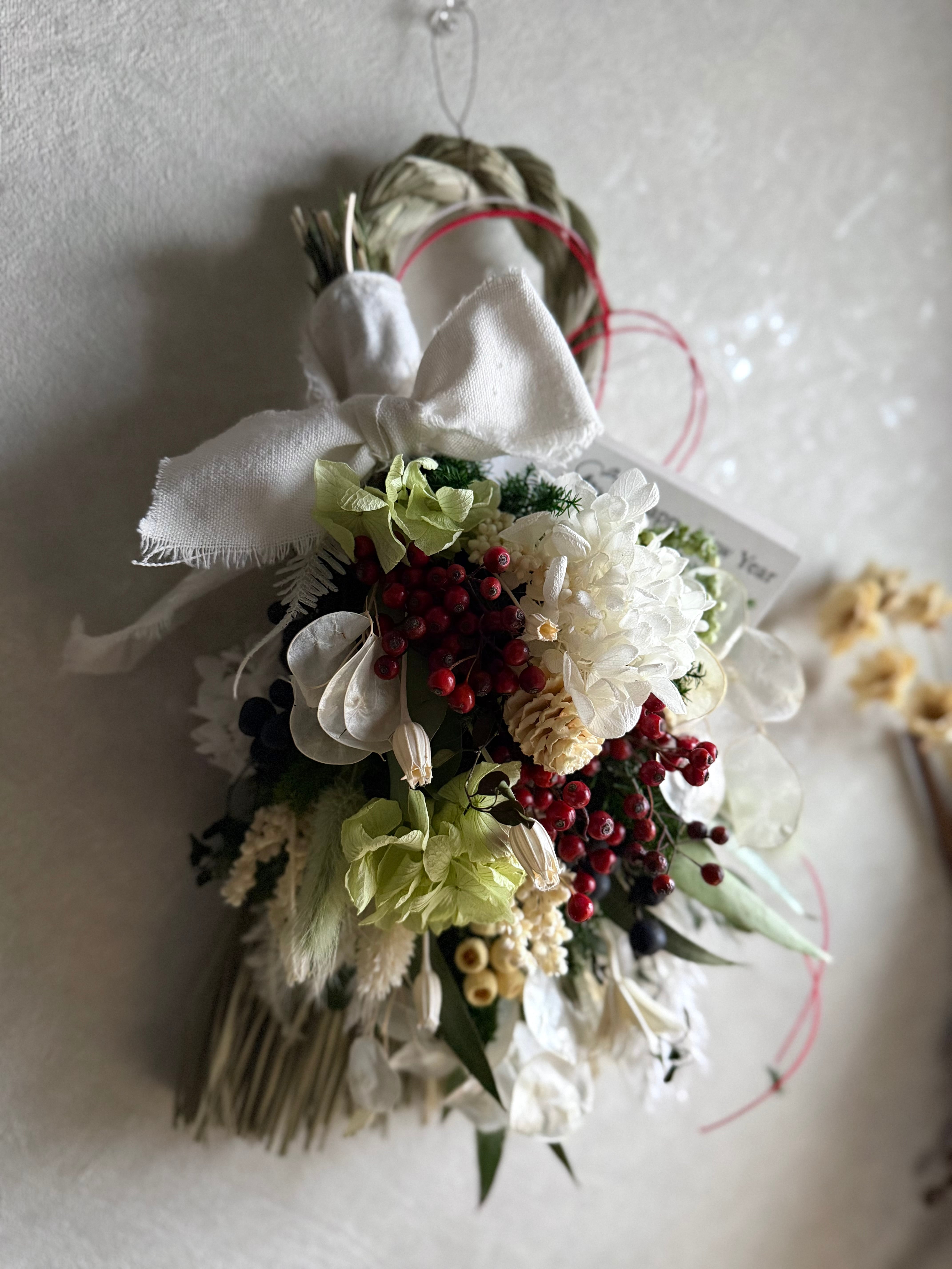 ルナリアを散りばめた贅沢なスワッグをしめ縄としてお楽しみください。