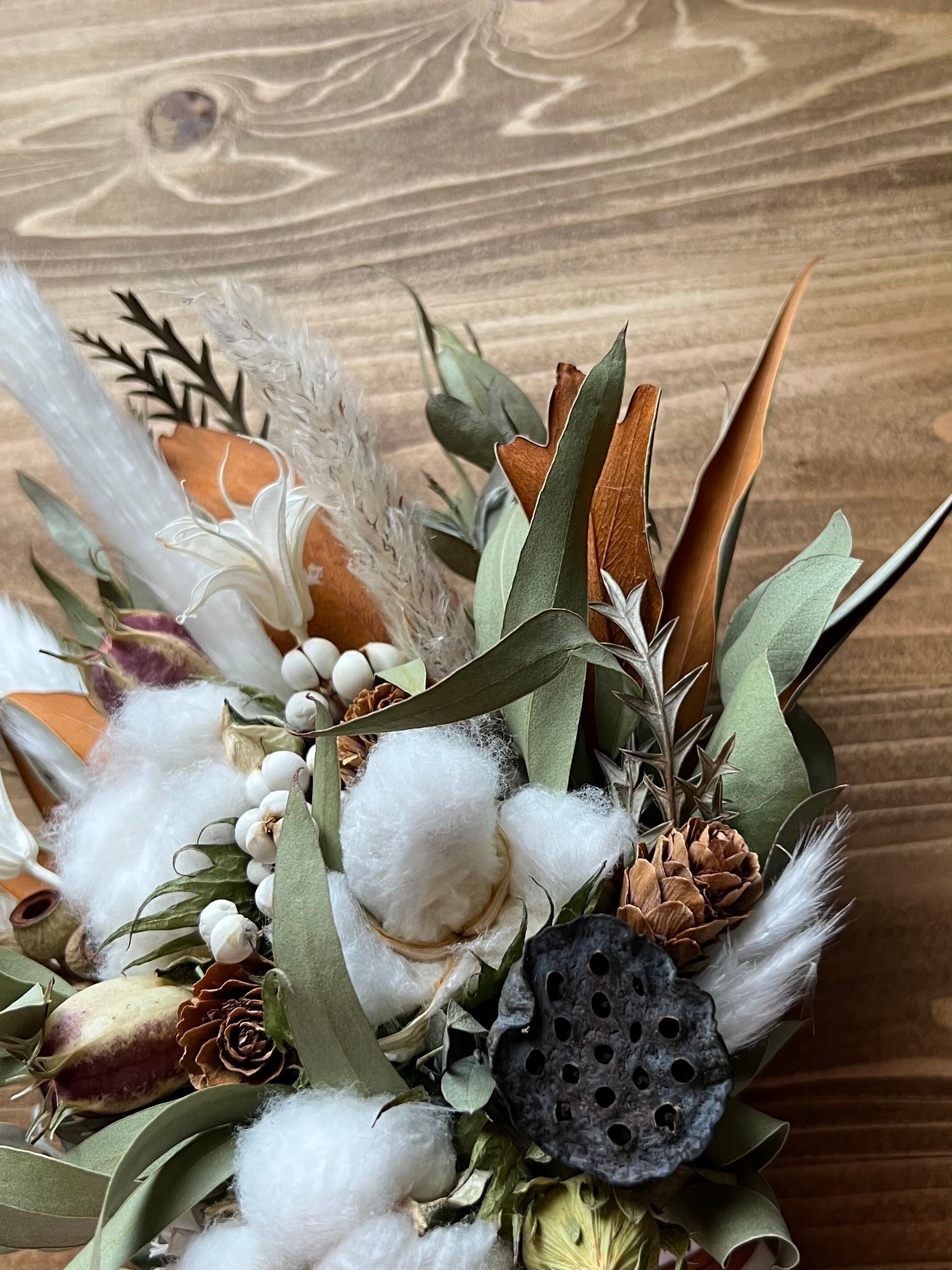 2種の穂のあるドライフラワーをふんだんに使用しました。
