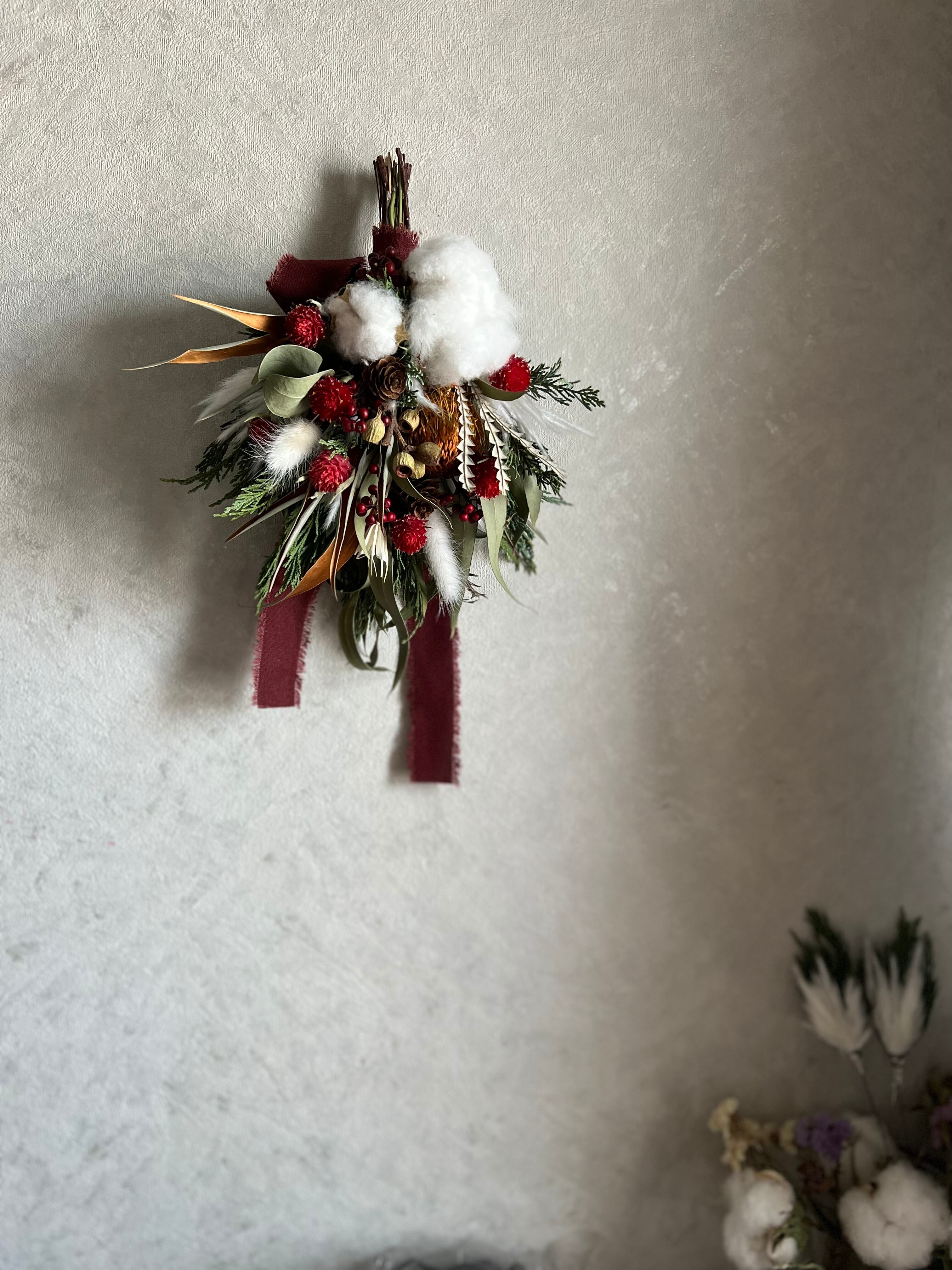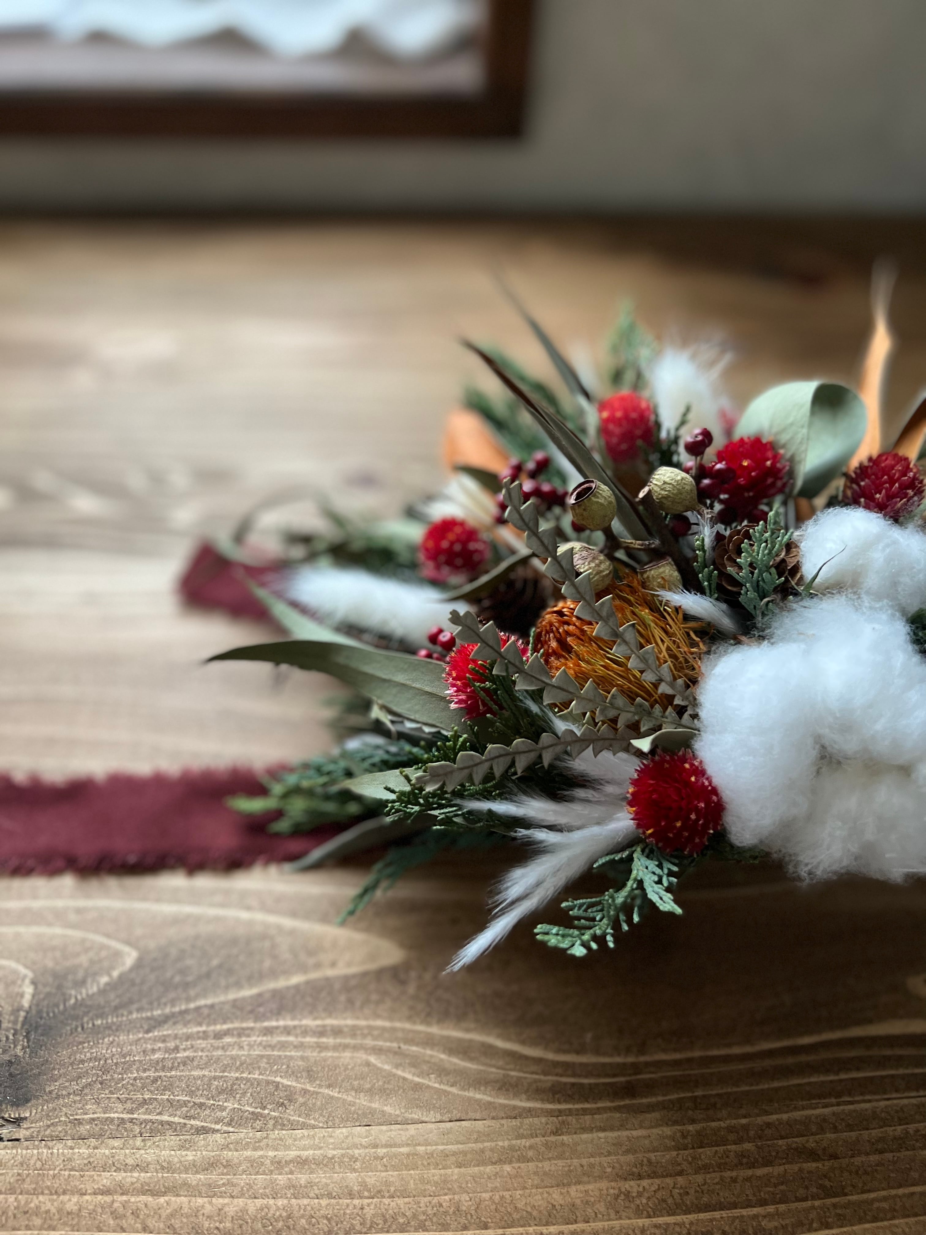 お正月にもピッタリな冬のスワッグです。