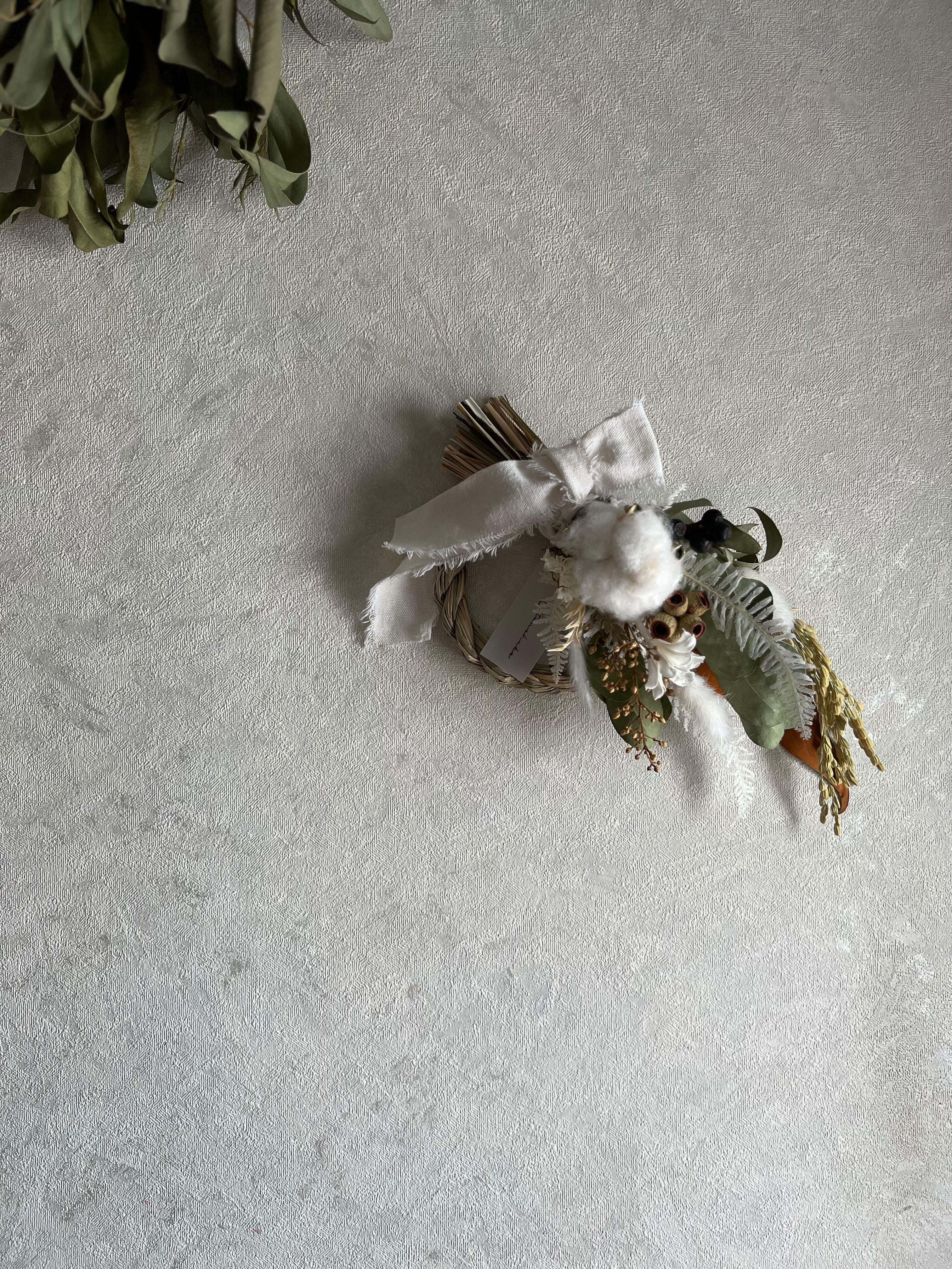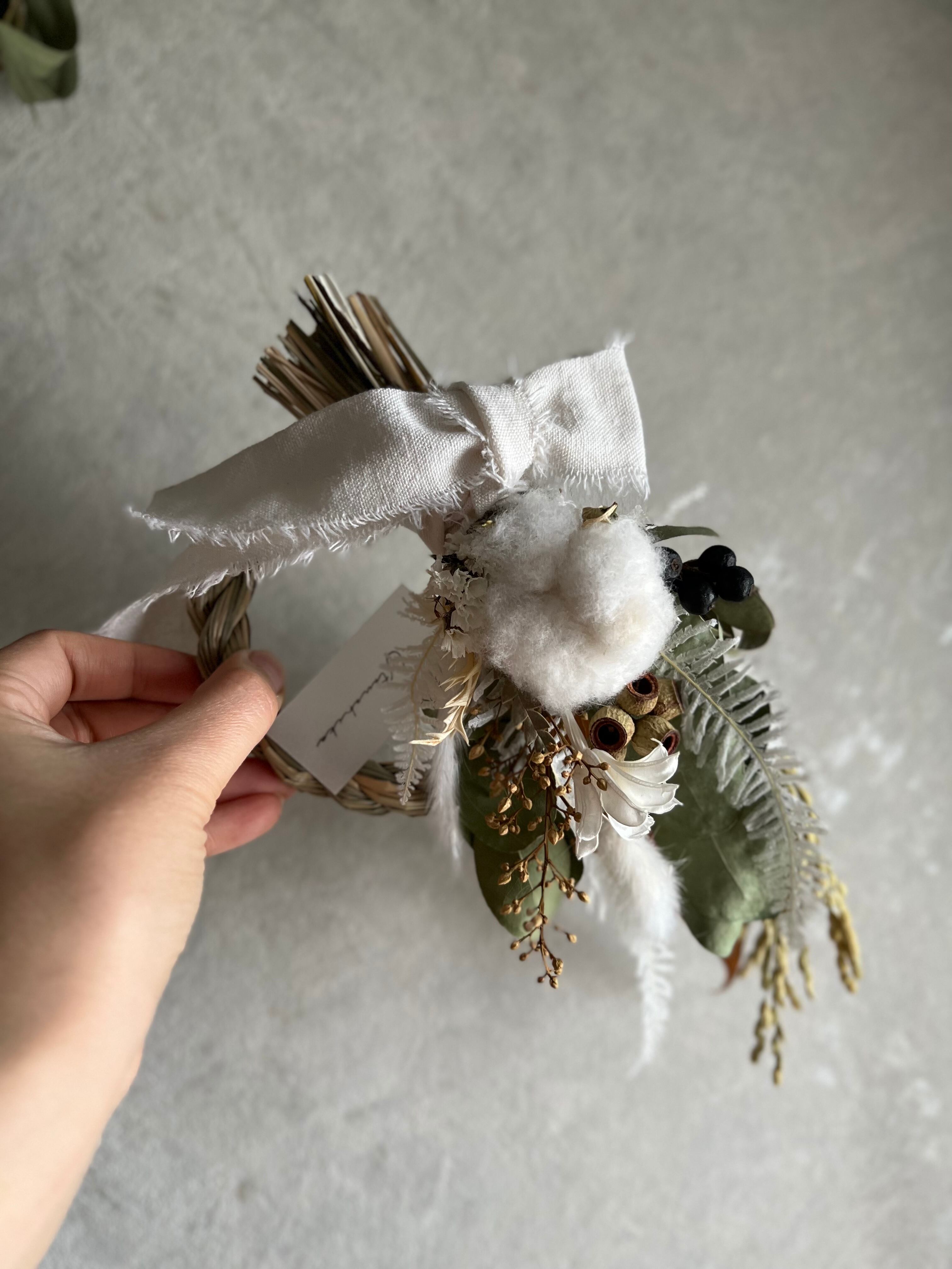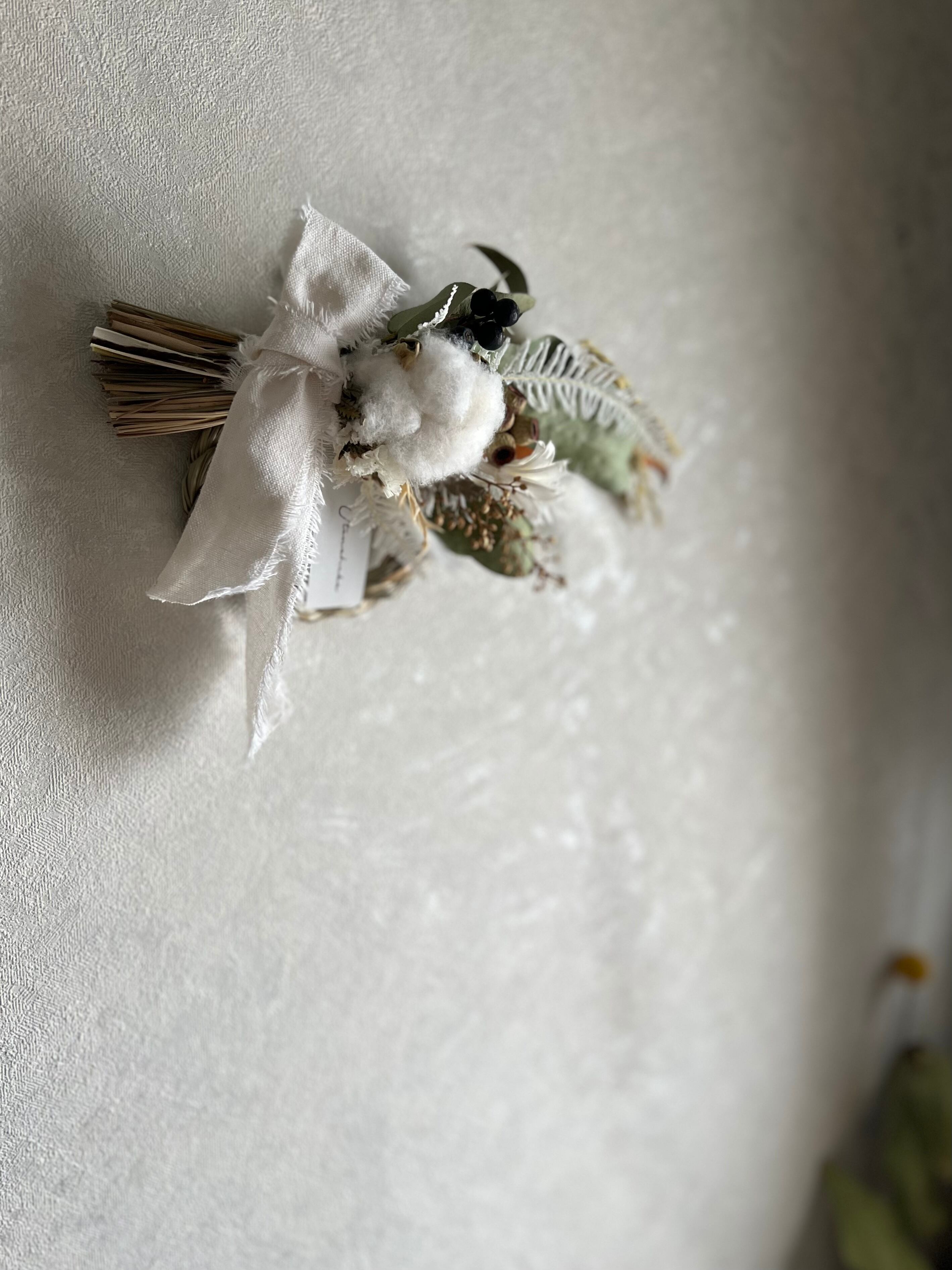 2wayミニサイズのコットンフラワーしめ縄スワッグ