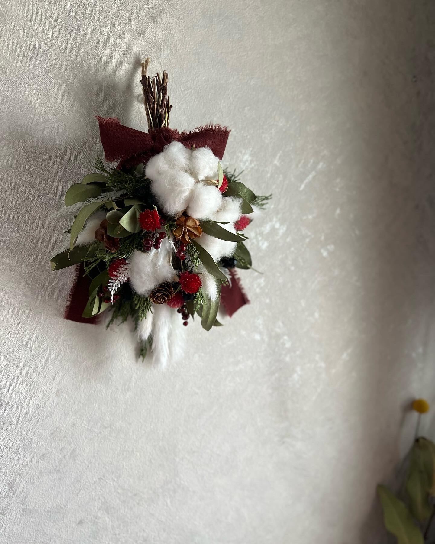 まだ間に合うクリスマスにぴったりな冬のスワッグです。