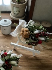 赤と白、グリーンの色合いで合わせました。