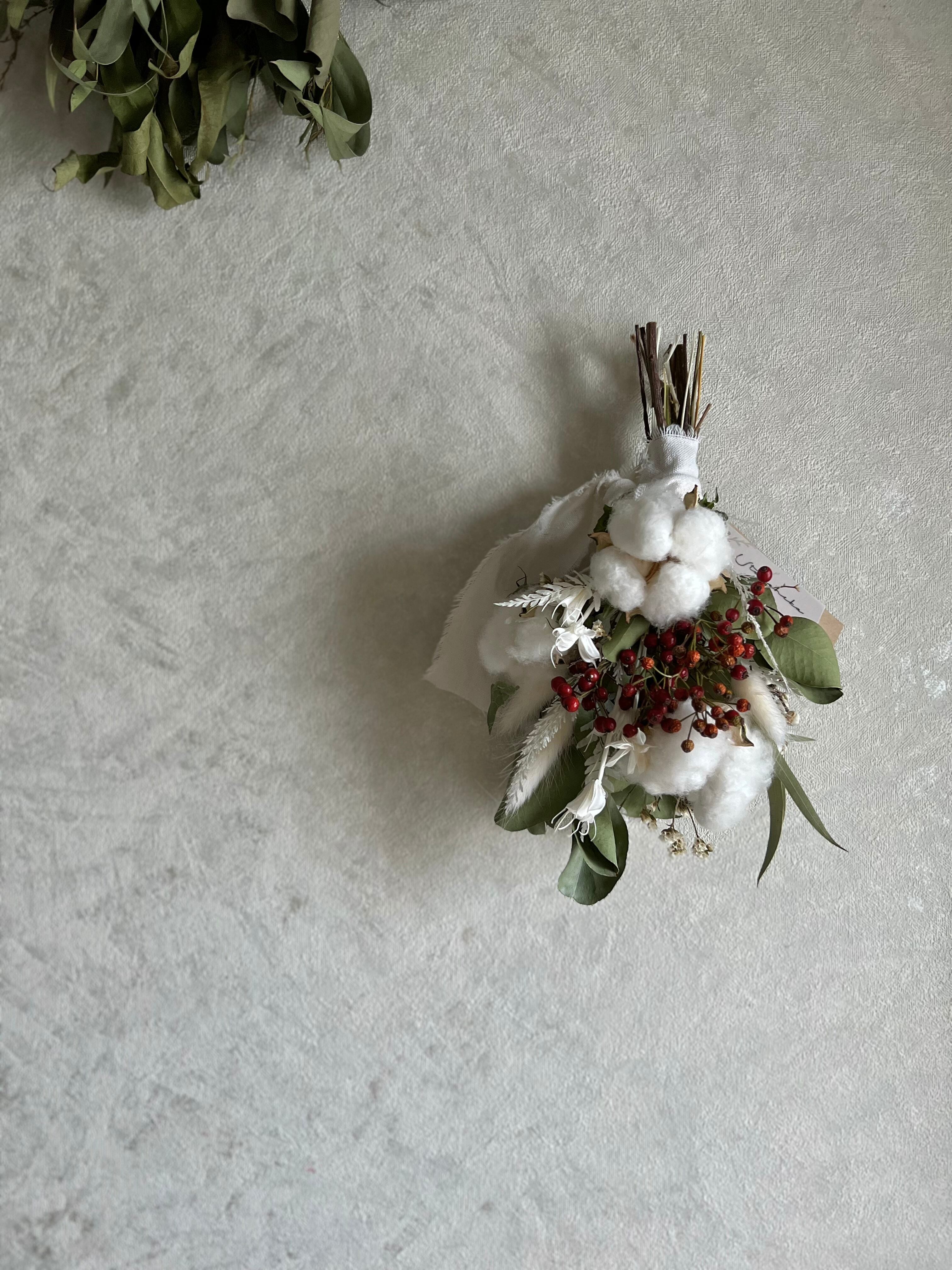 コットンフラワーでふわふわなスワッグに仕上げました。