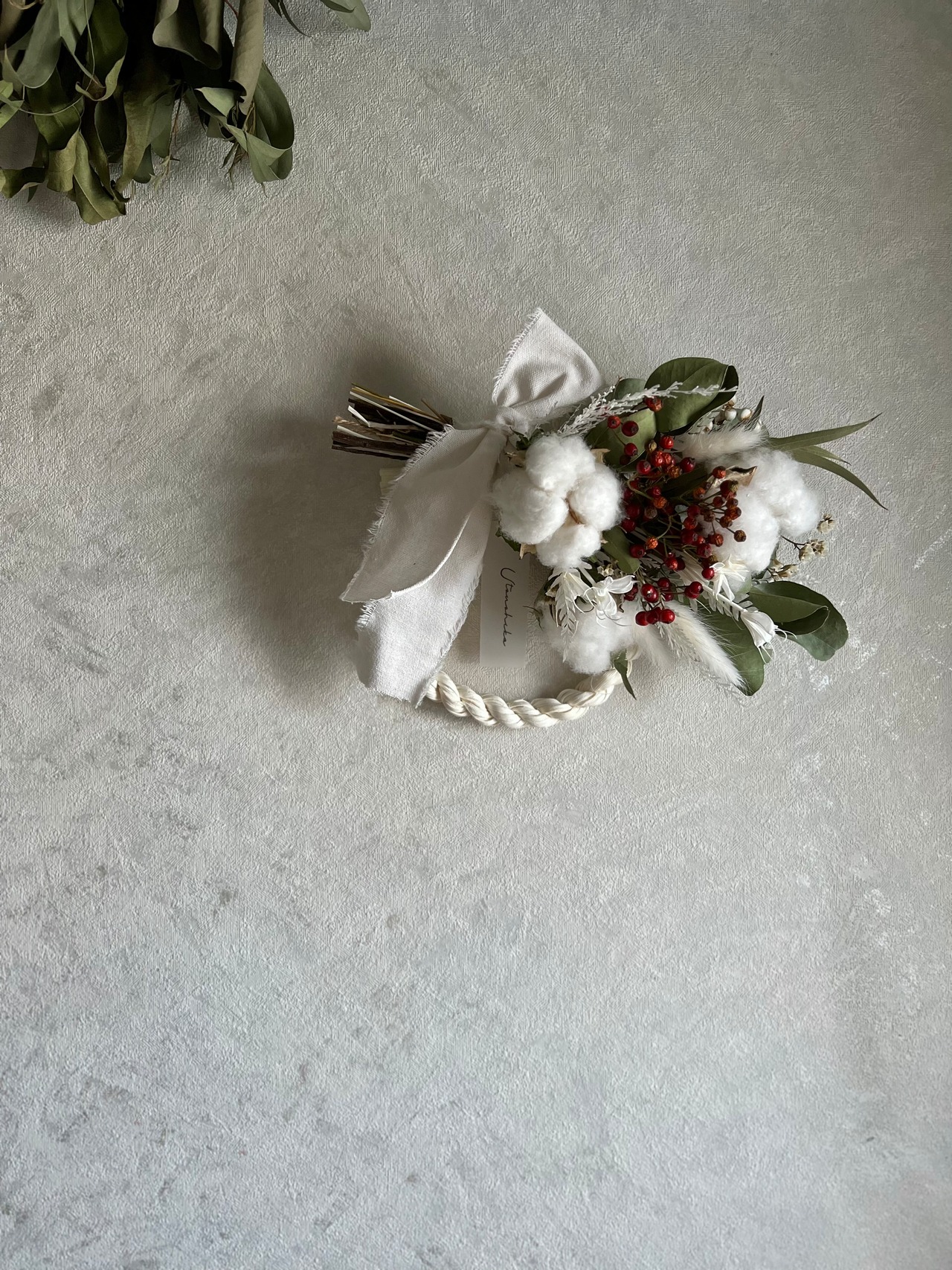 他にもレースファーンやスターチス、ラタンのしめ縄を使い、よりガーリーでカジュアルにしめ縄を楽しめます。