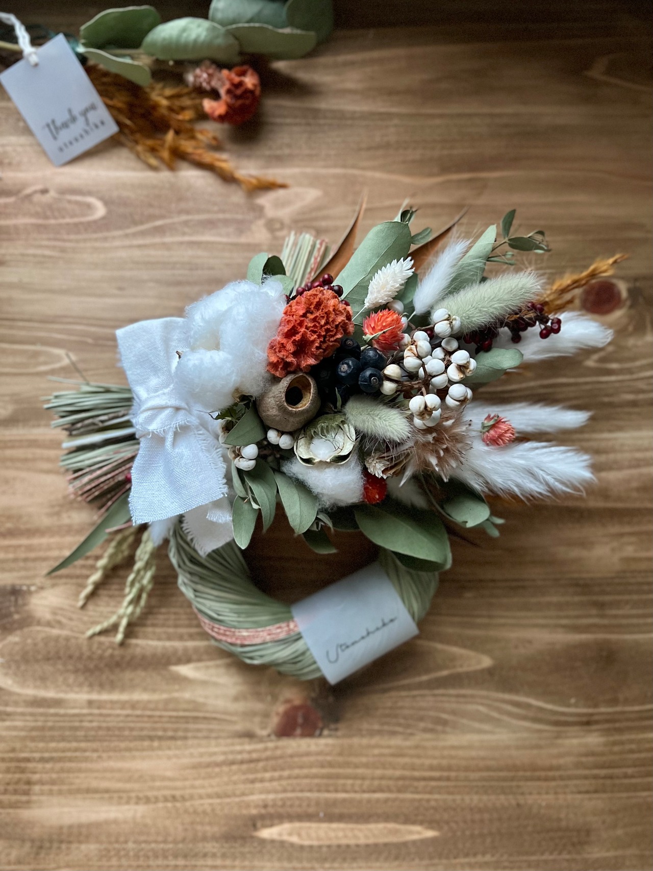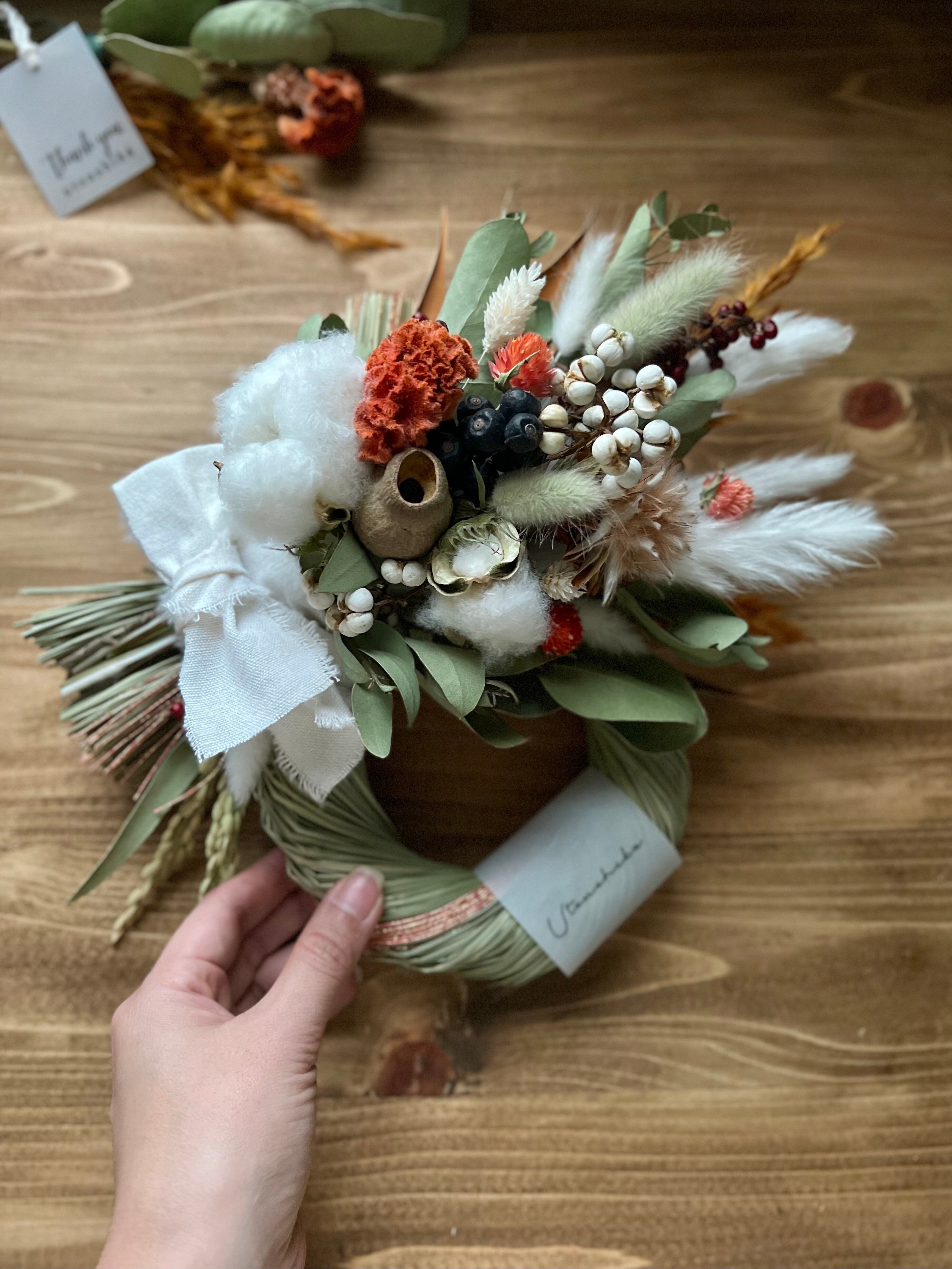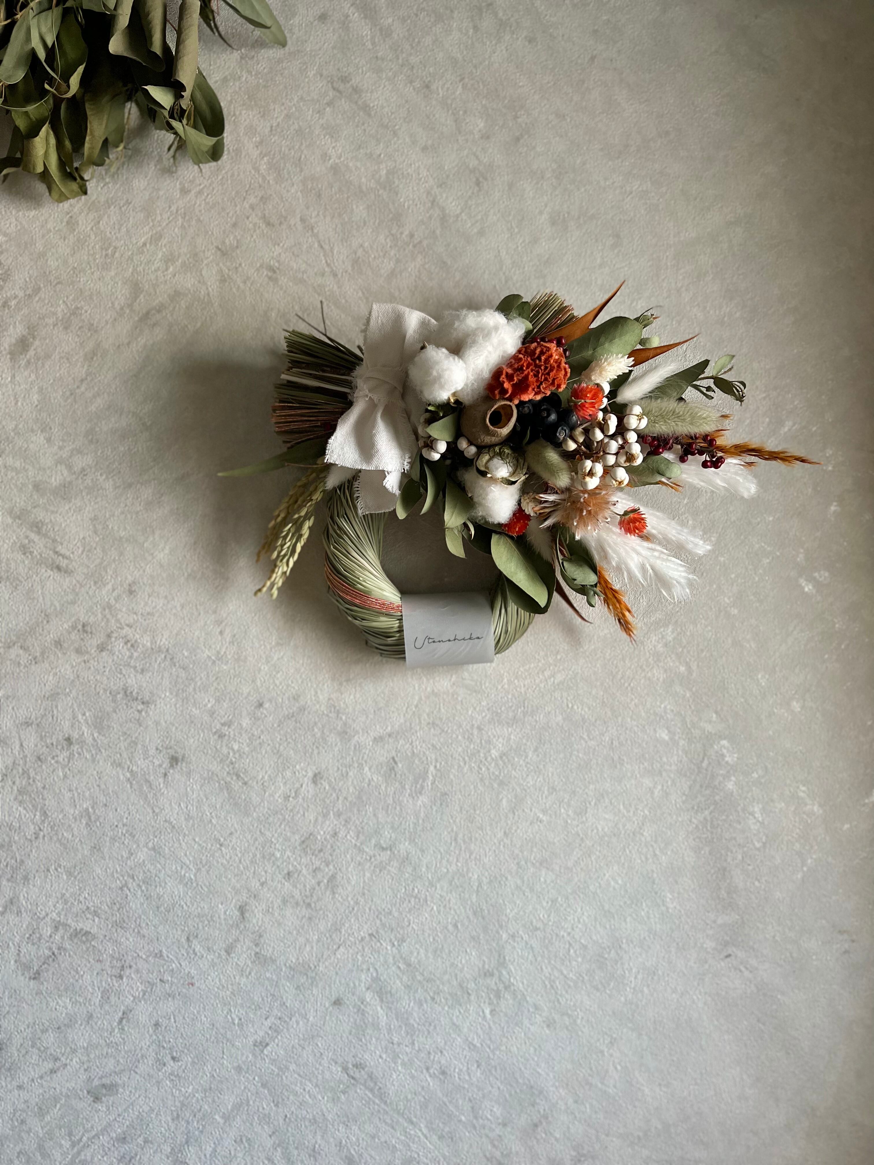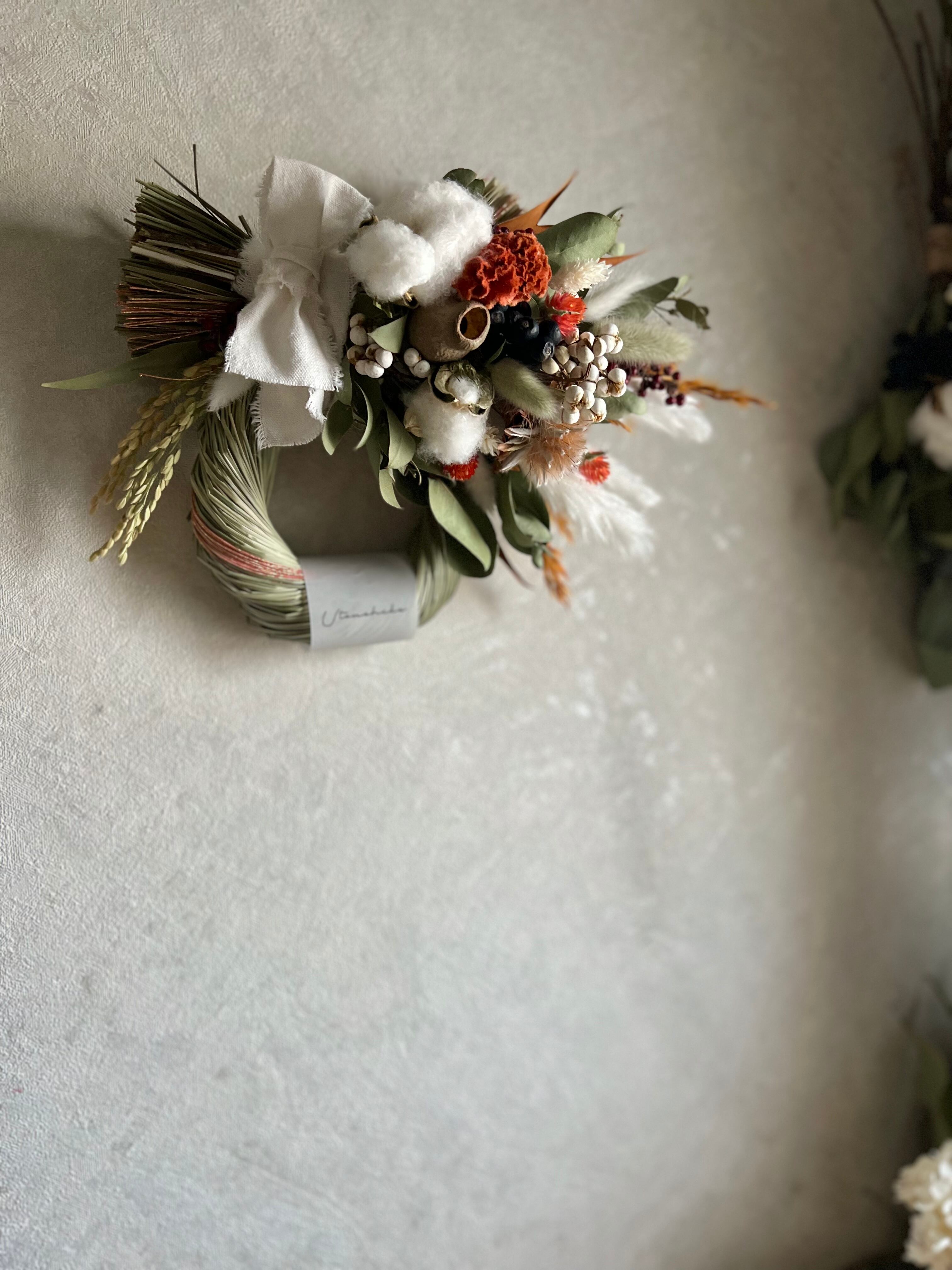 SALE‼️流行りのオレンジカラー♪2wayケイトウと千日紅の水引しめ縄スワッグ