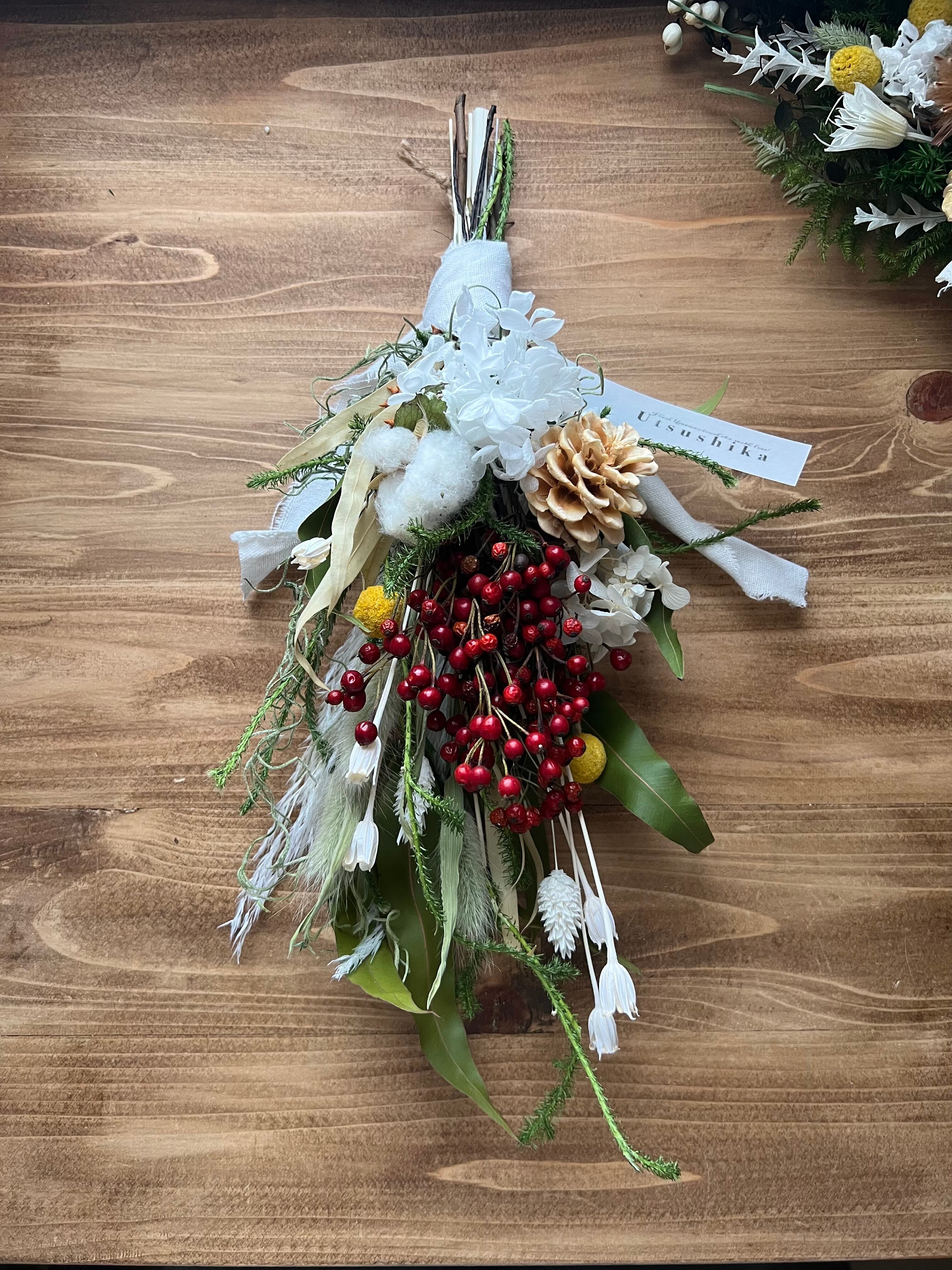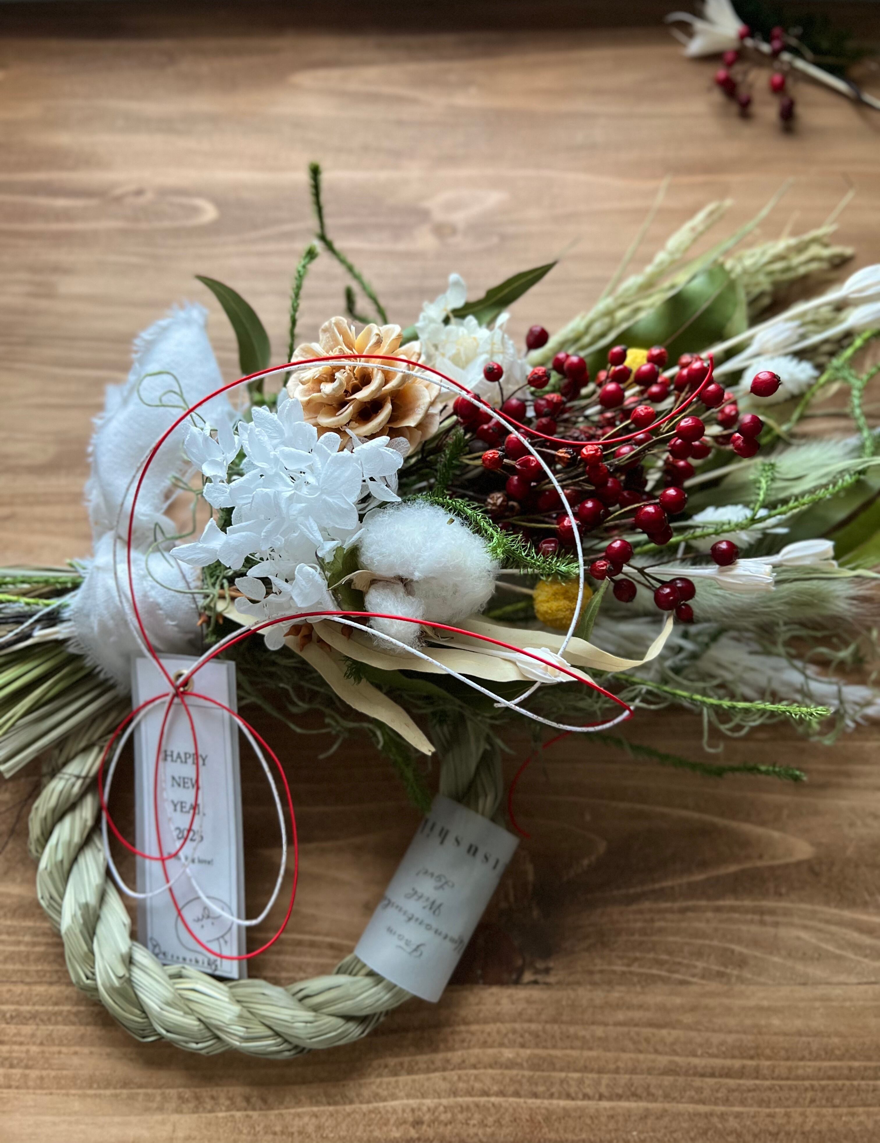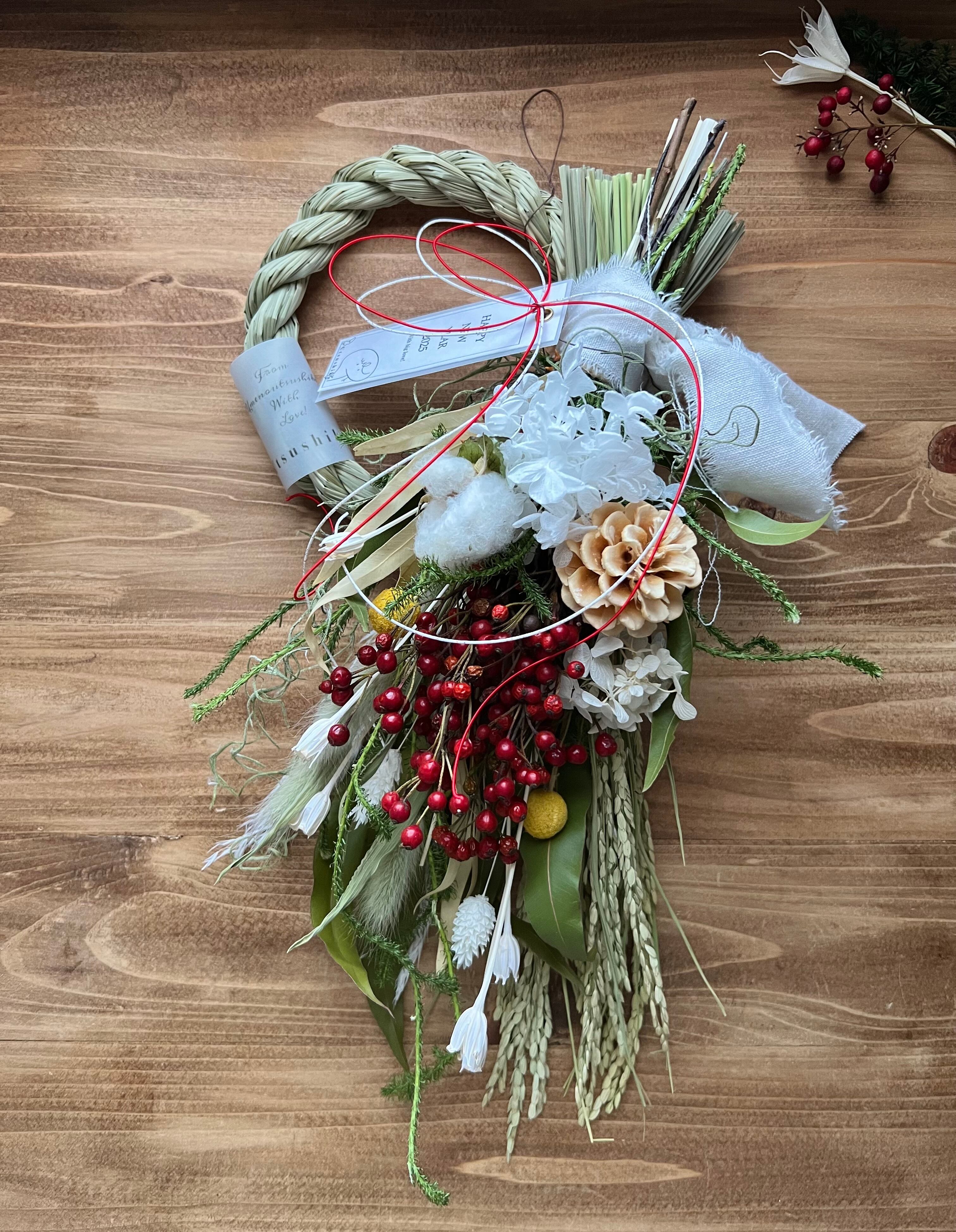 2way紫陽花と薔薇の実のしめ縄スワッグ