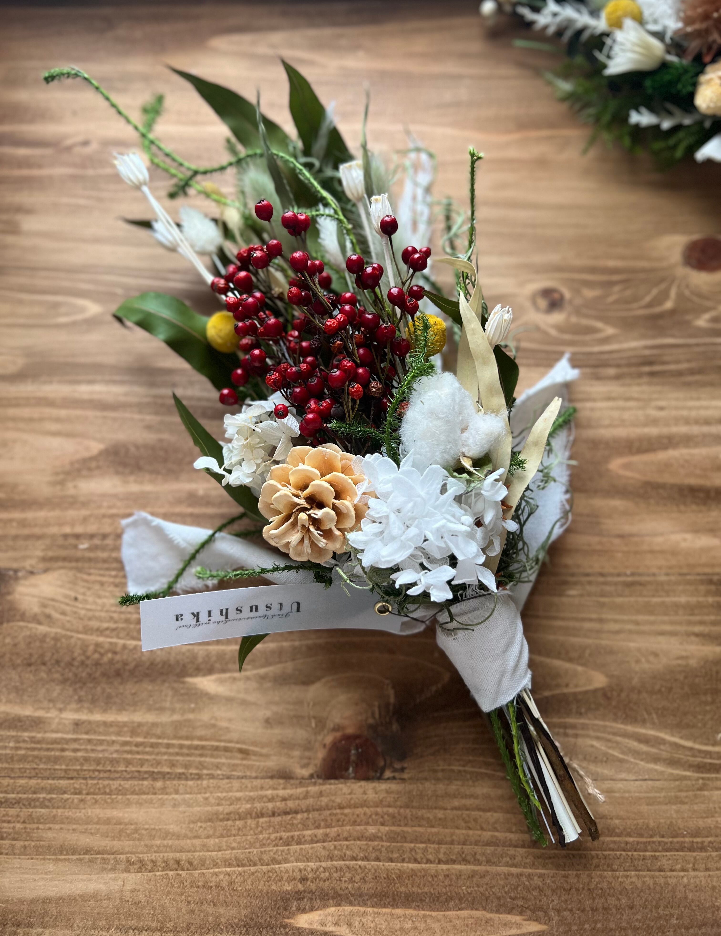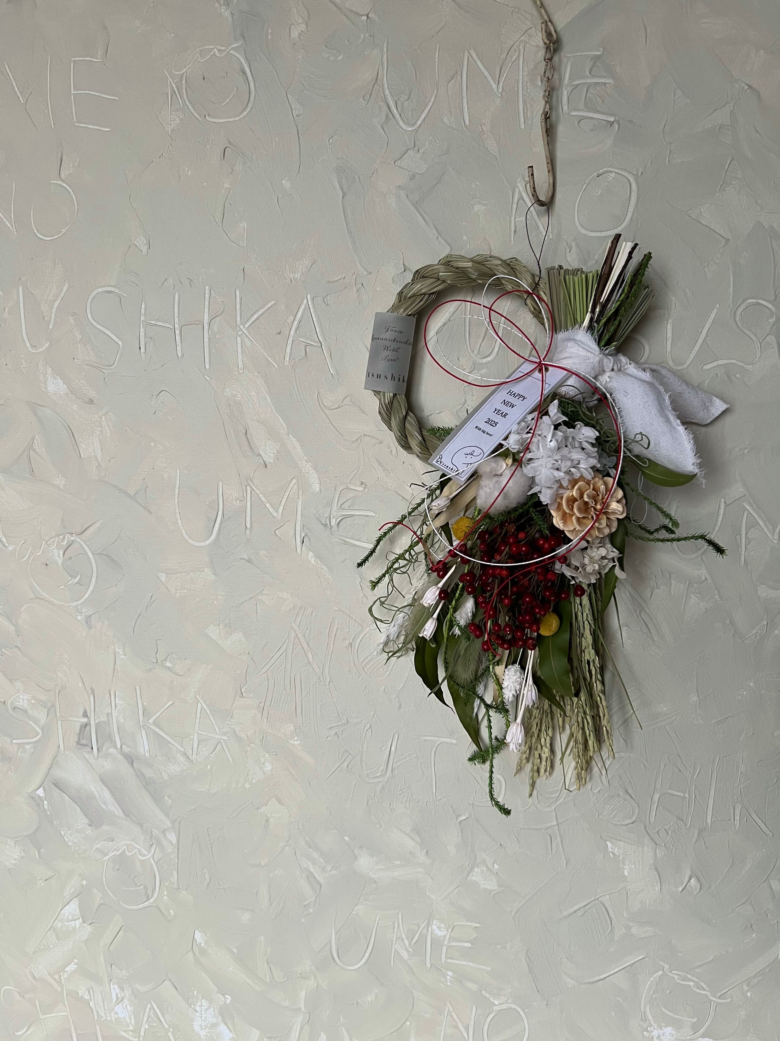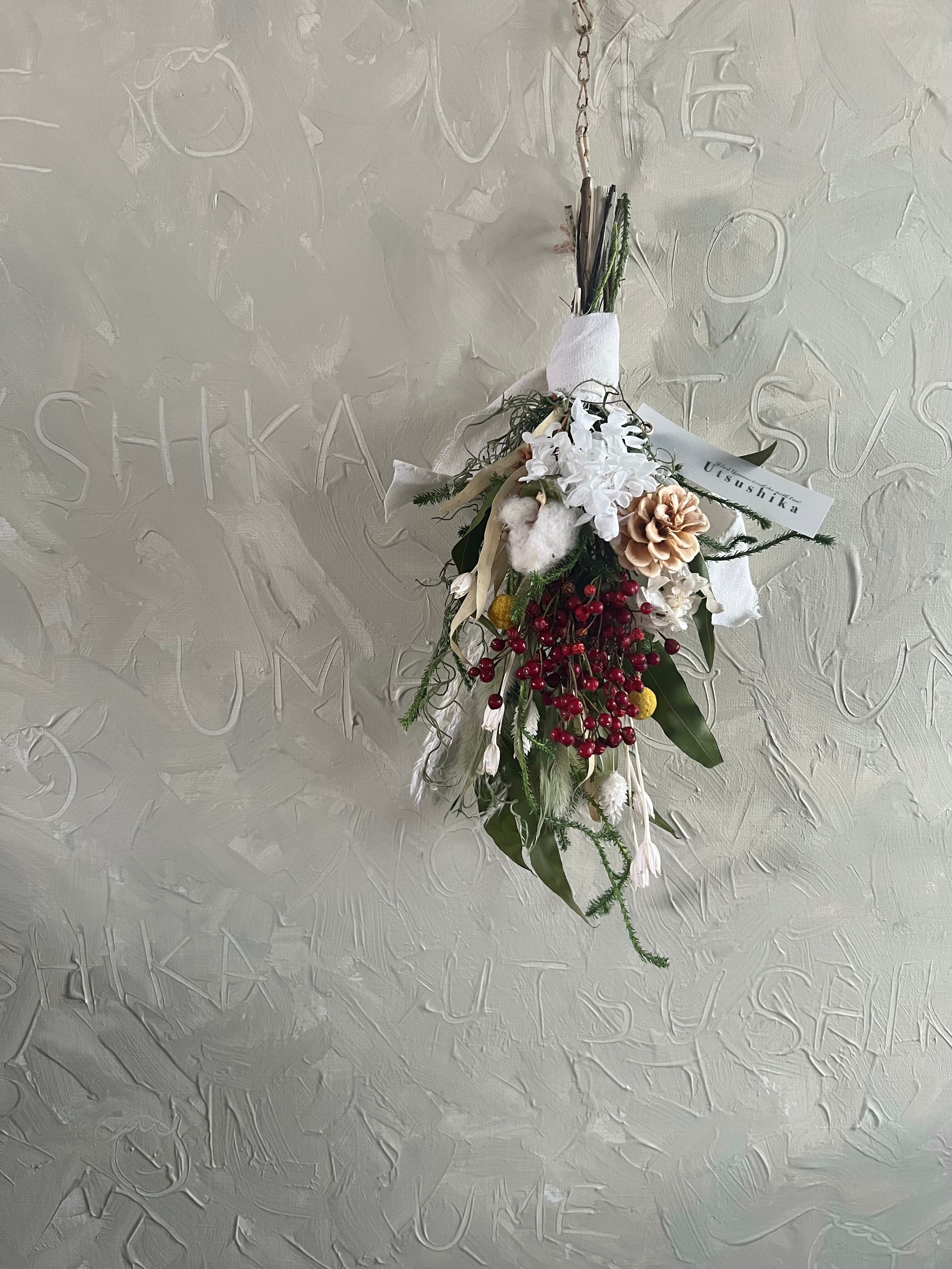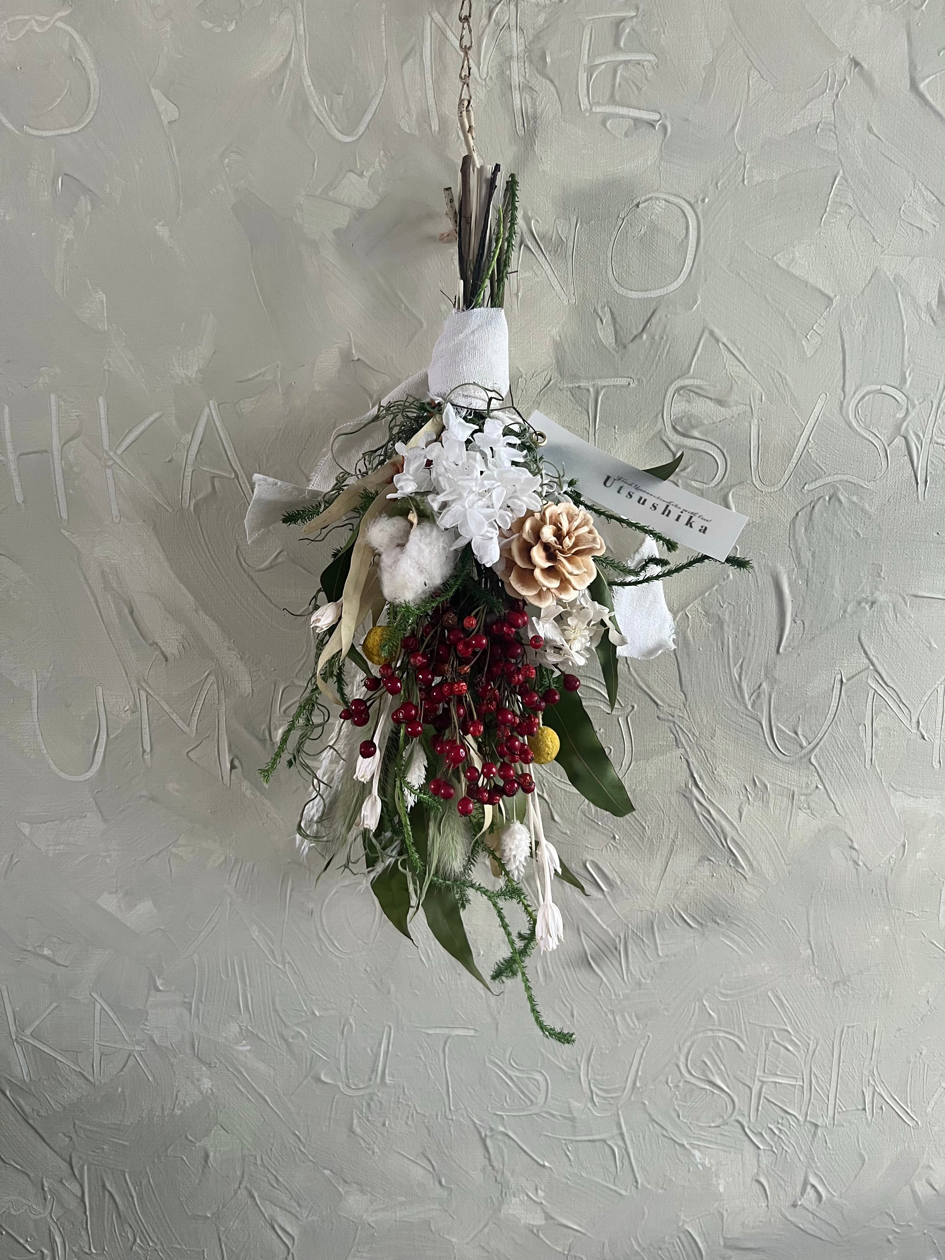 2way紫陽花と薔薇の実のしめ縄スワッグ