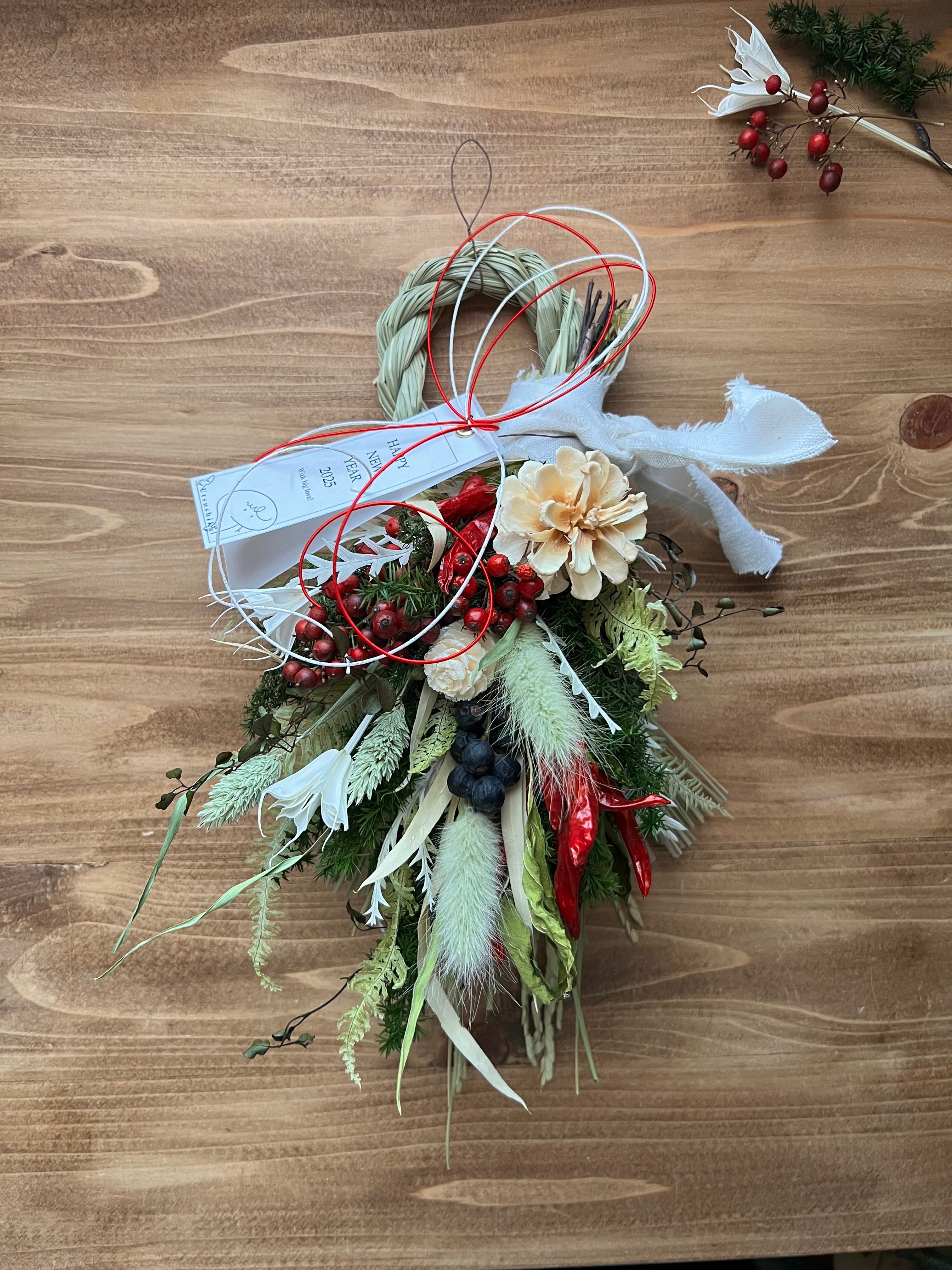 2way唐辛子と松ぼっくりのしめ縄スワッグ