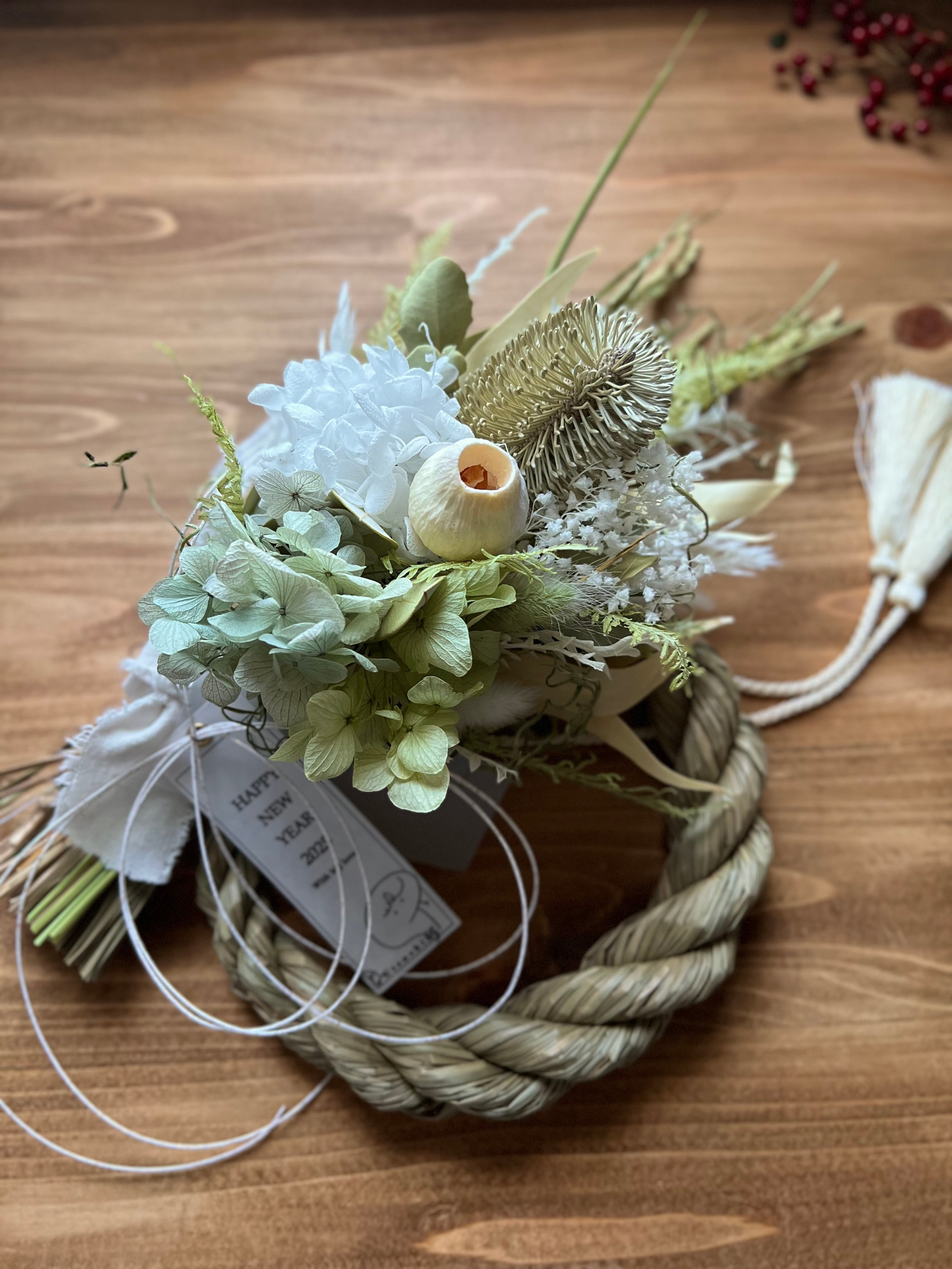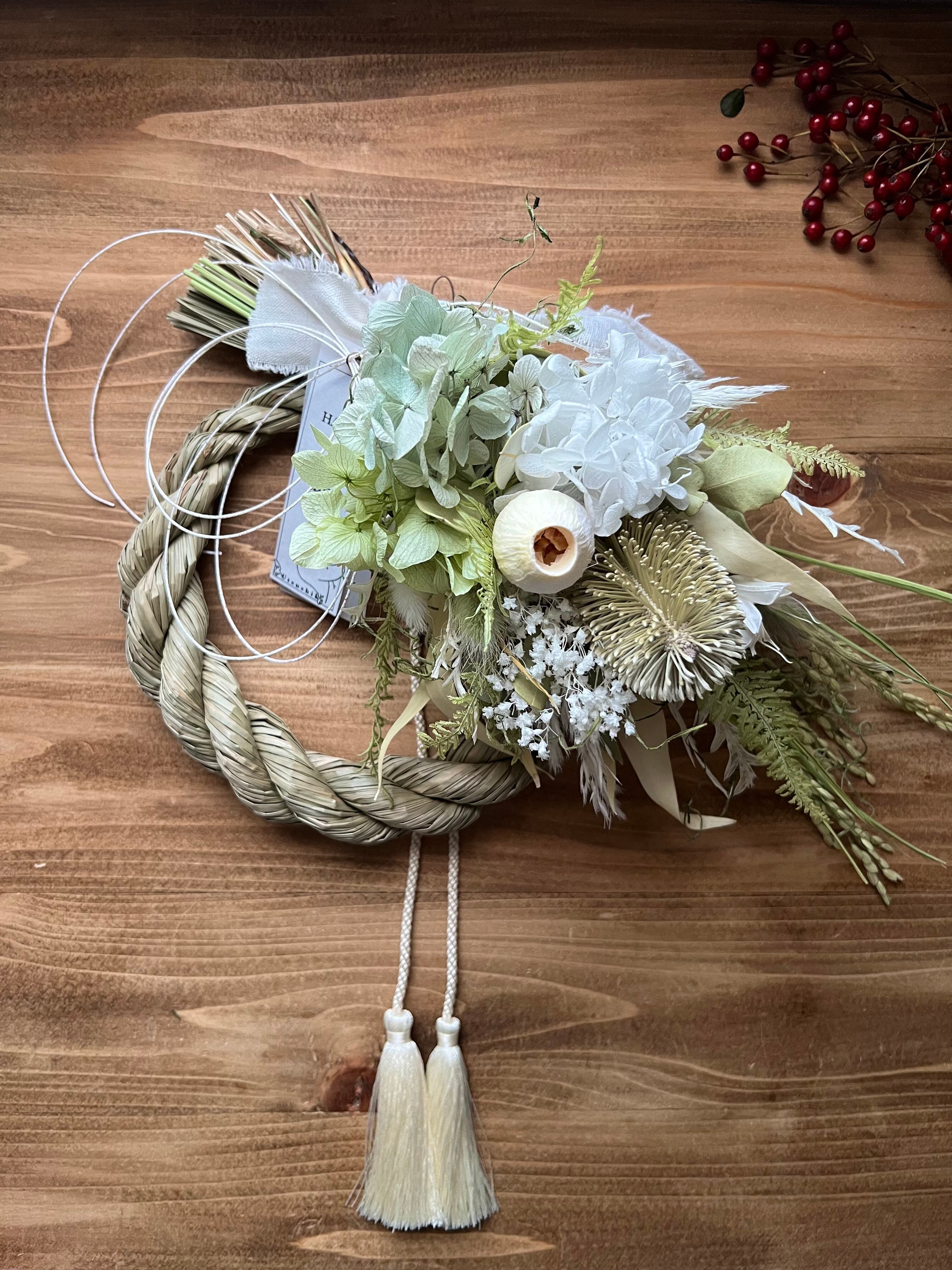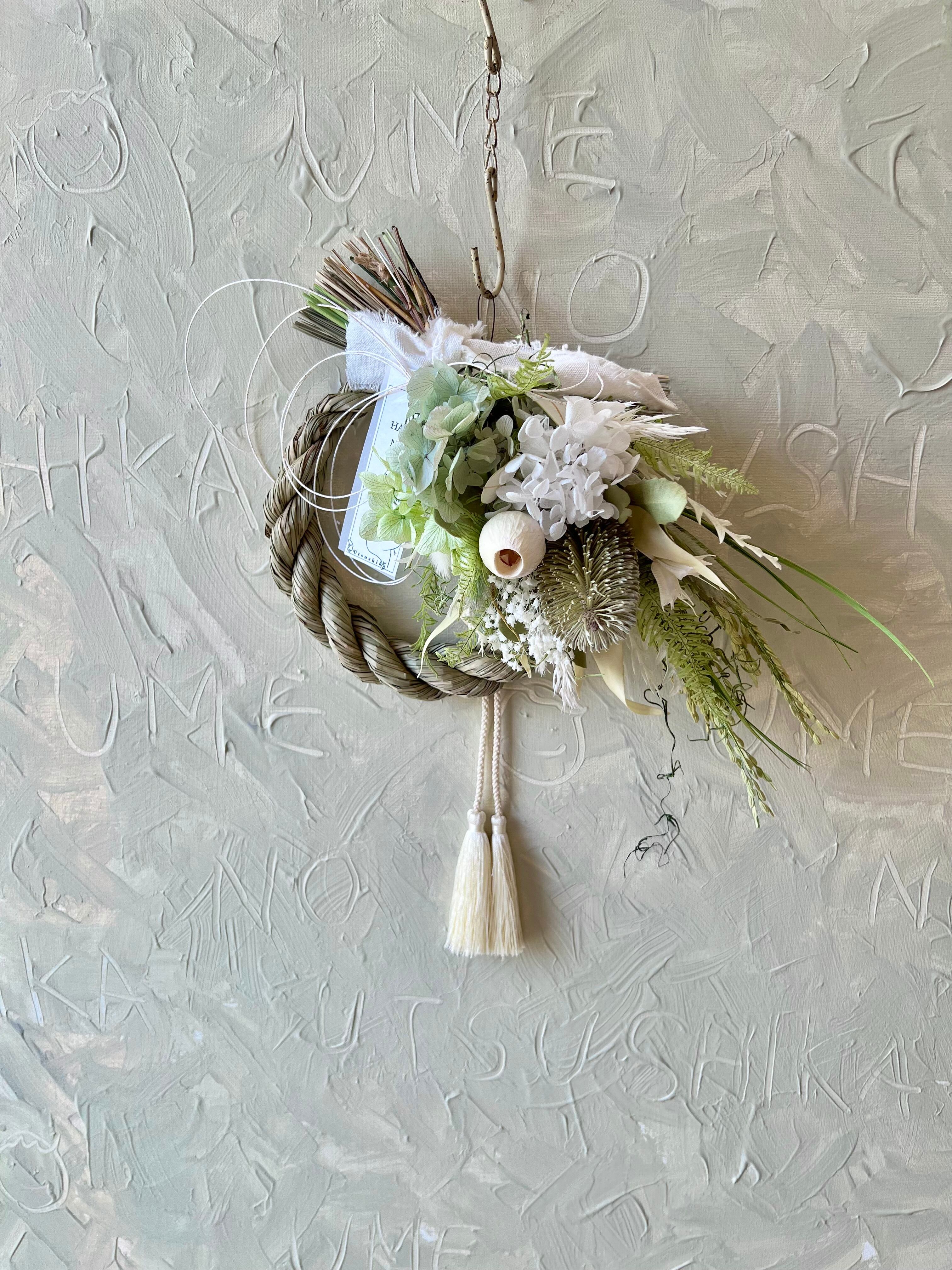 2way紫陽花とバンクシアのしめ縄スワッグ