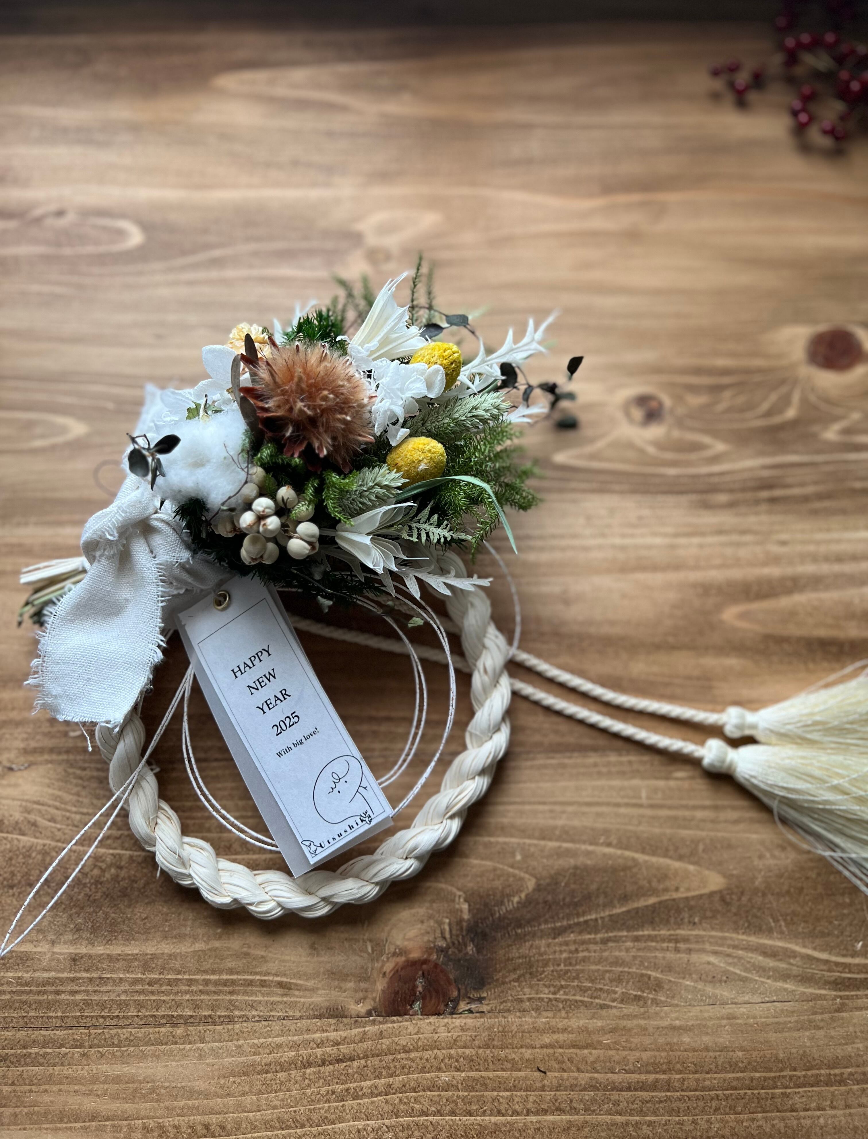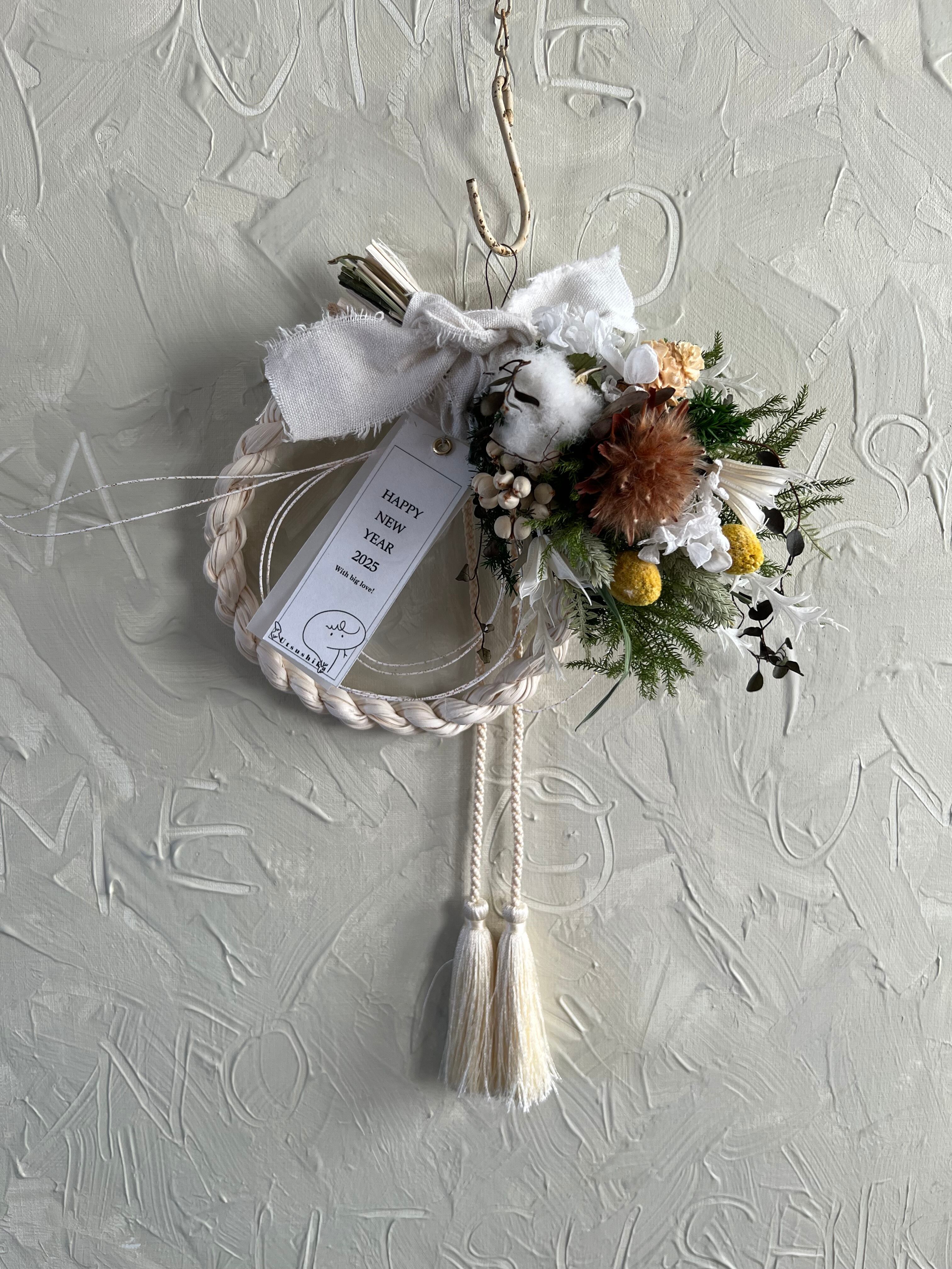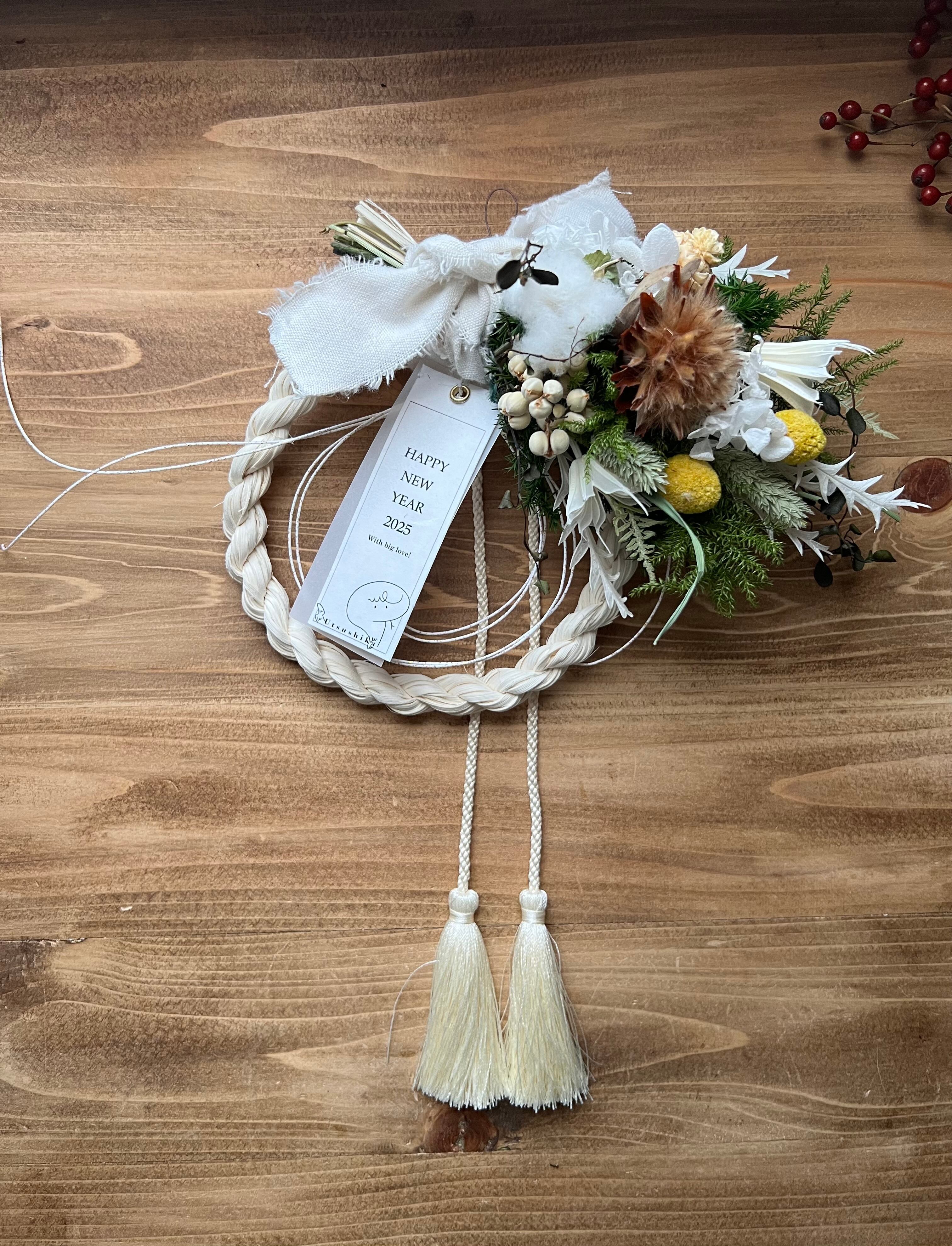 2way綿の実のホワイトラタンしめ縄スワッグ