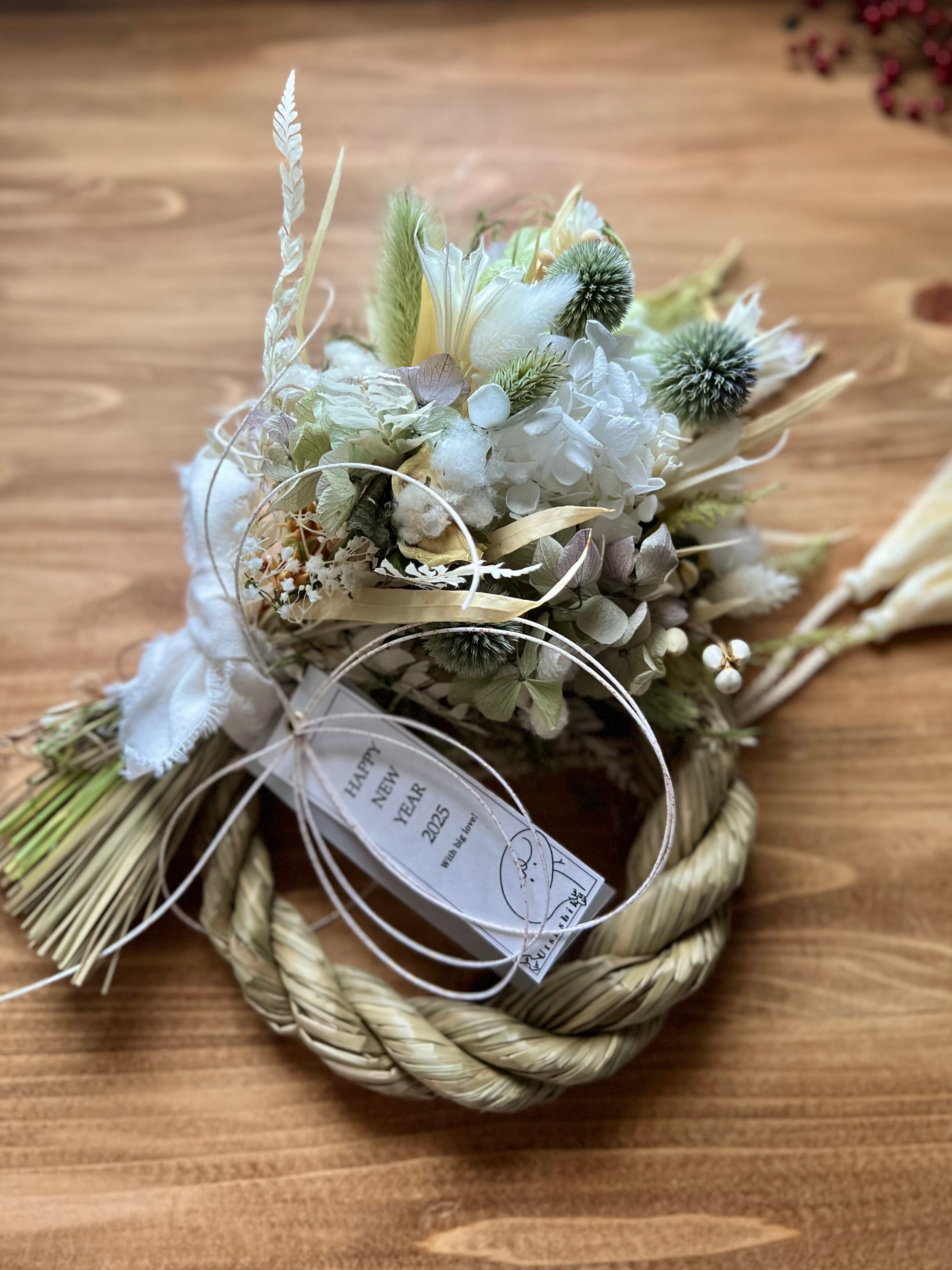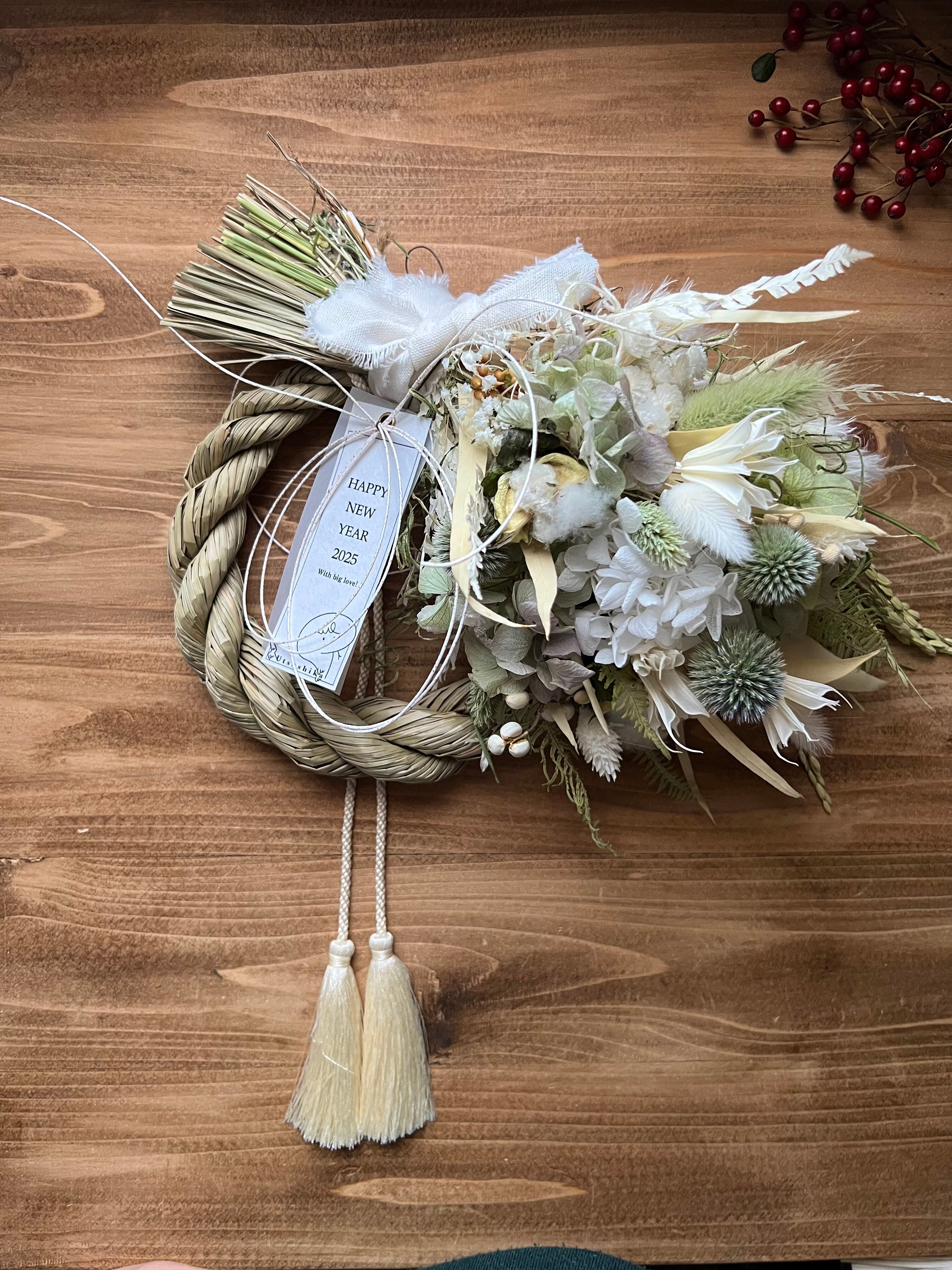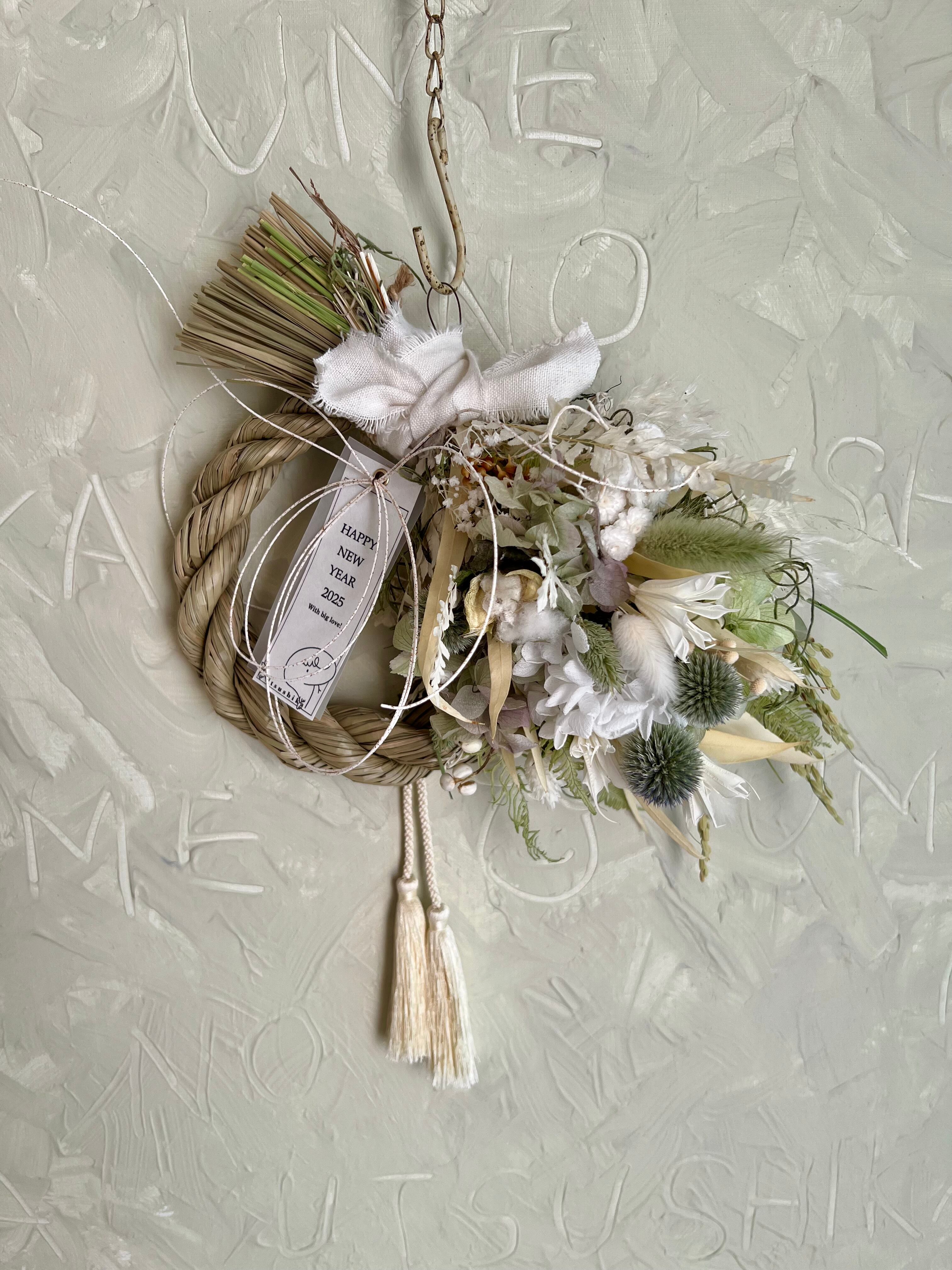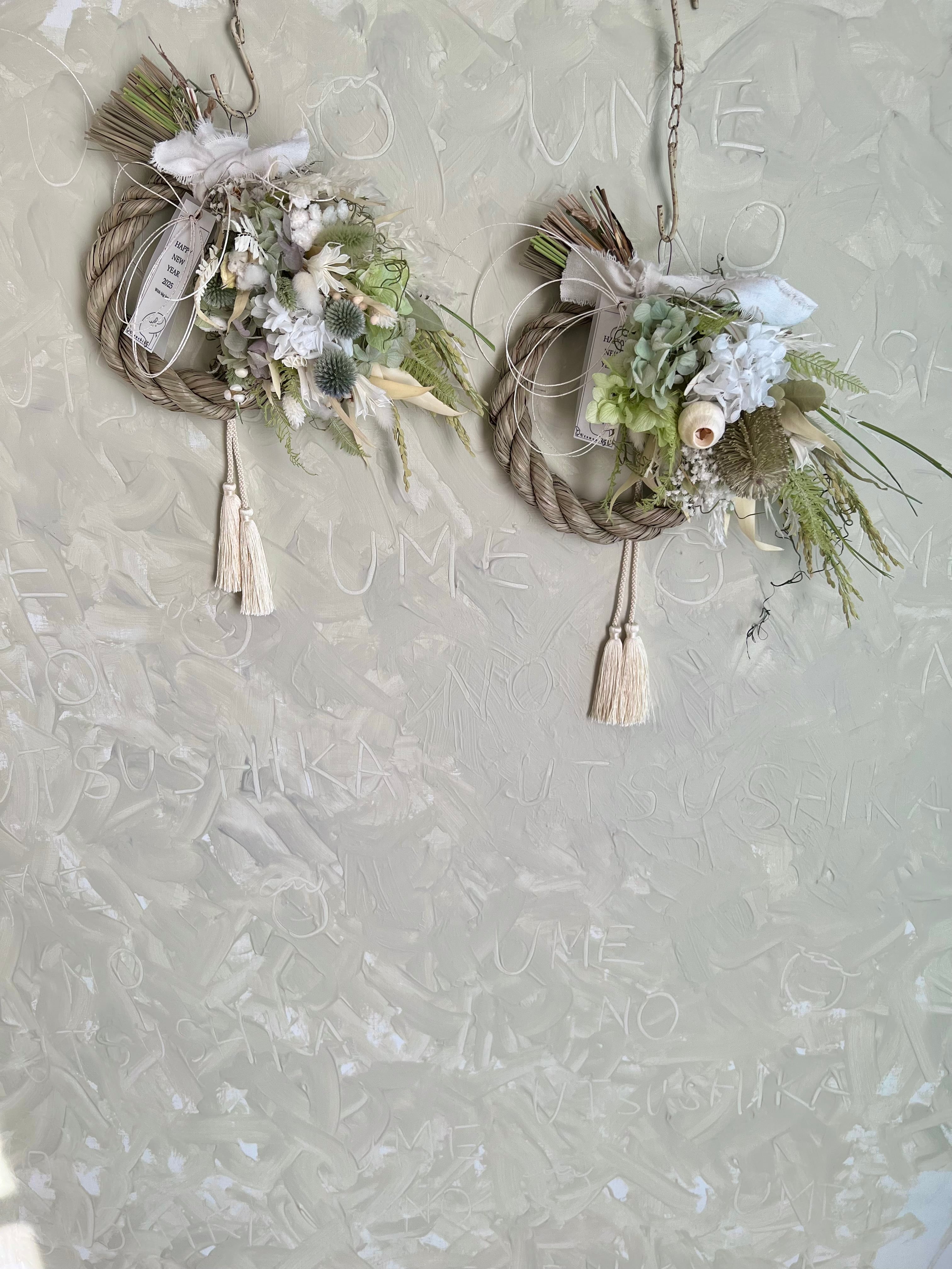 2way瑠璃玉アザミと紫陽花のしめ縄スワッグ