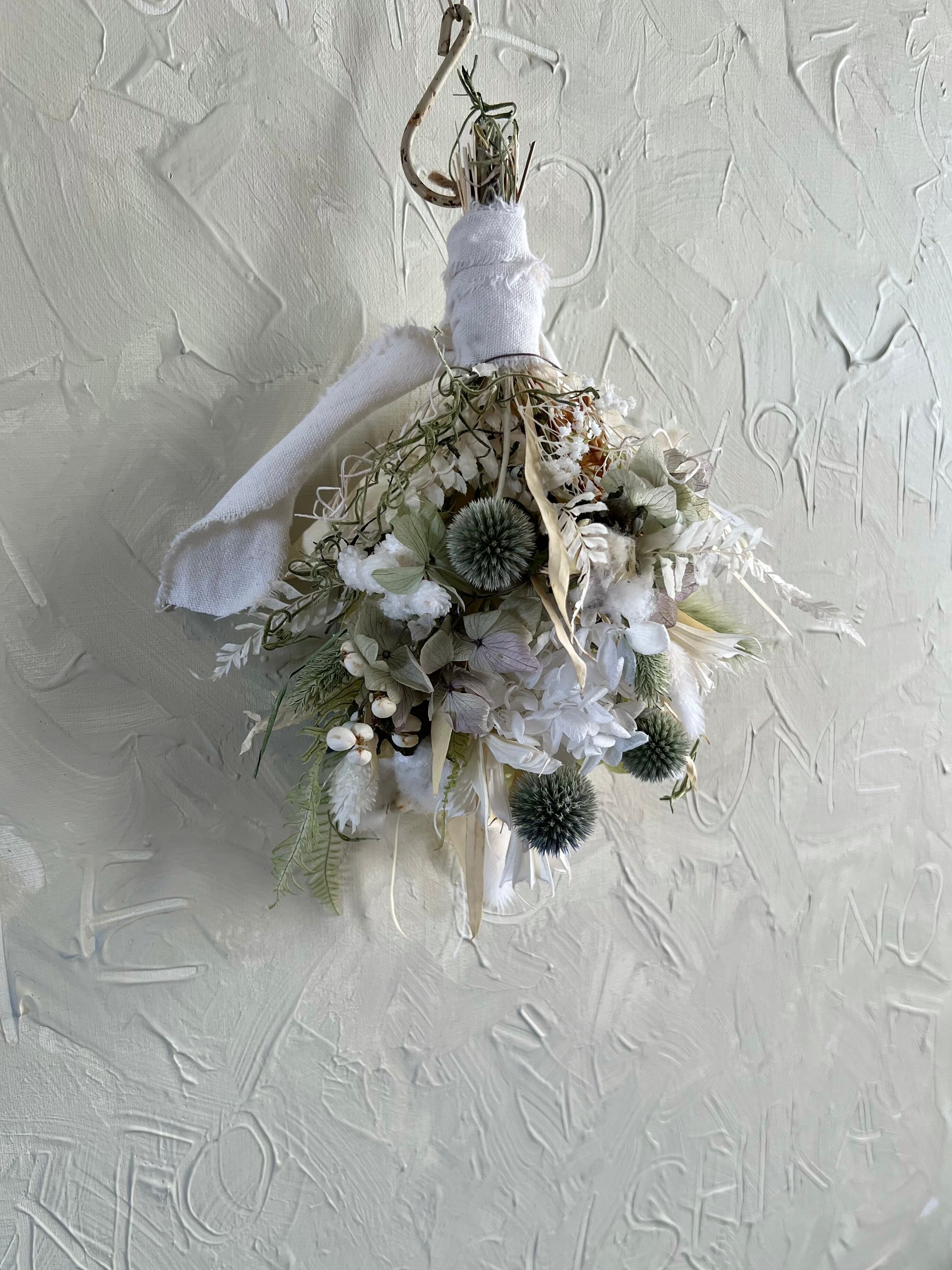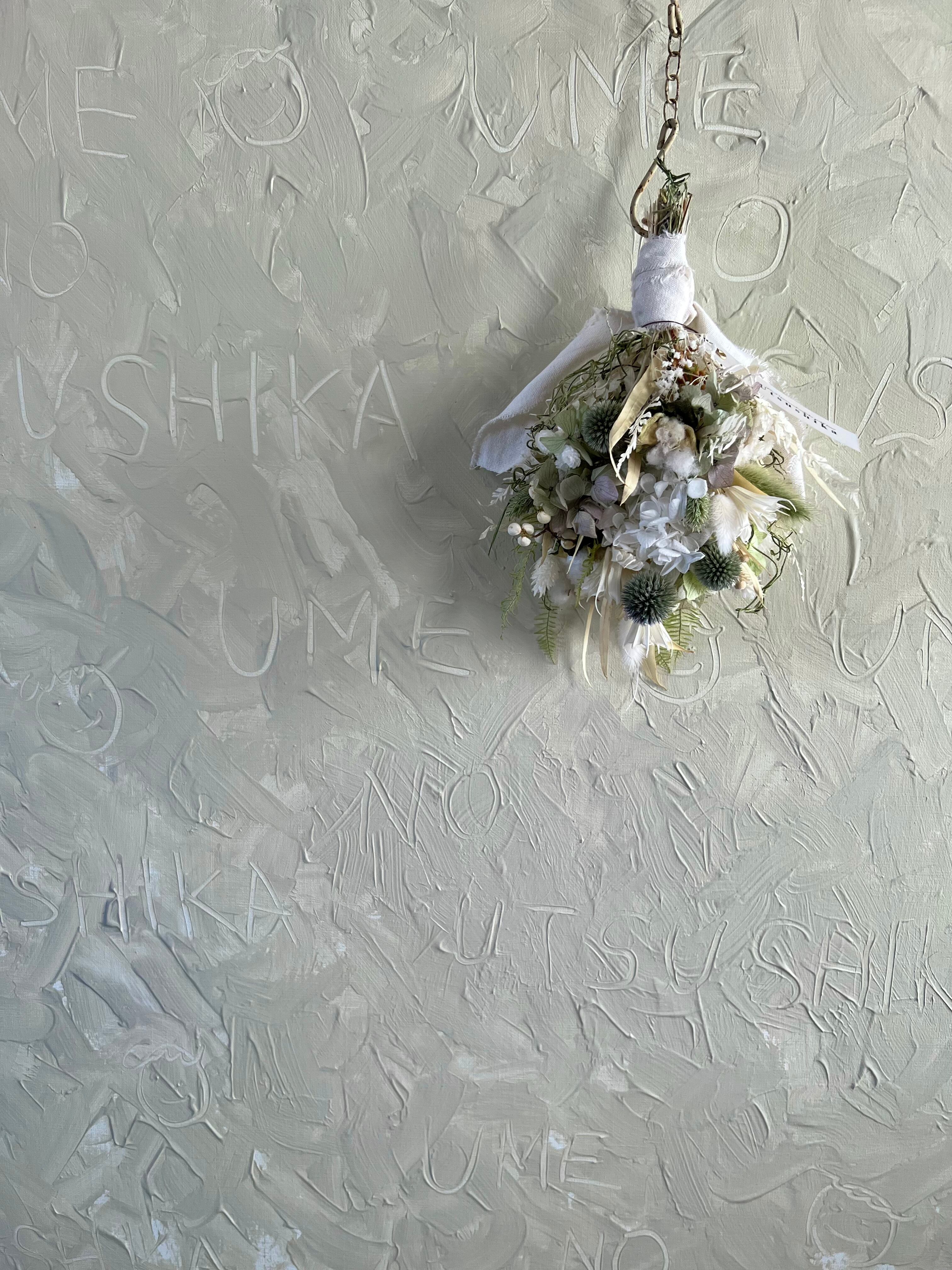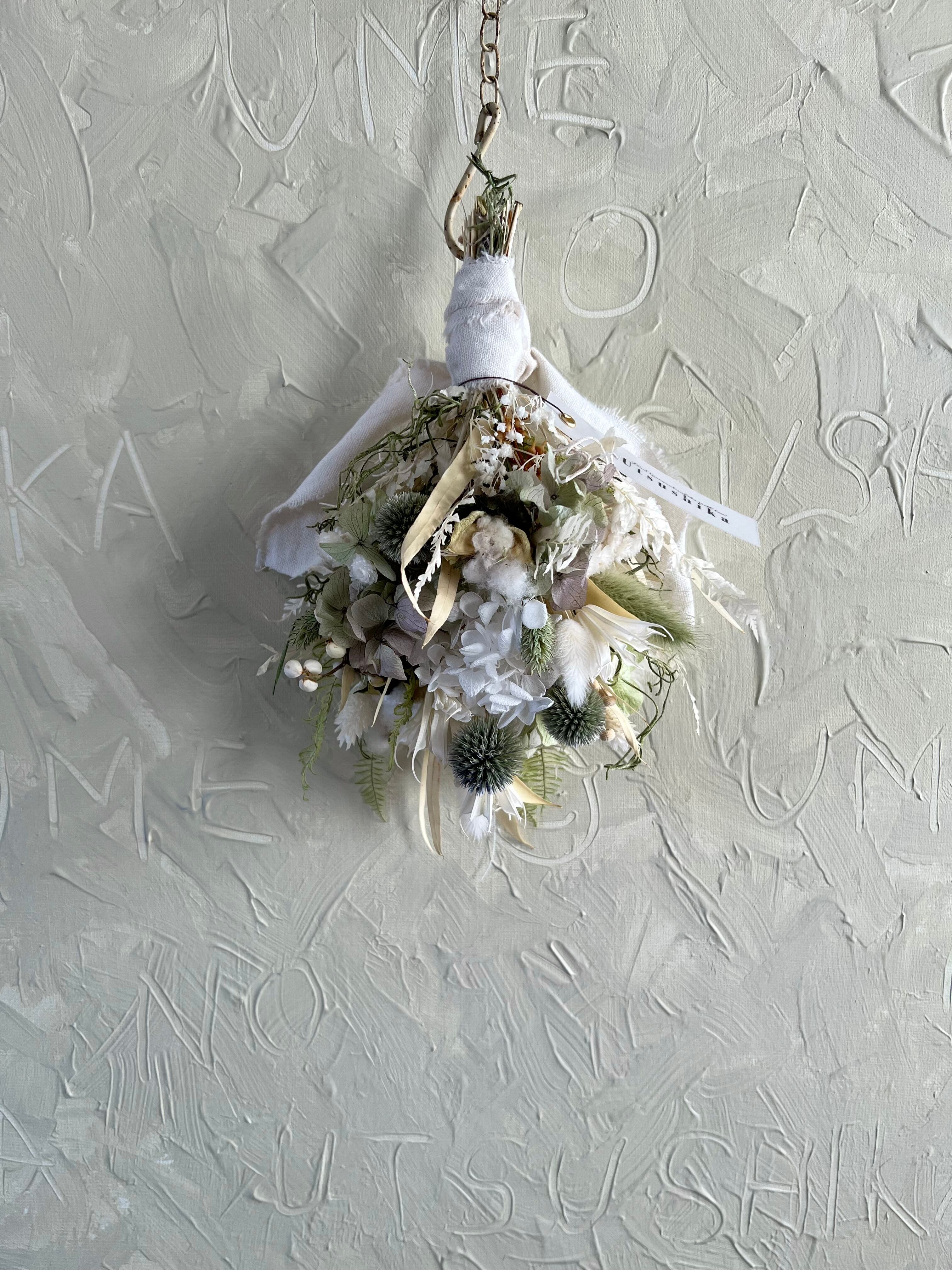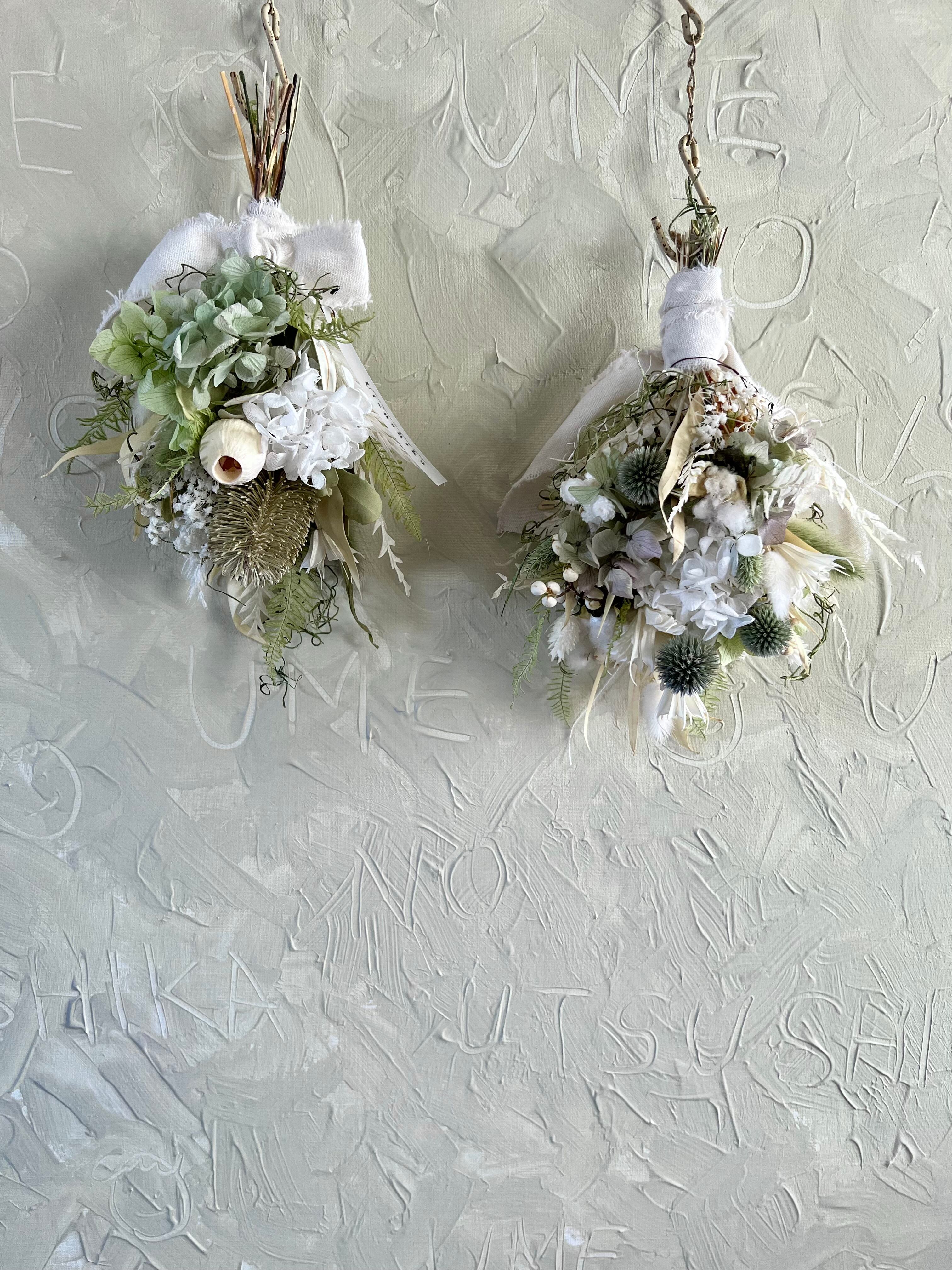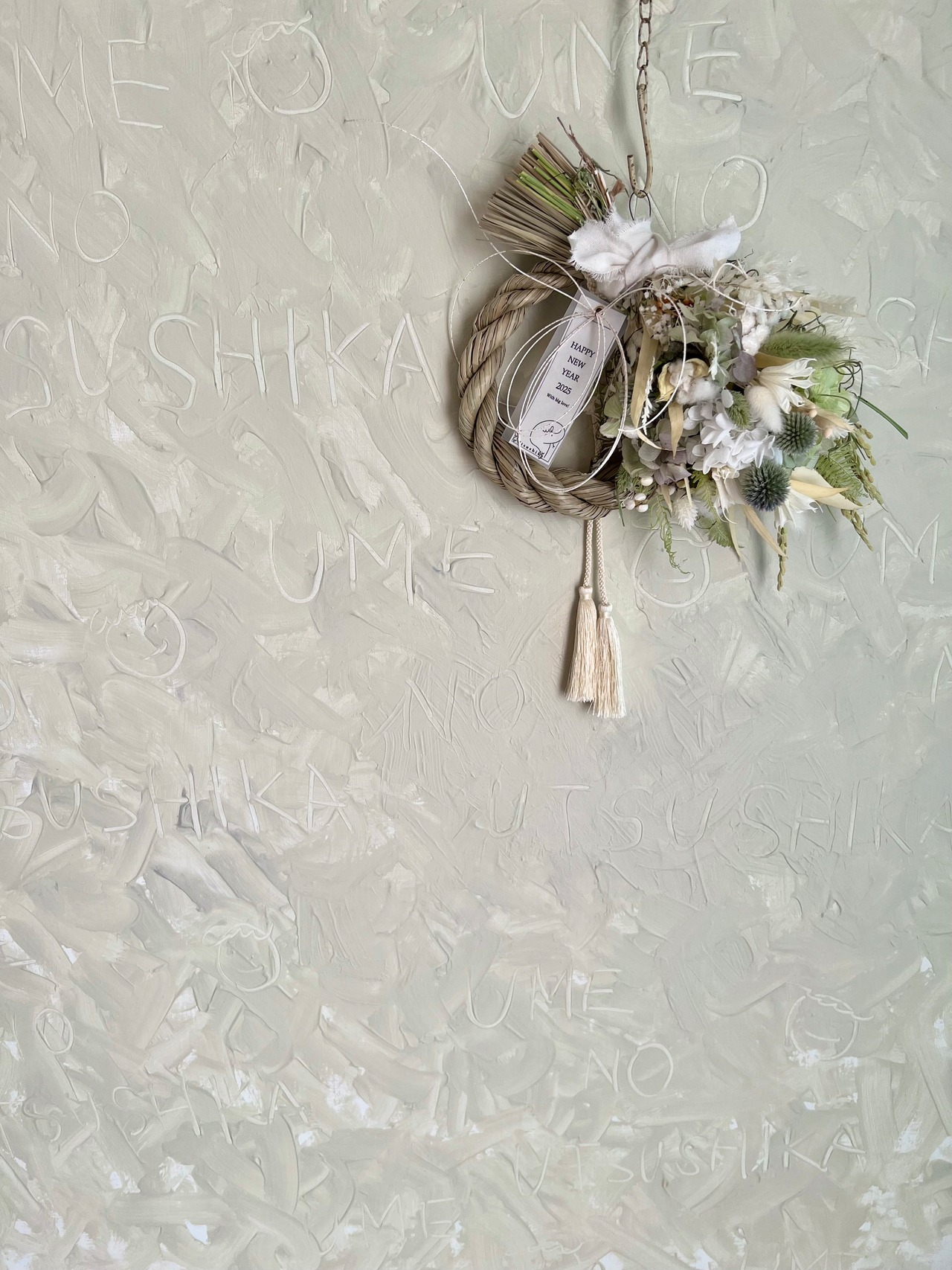 2way瑠璃玉アザミと紫陽花のしめ縄スワッグ