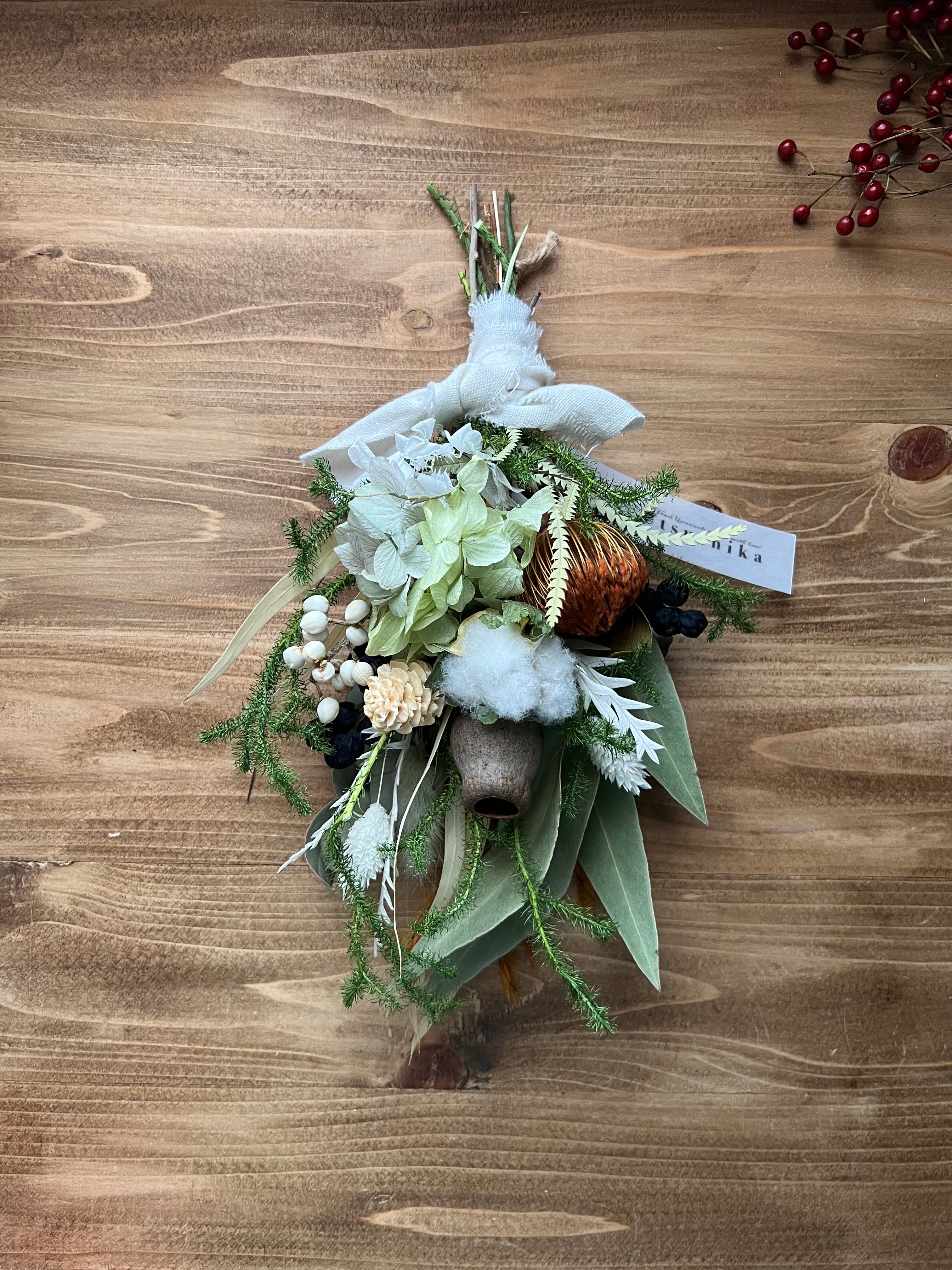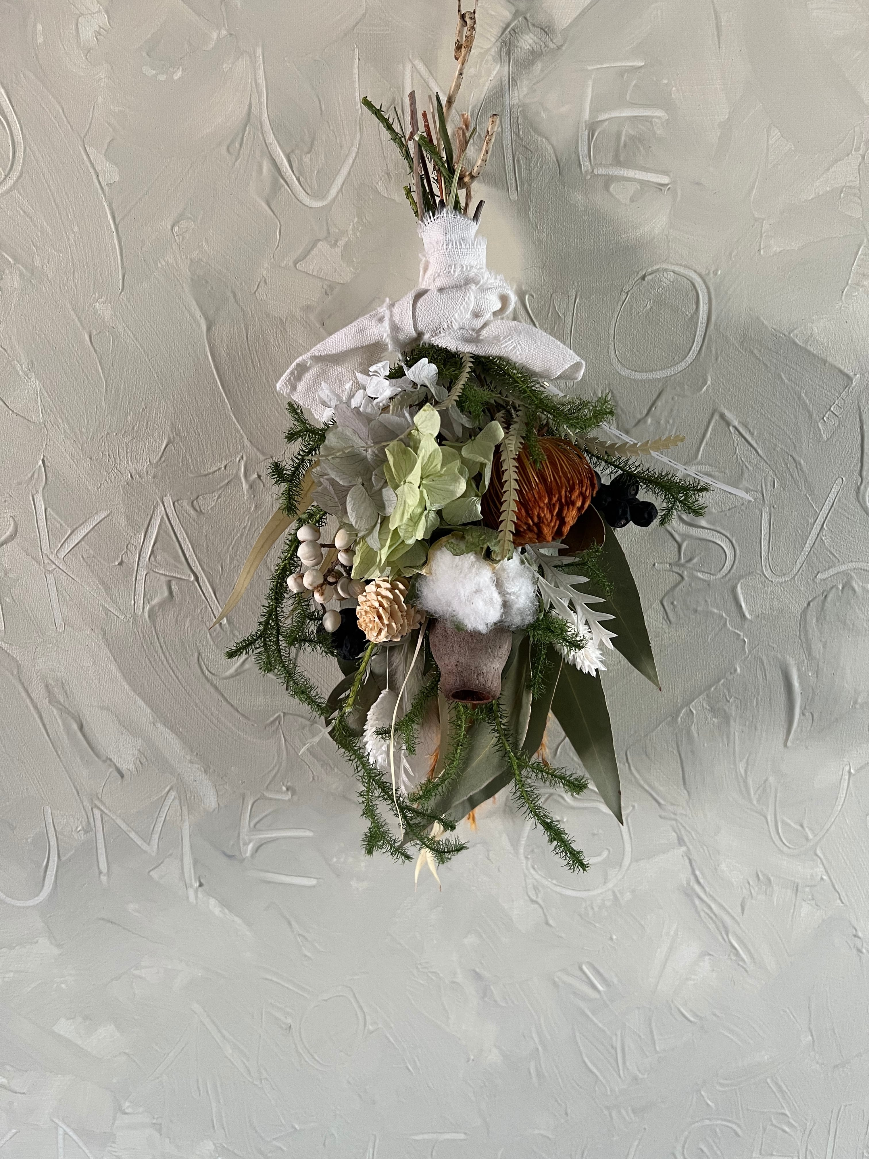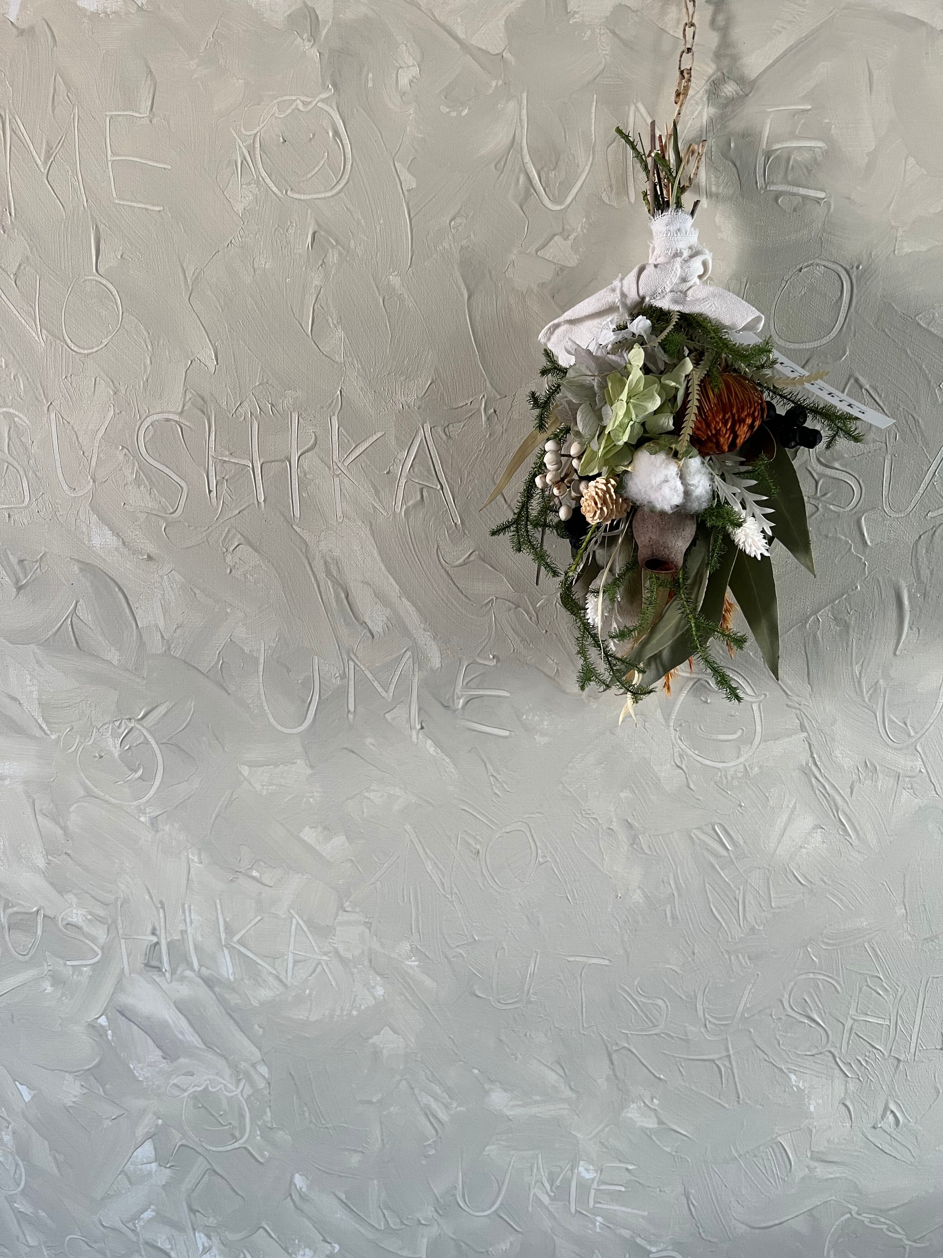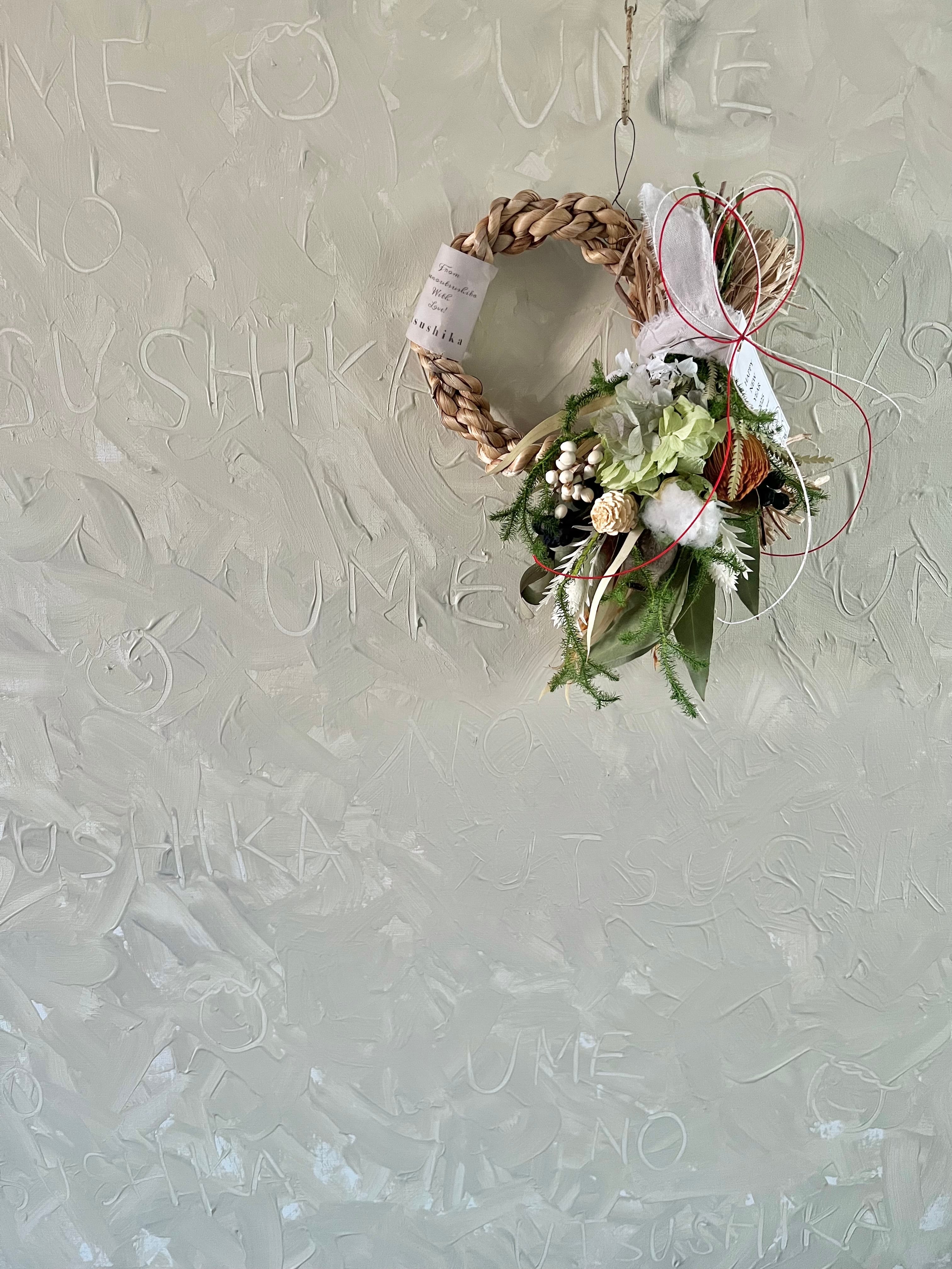 ②紫陽花と綿の実のネイティブな無垢しめ縄スワッグ