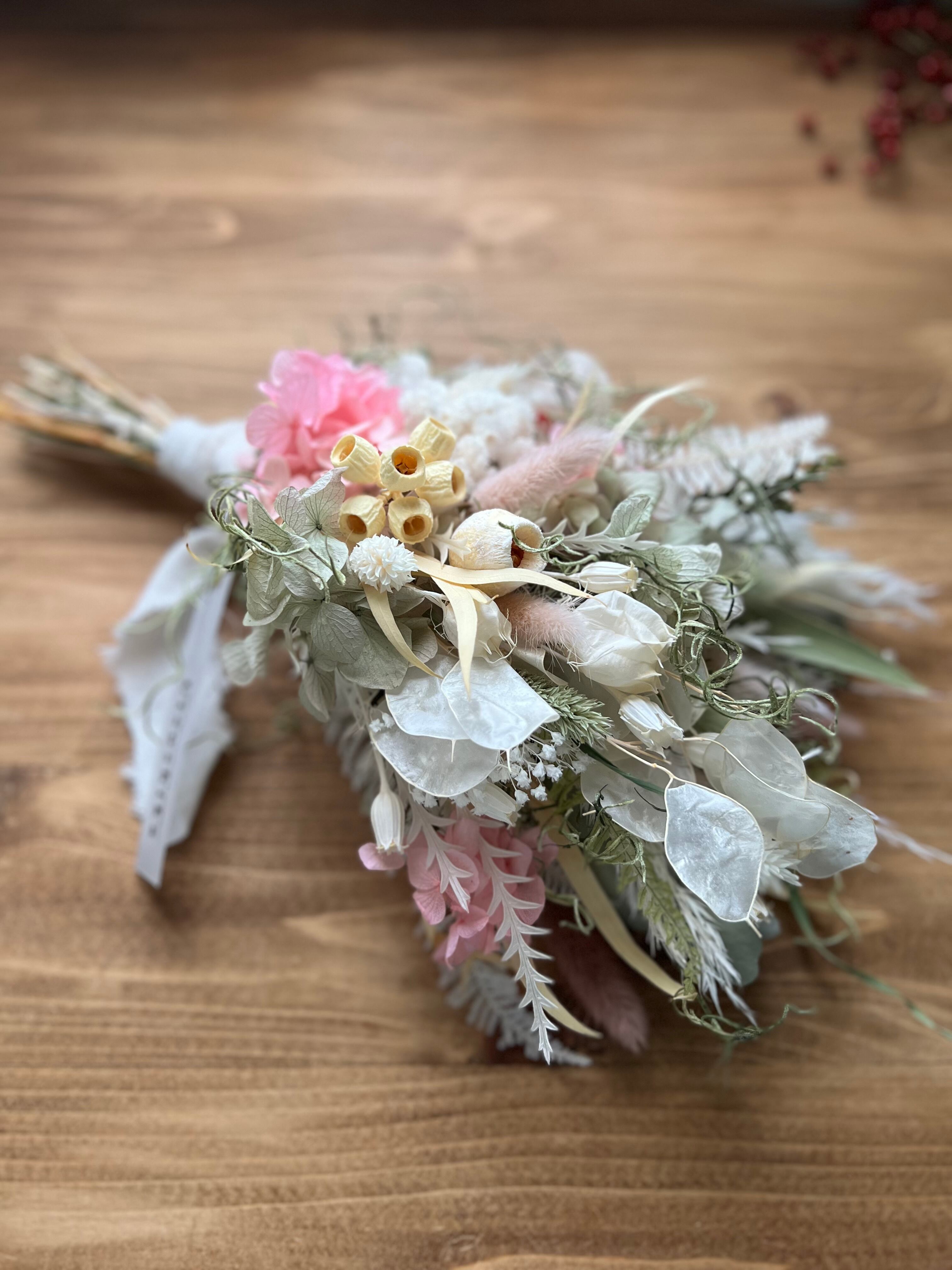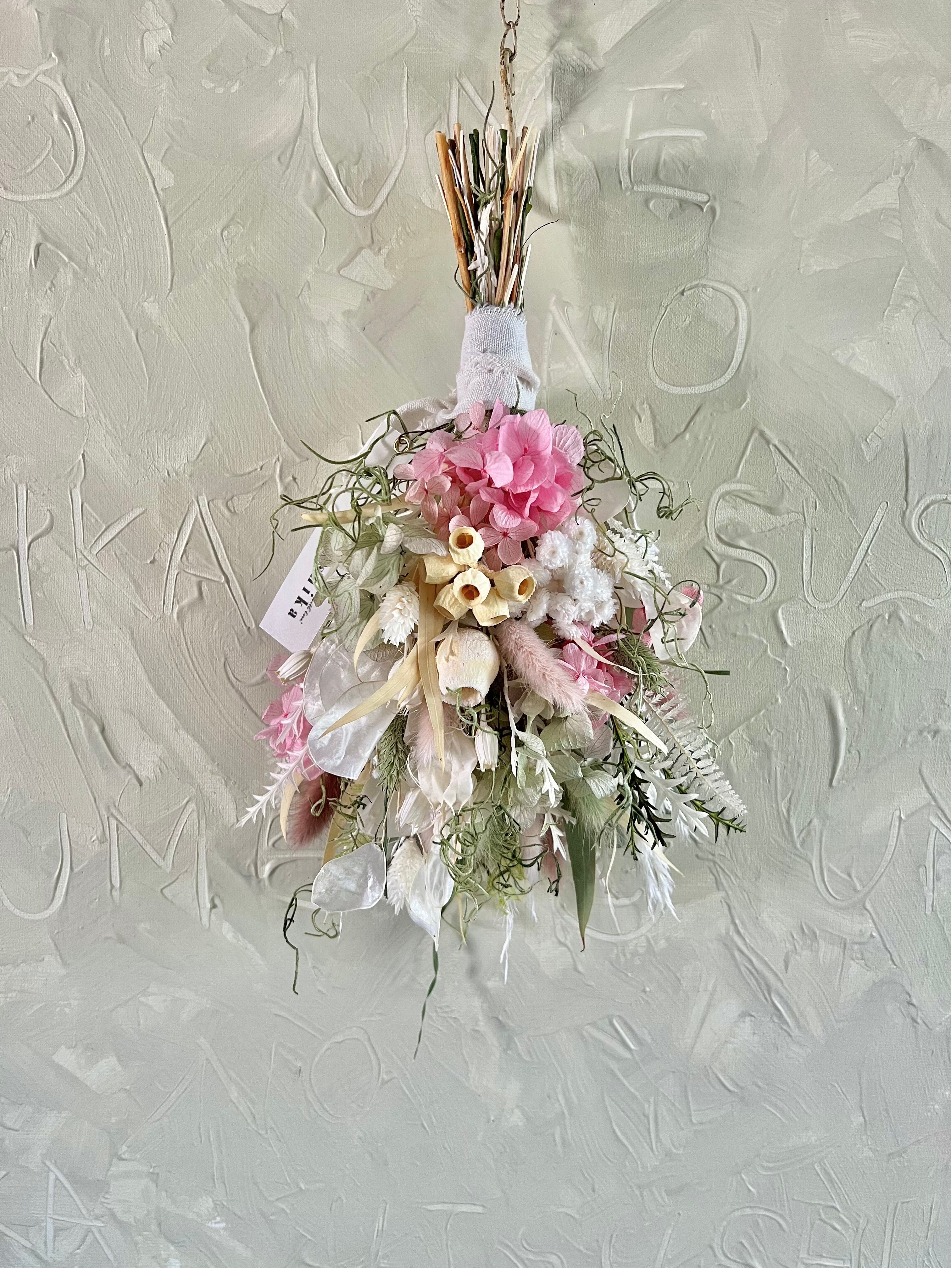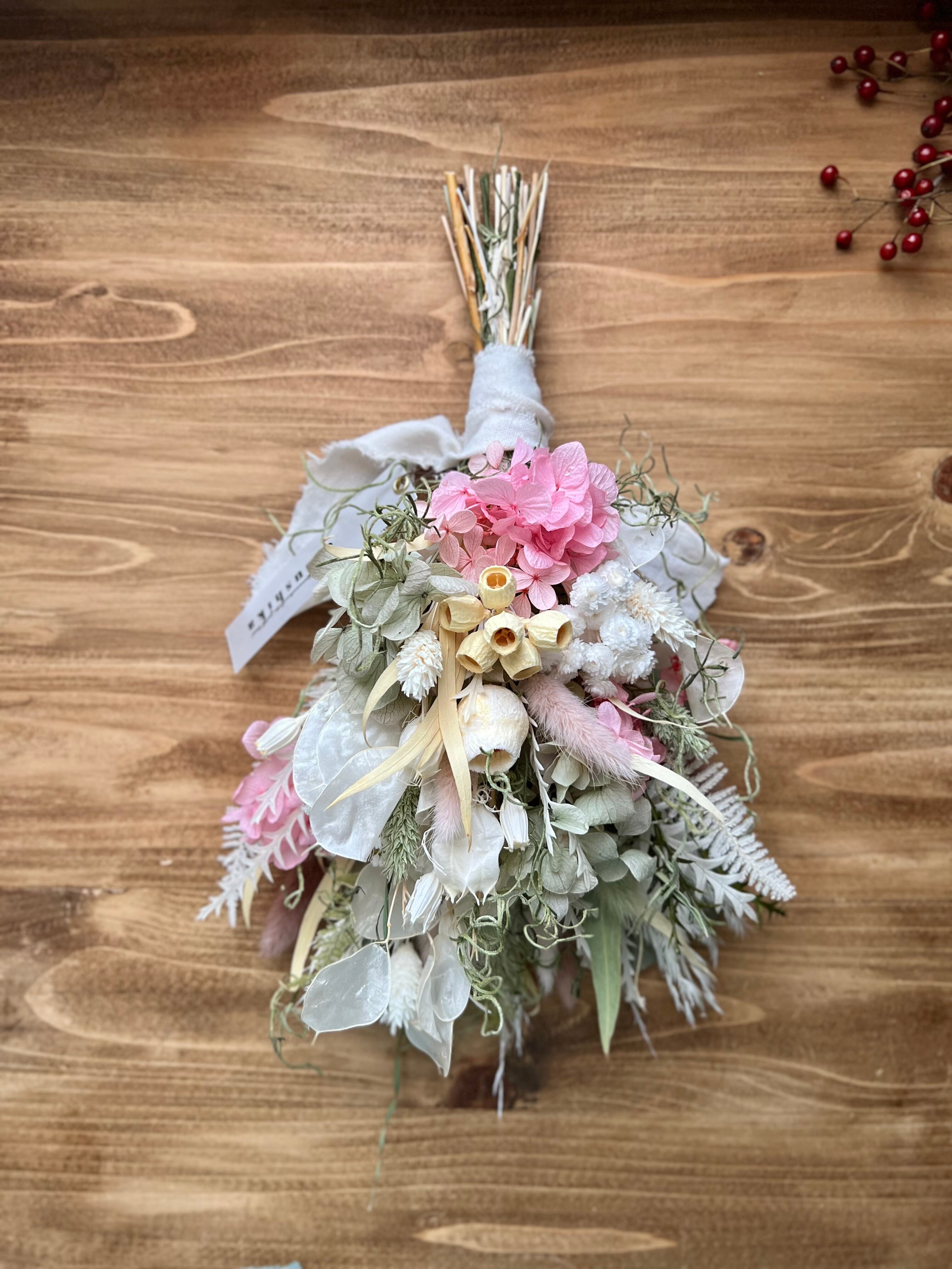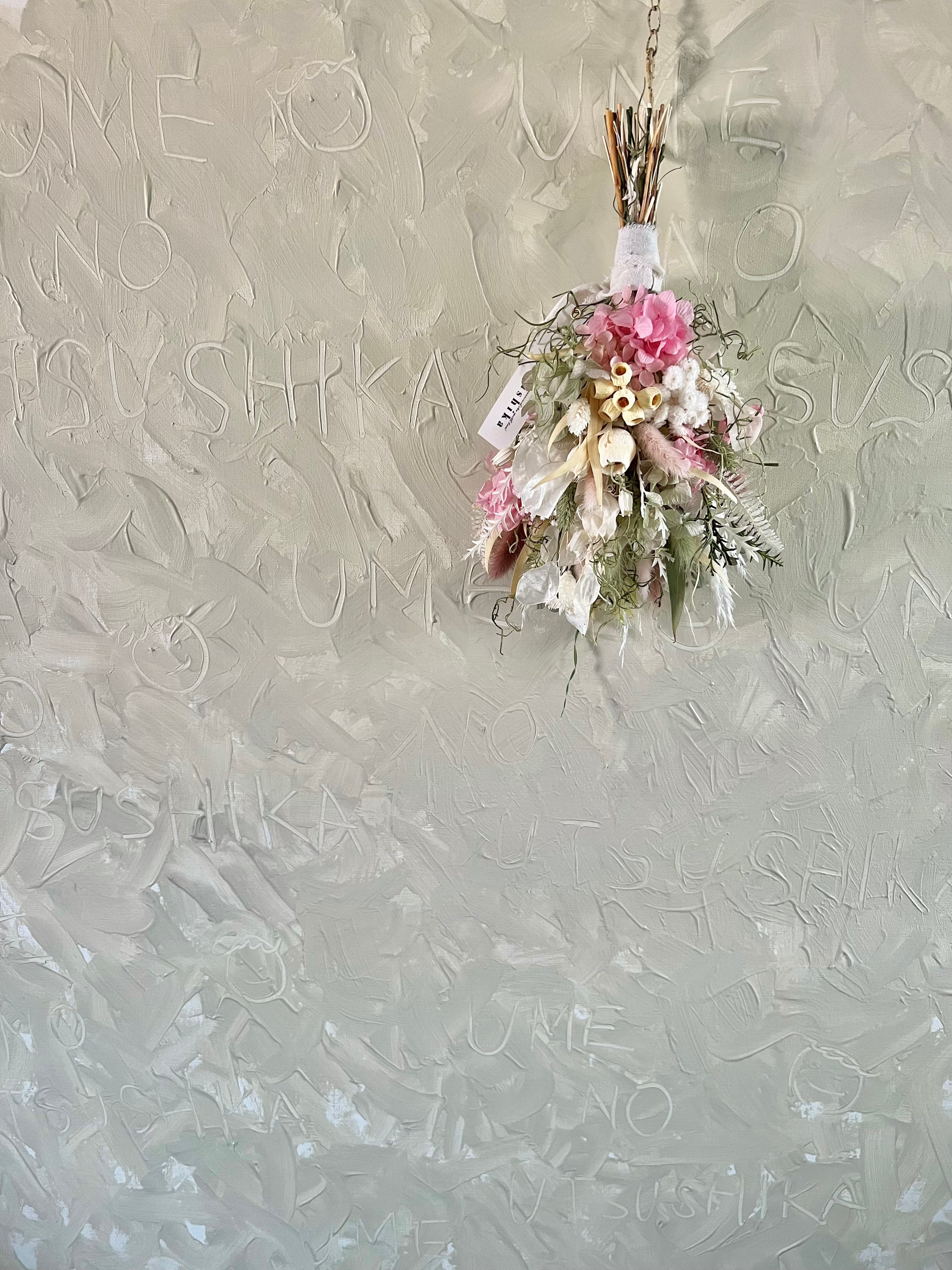 ピンク紫陽花とルナリアのしめ縄スワッグ